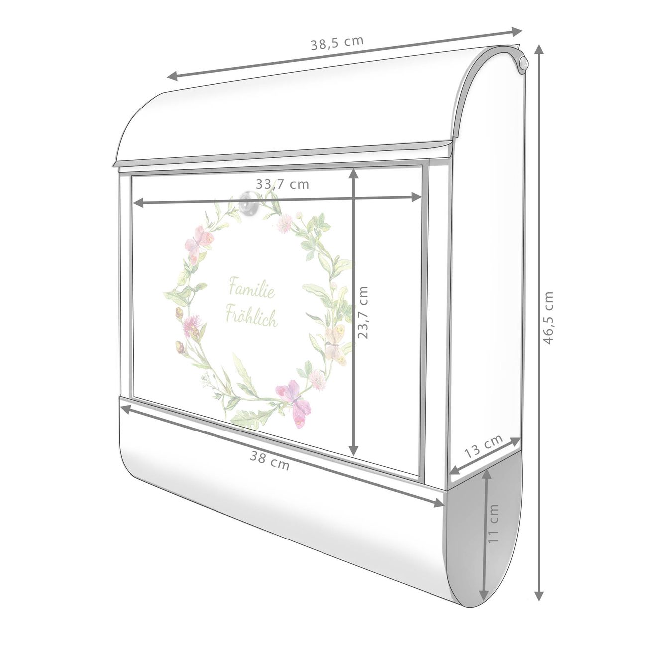 Großer Stahl Briefkasten Motiv Aquarell Blumenring