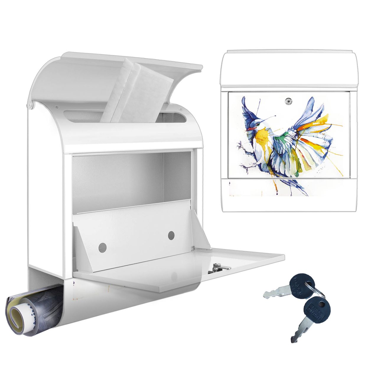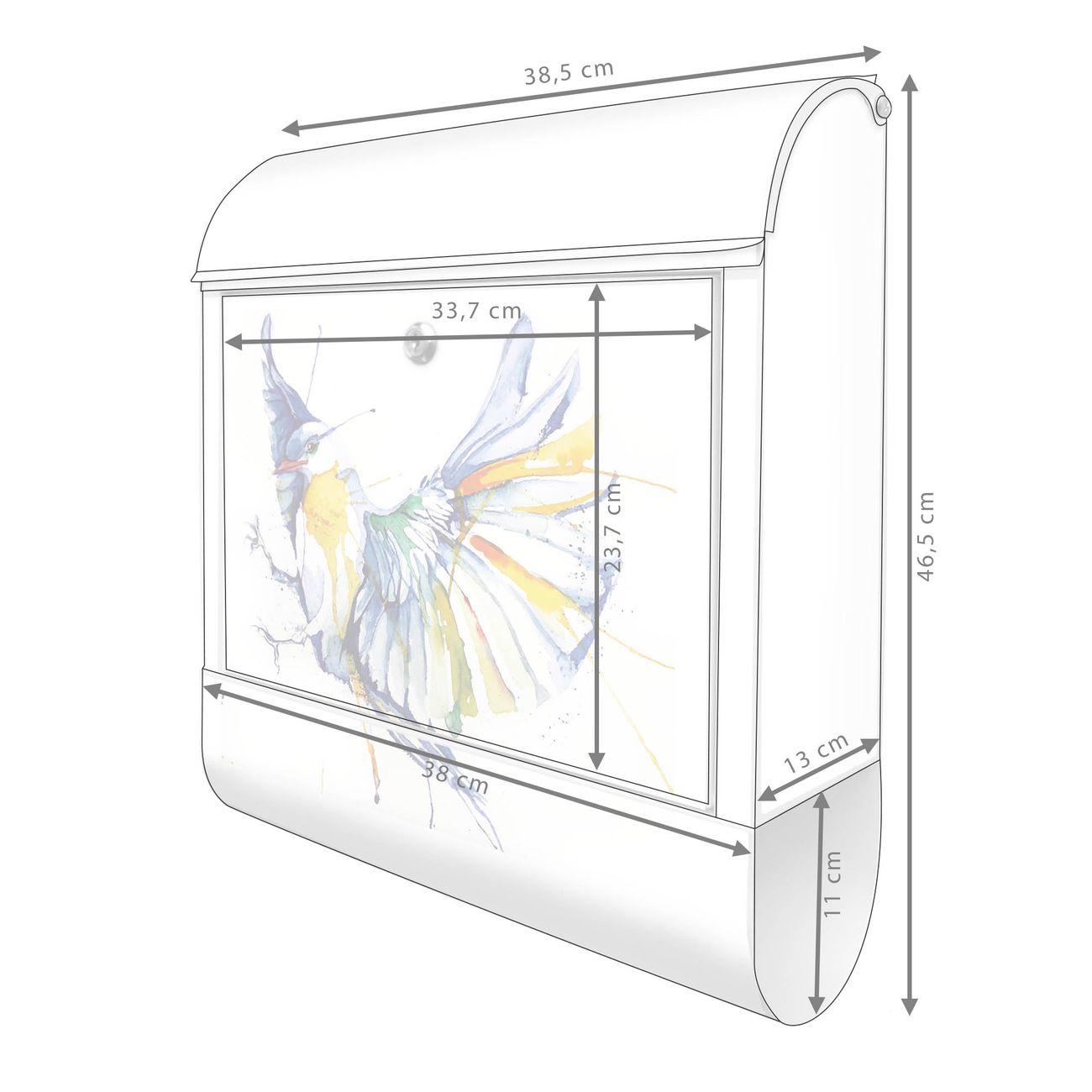 Großer Stahl Briefkasten Motiv Aquarell Vogel
