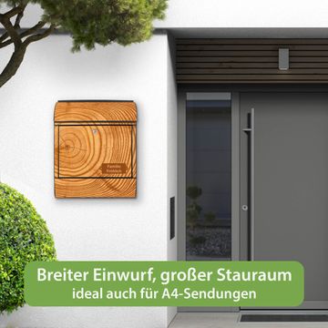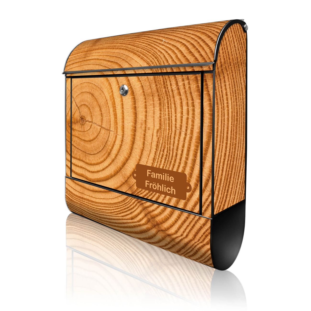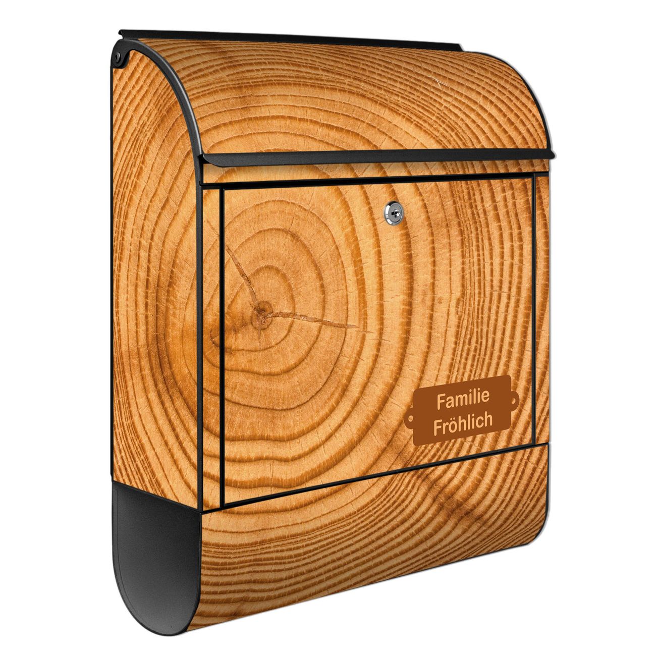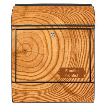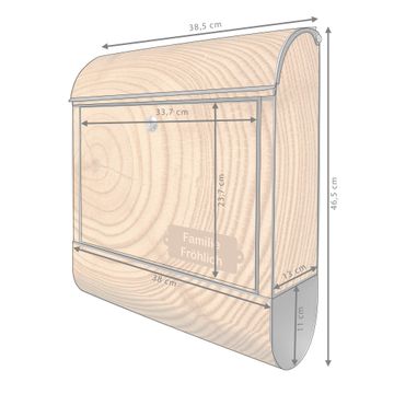 DESIGN: Der Postkasten mit Motiv Motiv Baumstamm hat ein sehr ansprechendes und ausgefallenes Design, damit entlocken Sie Ihren Nachbarn und dem Postboten ein Lächeln. Heben Sie Sich von der tristen grauen Masse ab, ohne auf Funktionalität zu verzichten. DETAILS: Der Postkasten besteht aus pulverbeschichtetem Stahl. Er ist 38x46x12,5cm groß. Das Motiv besteht aus einer wetter- und UV-resistenten Folie, die mit einem Schutzlaminat überzogen ist, sodass der Briefkasten zusätzlich vor Kratzern geschützt ist. Der Briefkasten wird mit Montagematerial, zusätzlich zwei Schlüssel sowie einer Bohrschablone geliefert. NUTZEN: Sie können diesen Briefkasten sowohl als Wandbriefkasten montieren oder einen passenden Ständer kaufen und als Standbriefkasten einbetonieren. Die Größe bietet genügend Platz für Sendungen aller Art, der Einwurf fasst auch größere A4 Sendungen. BANJADO: Ihr Briefkasten wird in Sachsen in einer kleinen Manufaktur von Hand veredelt. Die Motivfolie ist lösungsmittelfrei und schutzlaminiert für einen langen Halt. Wir legen großen Wert auf die Verbindung von Funktionalität und Design. Sie erhalten Handarbeit aus Sachsen.