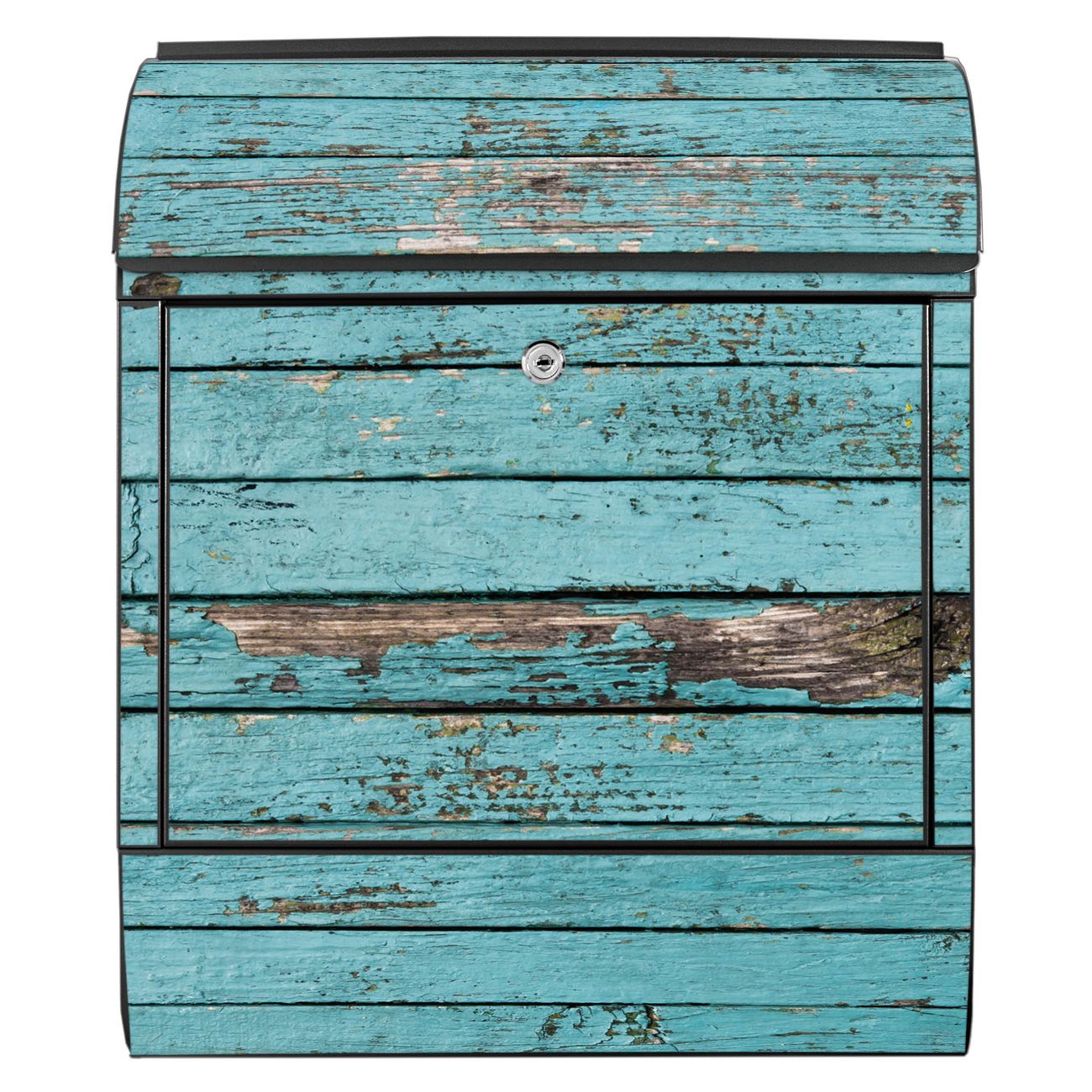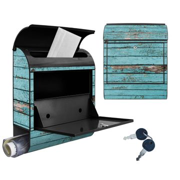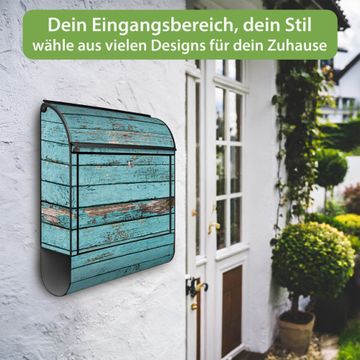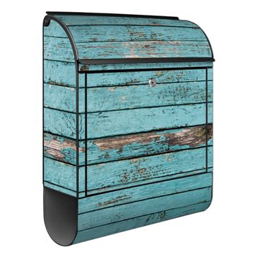 Großer Stahl Briefkasten Motiv Blaue Holzlatten