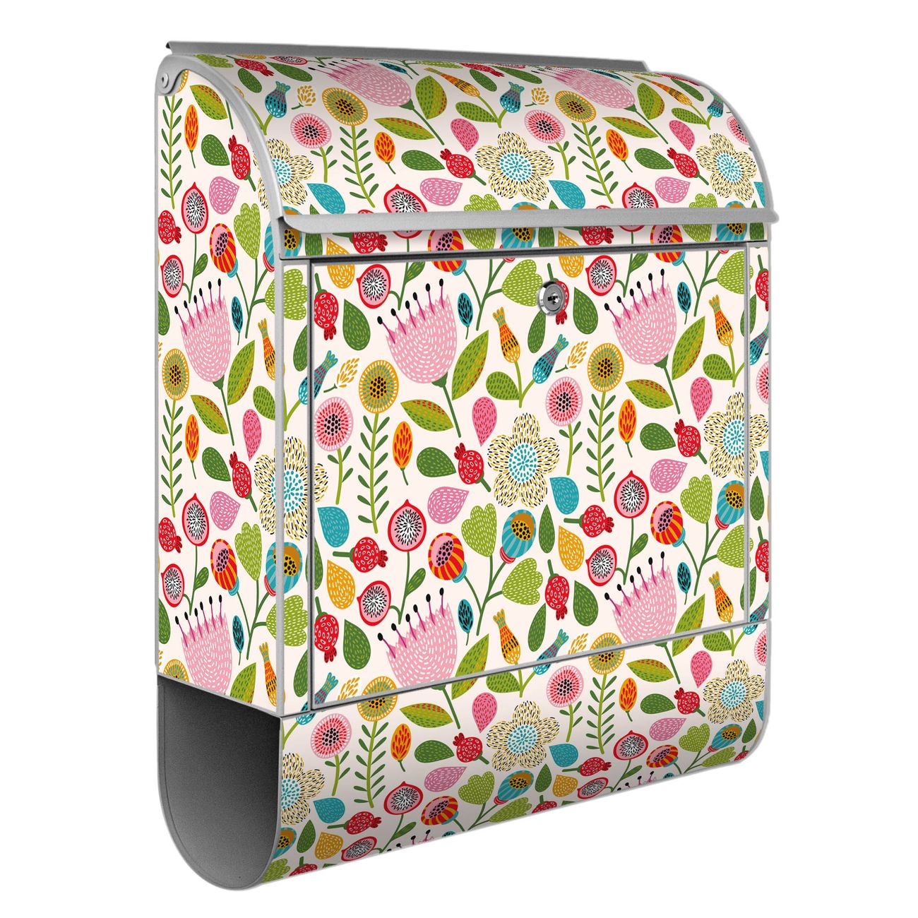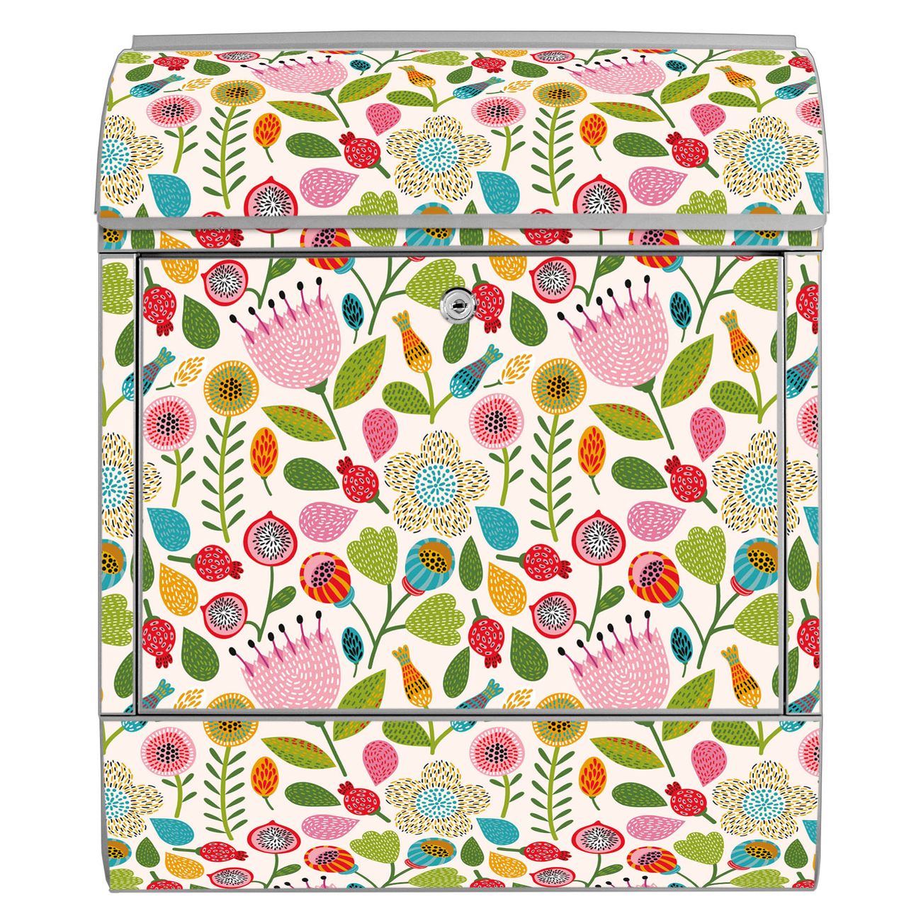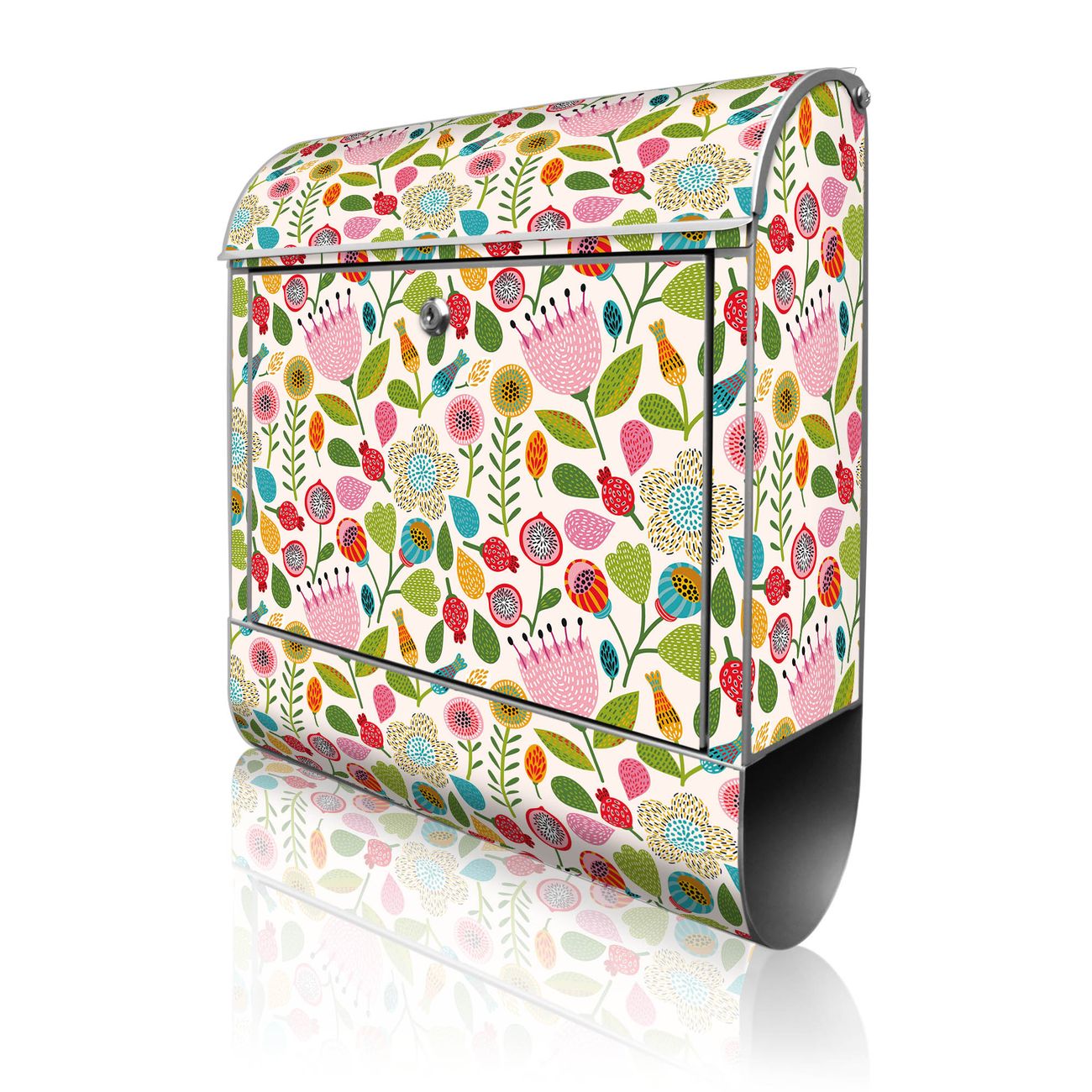 Großer Stahl Briefkasten Motiv Blumen Naiv