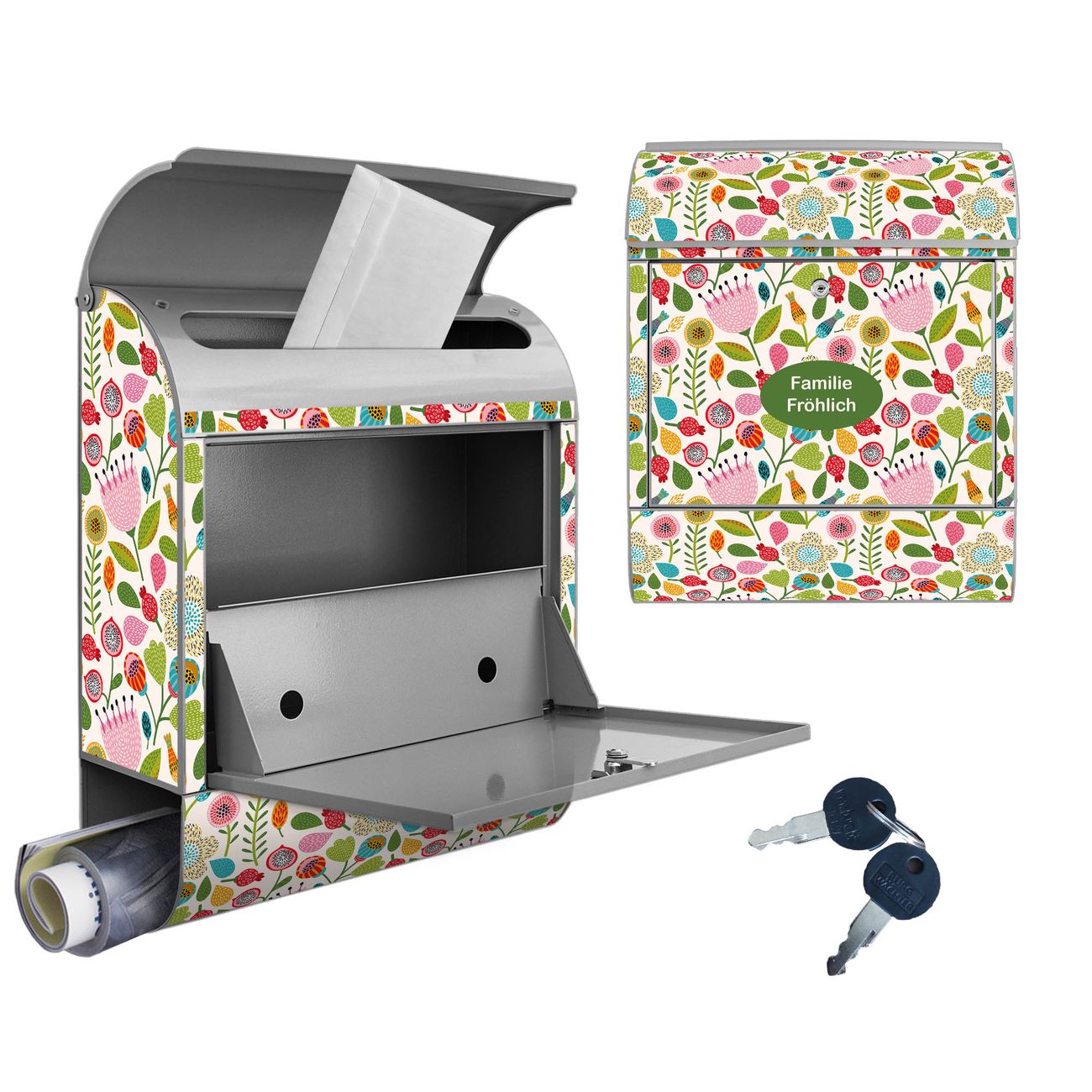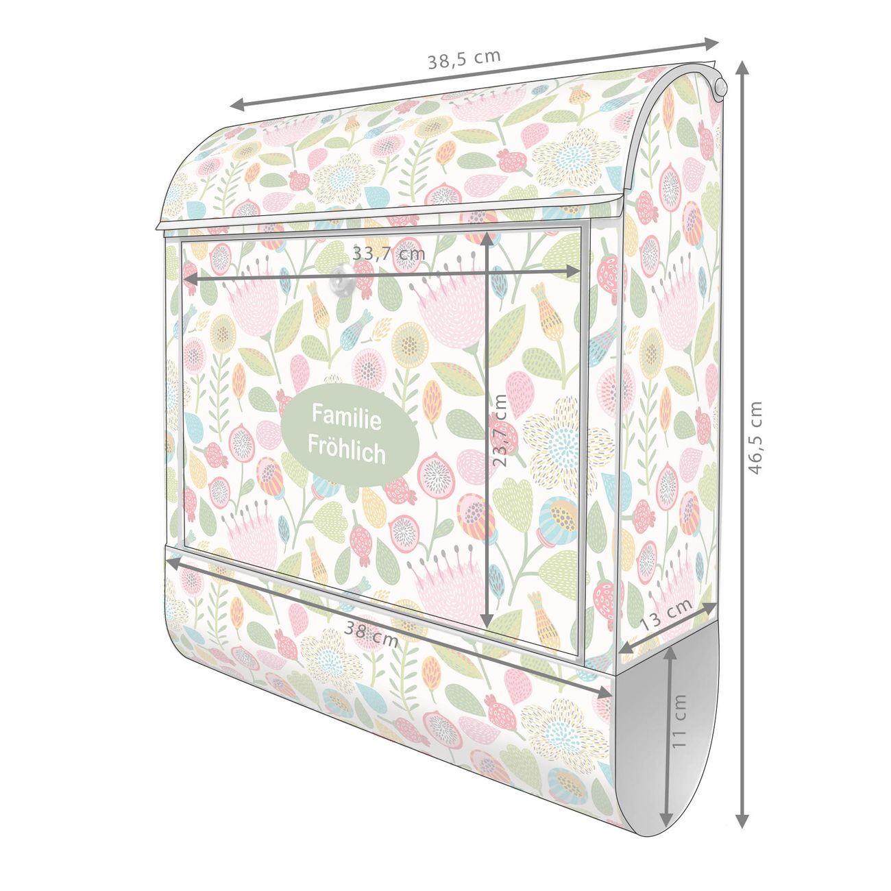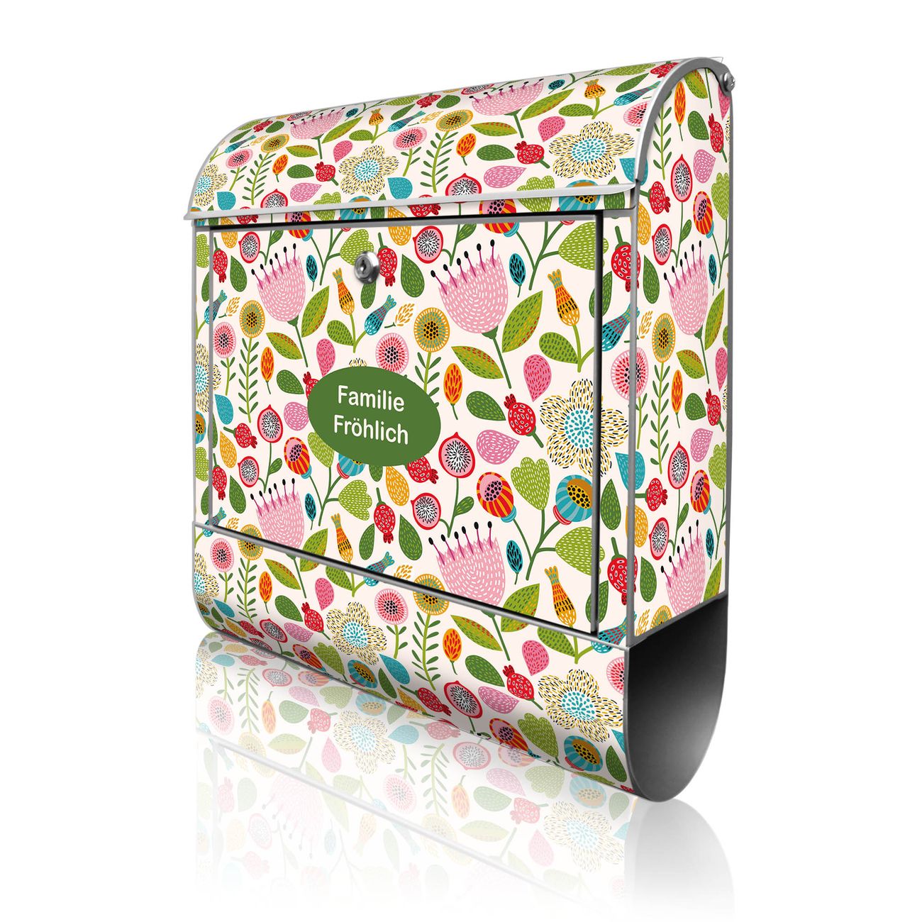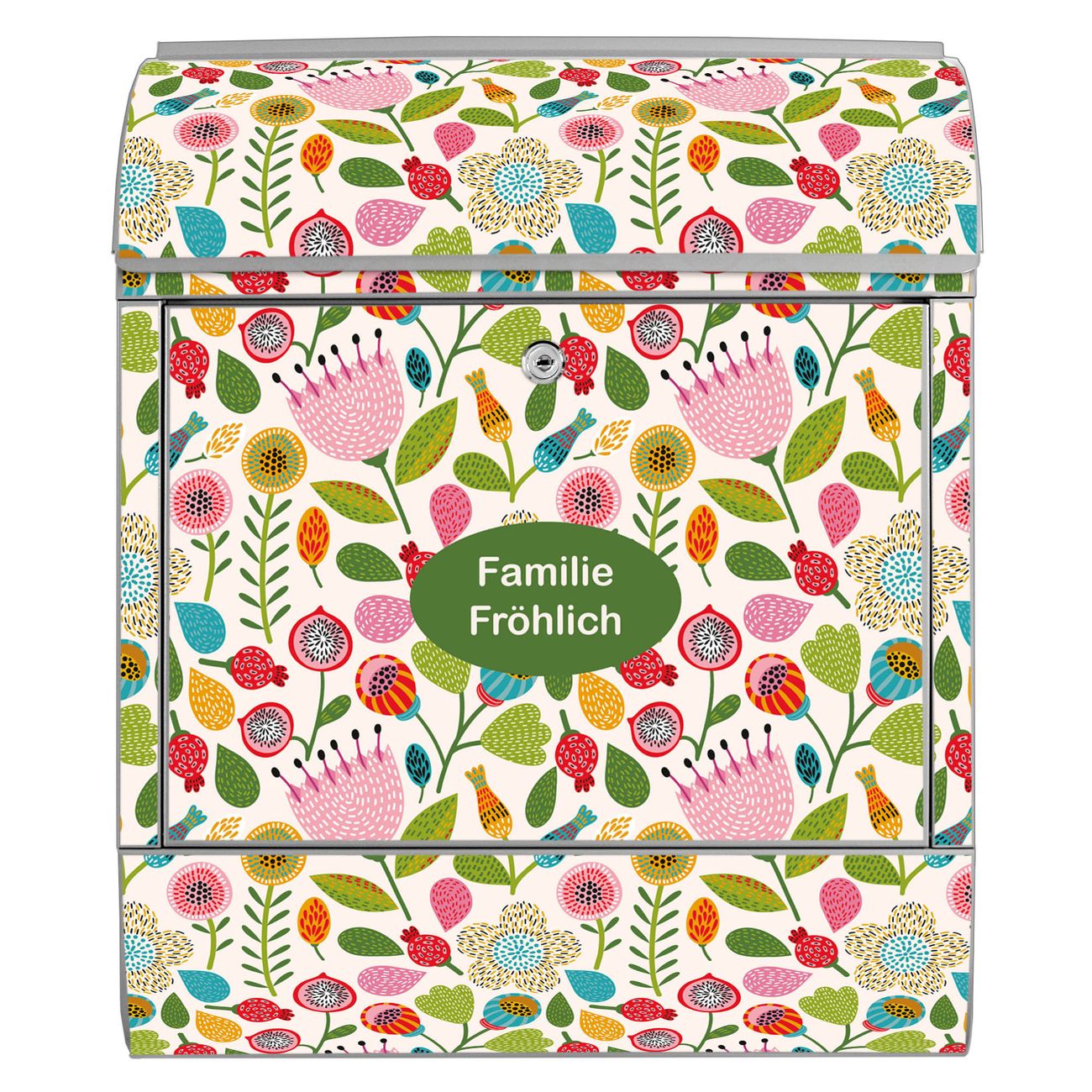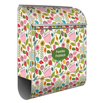 Großer Stahl Briefkasten Motiv Blumen Naiv