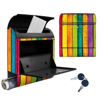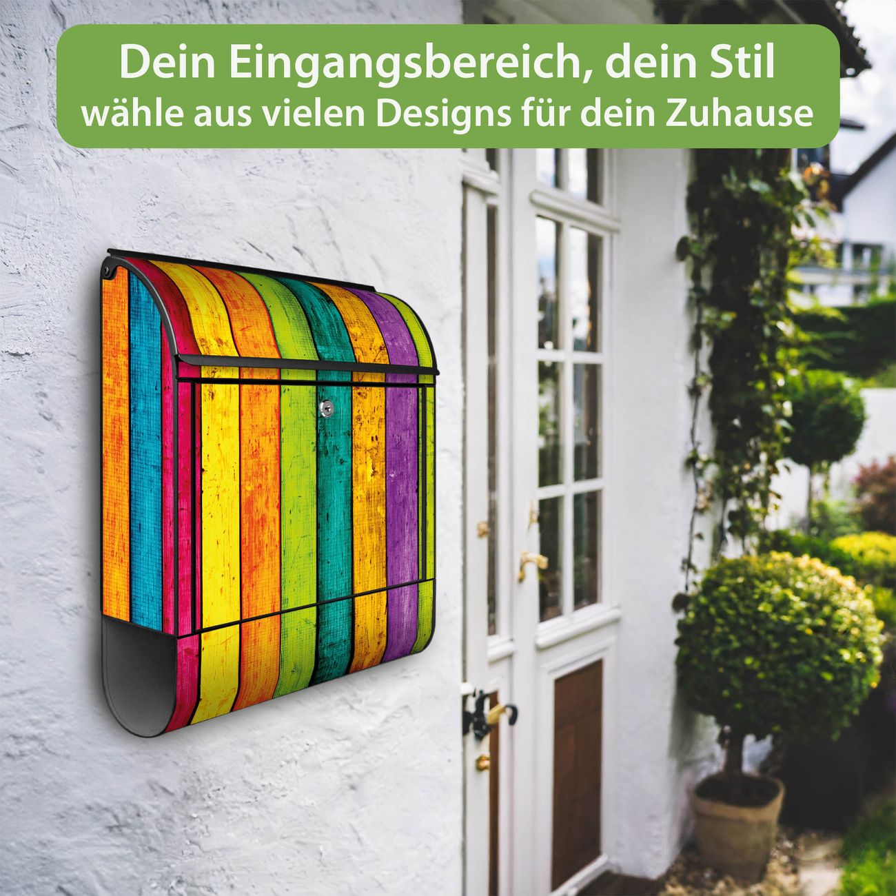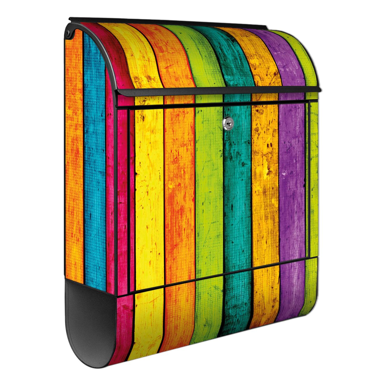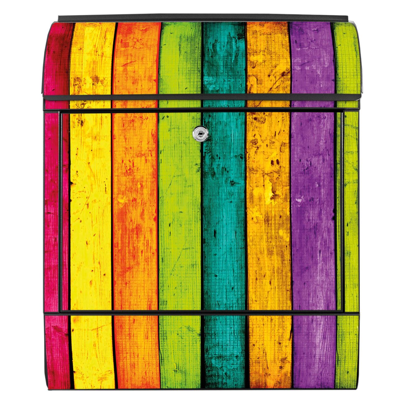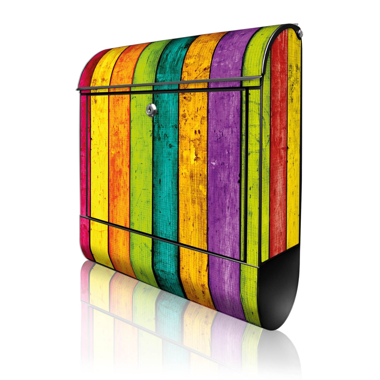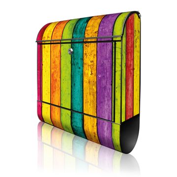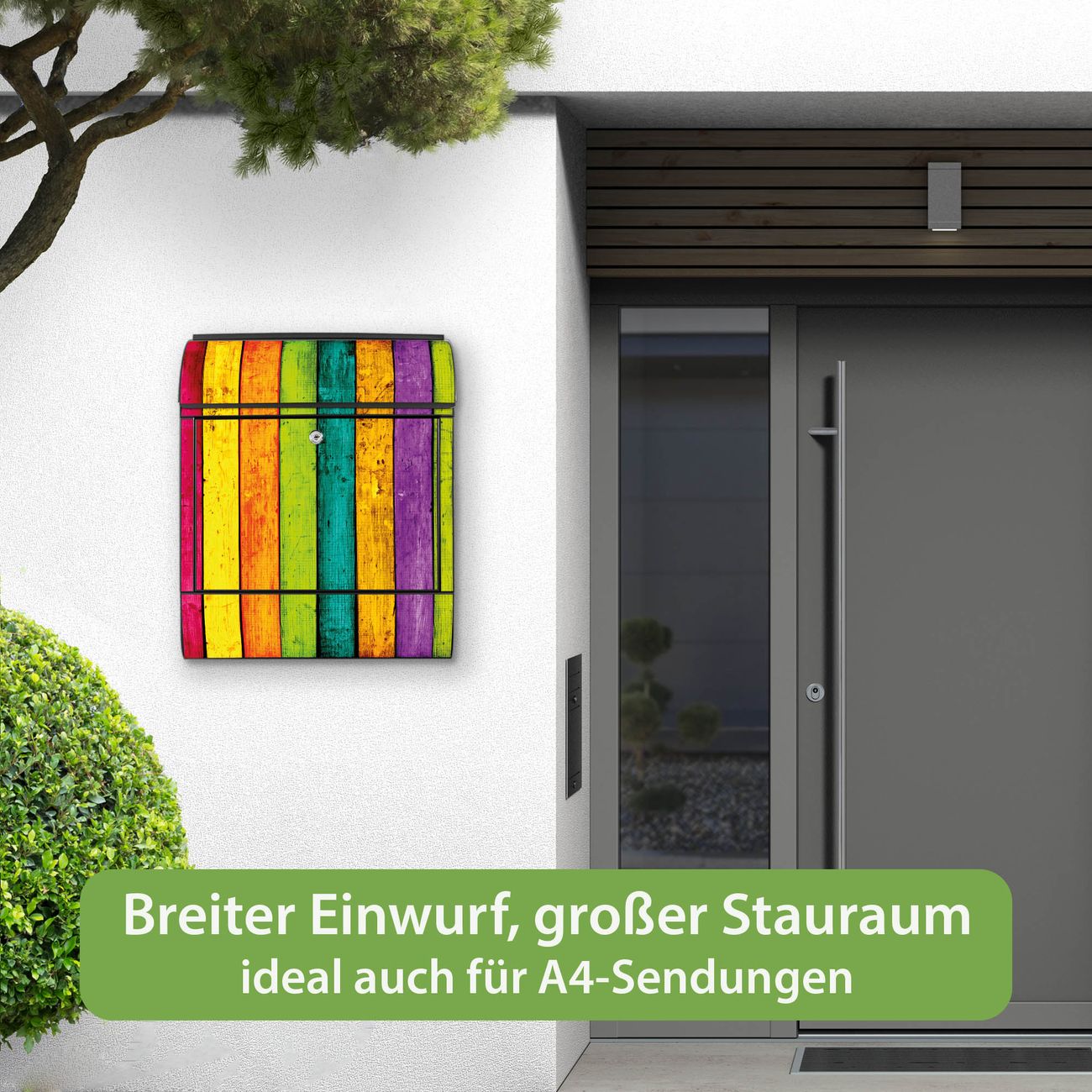 Großer Stahl Briefkasten Motiv Bunte Holzlatten