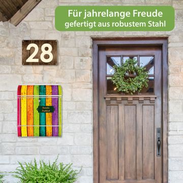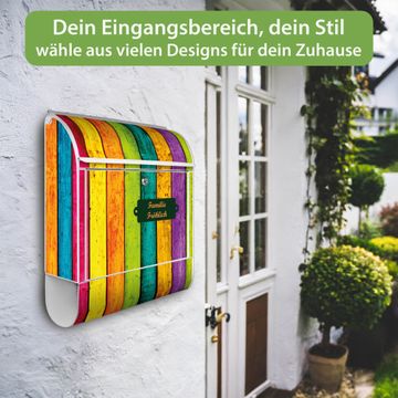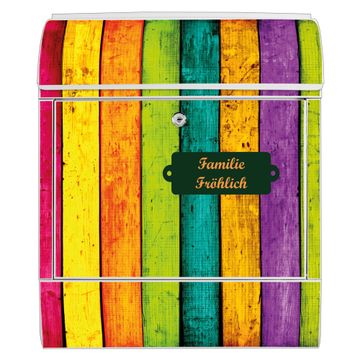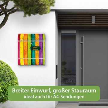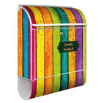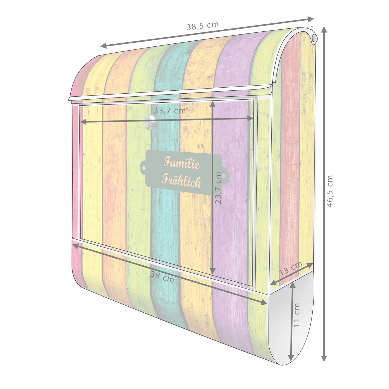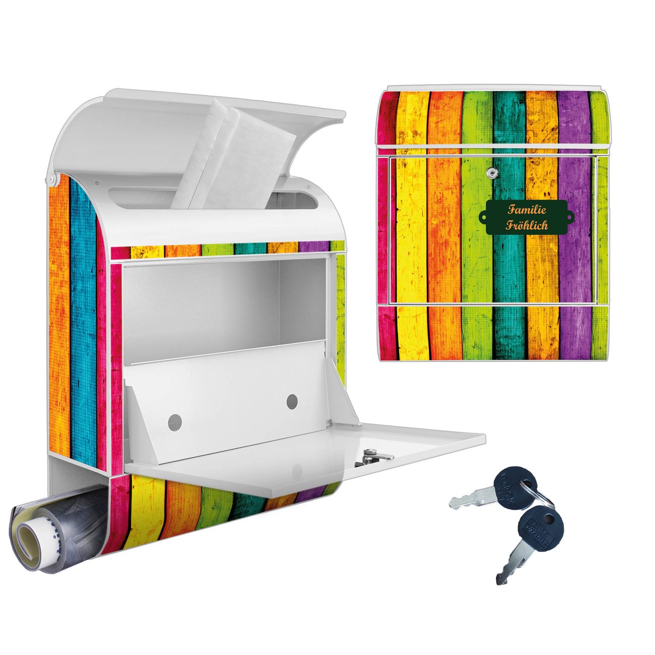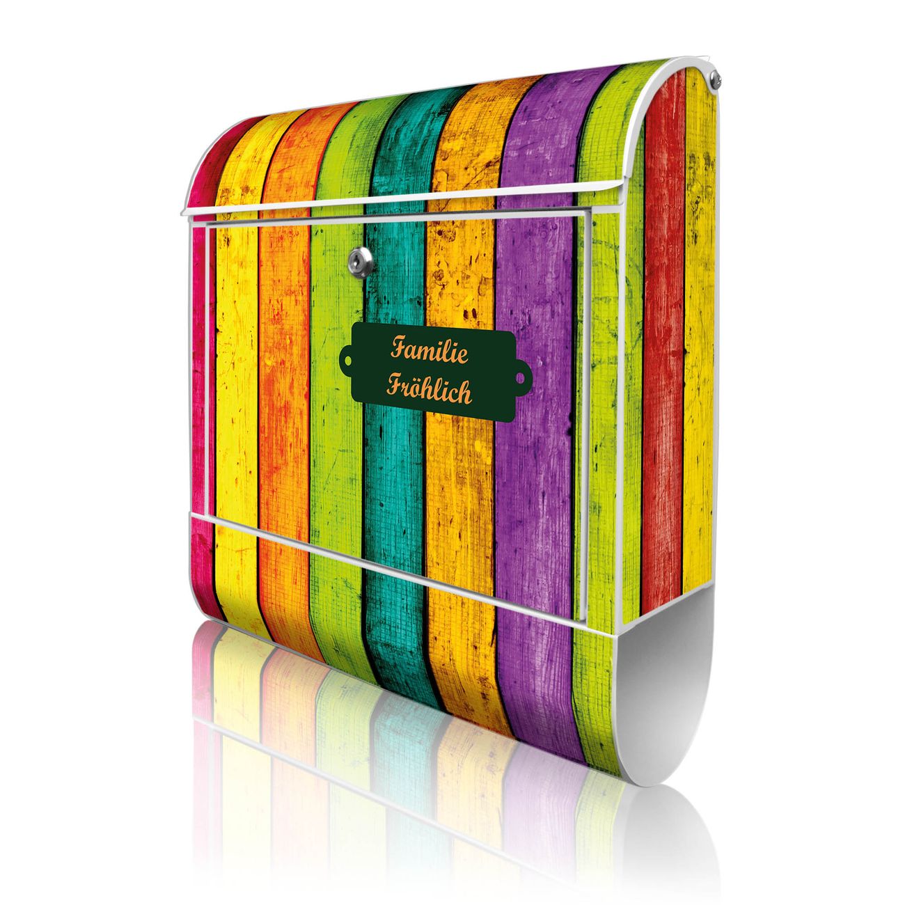 Großer Stahl Briefkasten Motiv Bunte Holzlatten