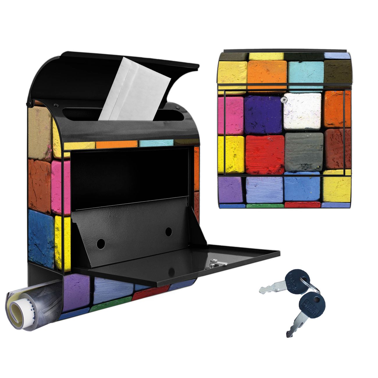 Großer Stahl Briefkasten Motiv Bunte Kreide