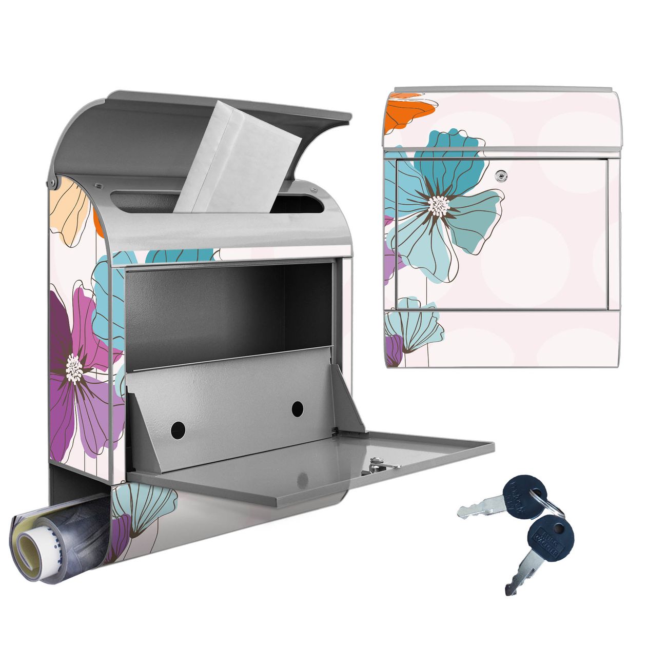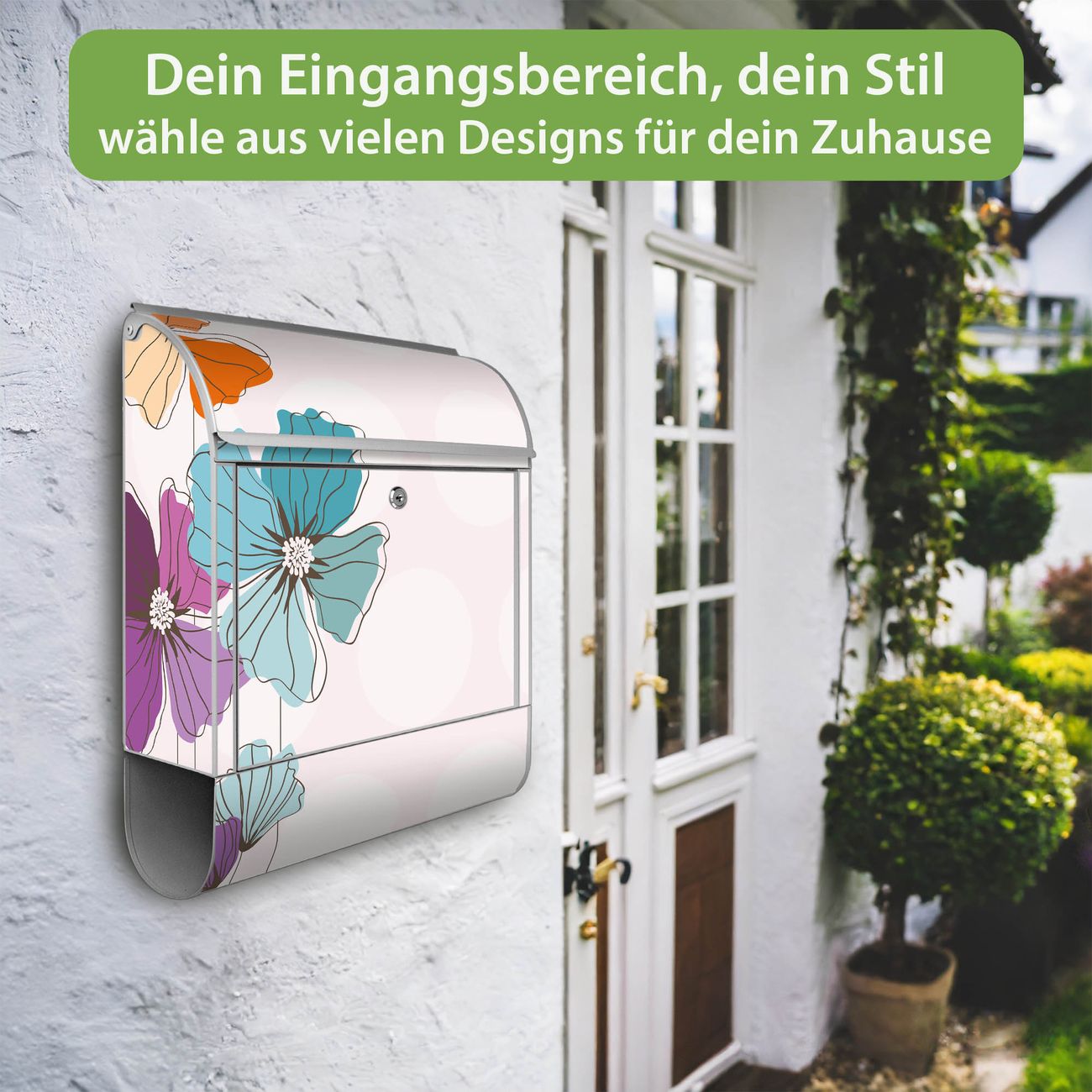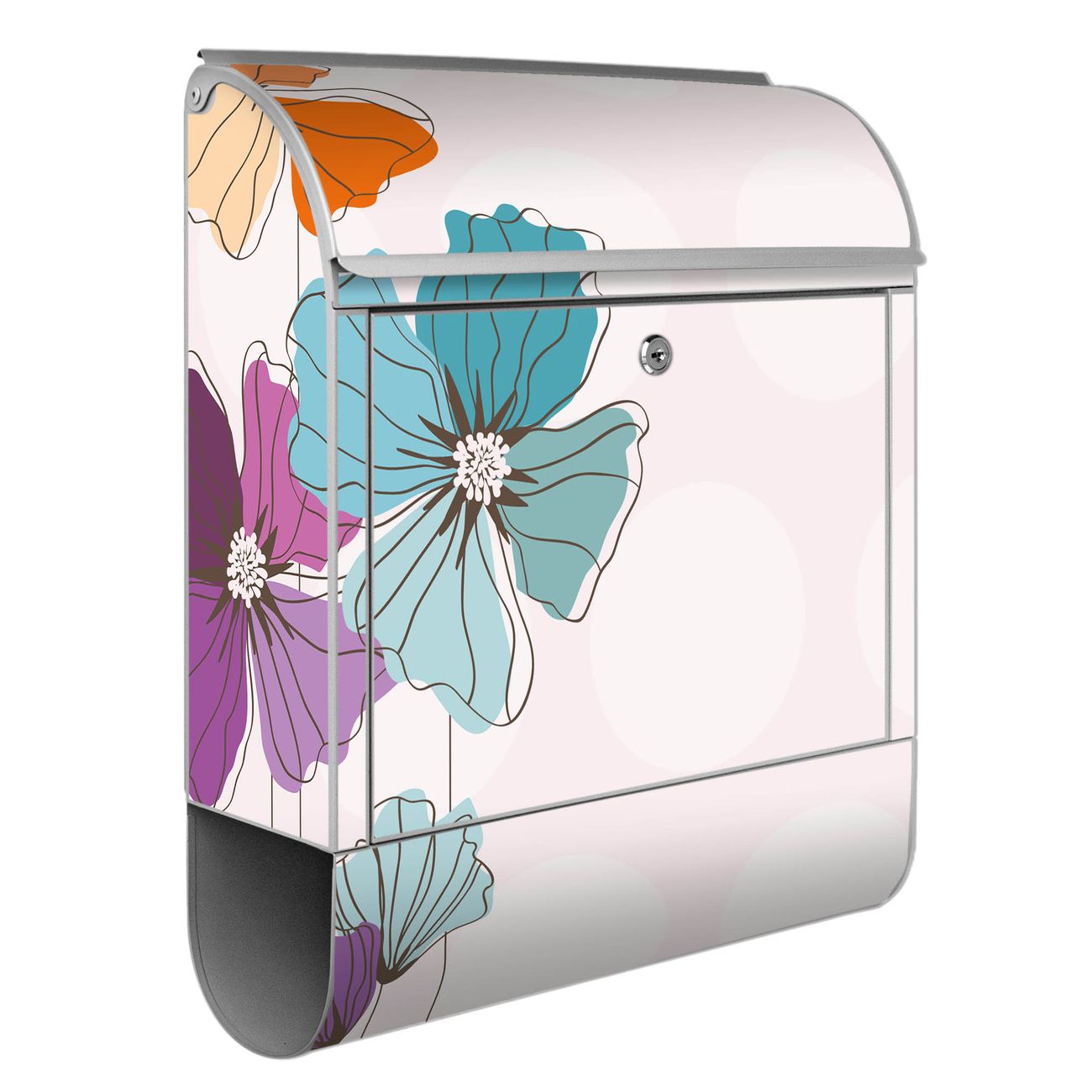 Großer Stahl Briefkasten Motiv Bunter Mohn