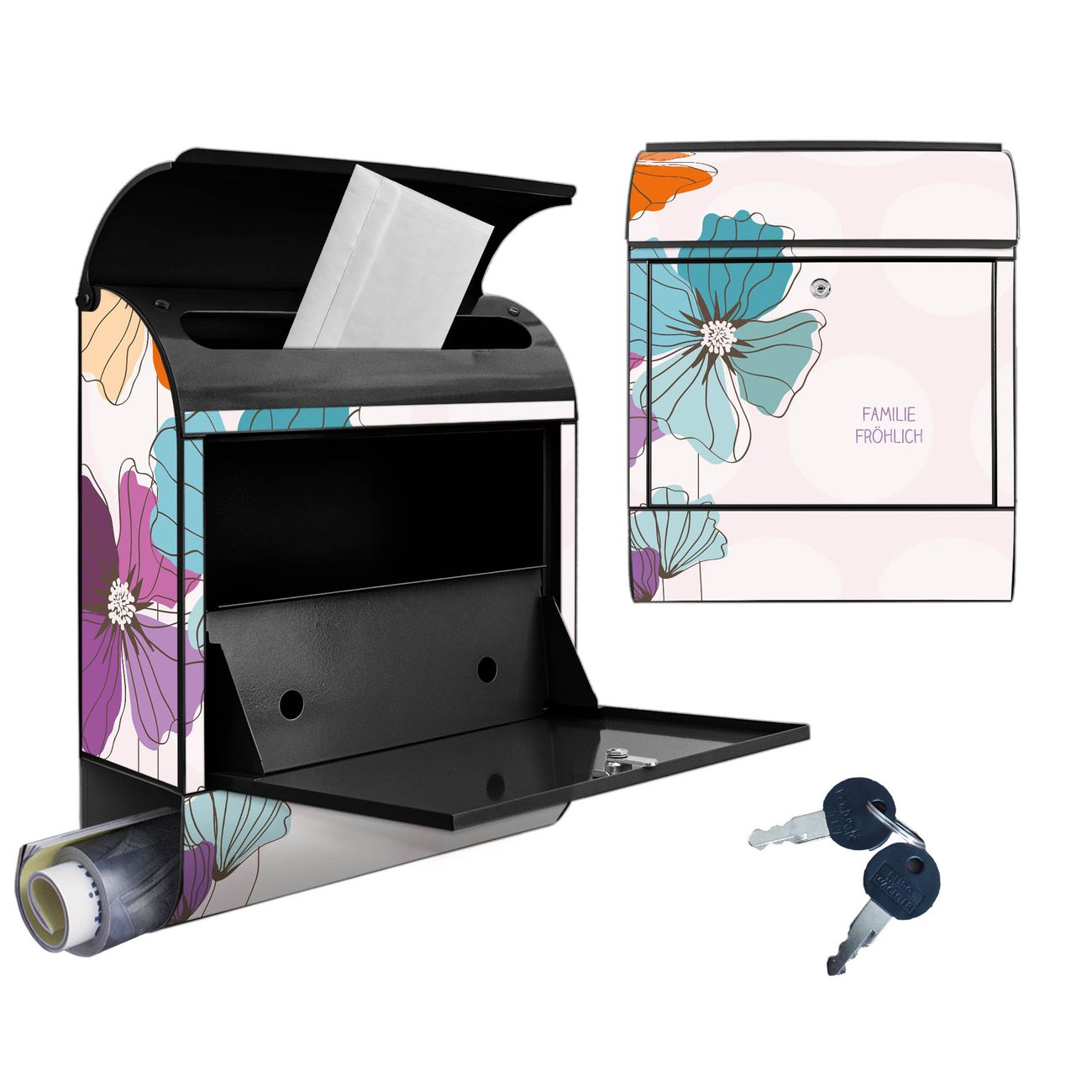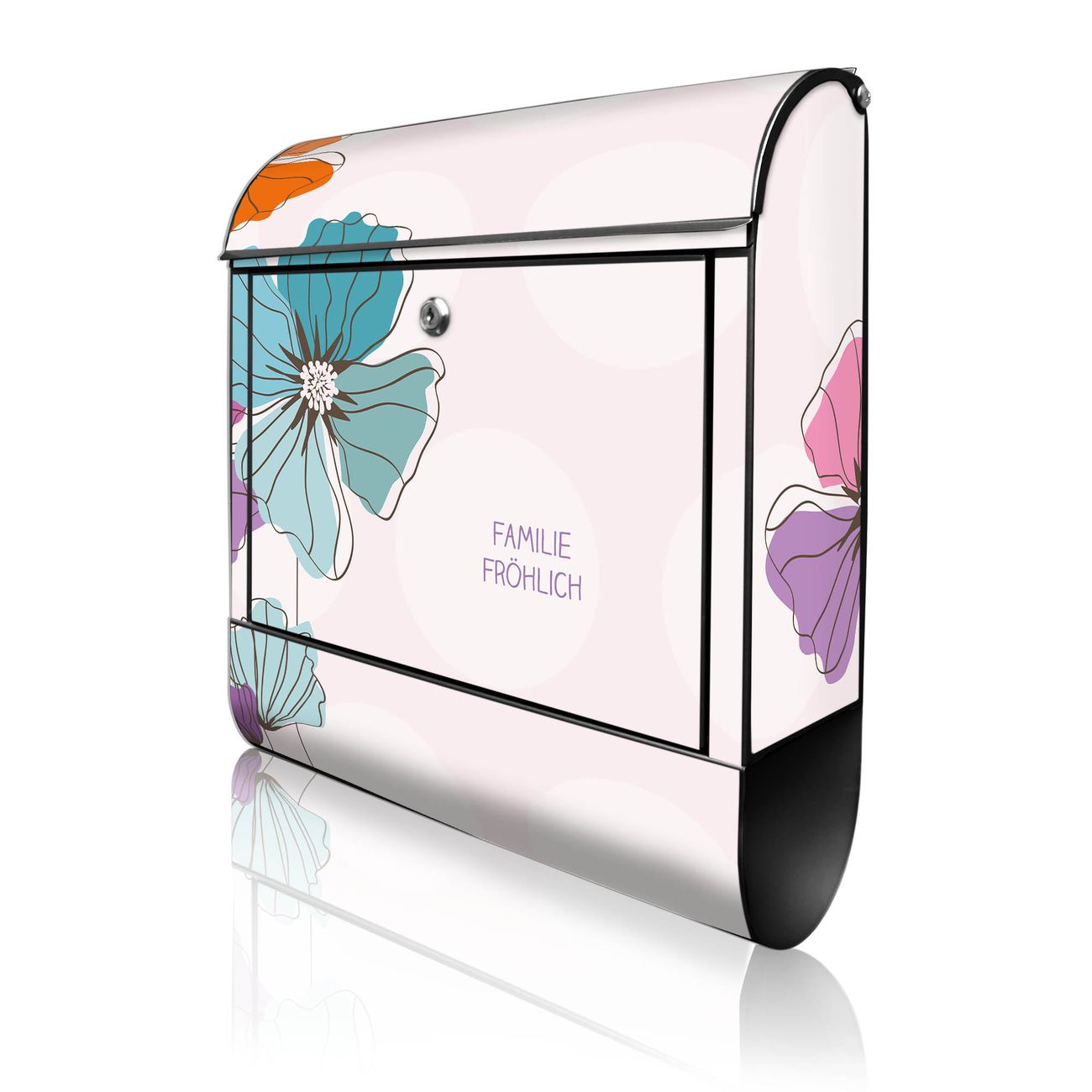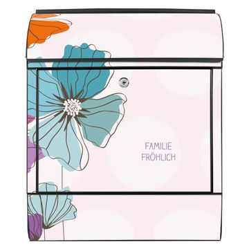 Großer Stahl Briefkasten Motiv Bunter Mohn