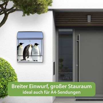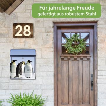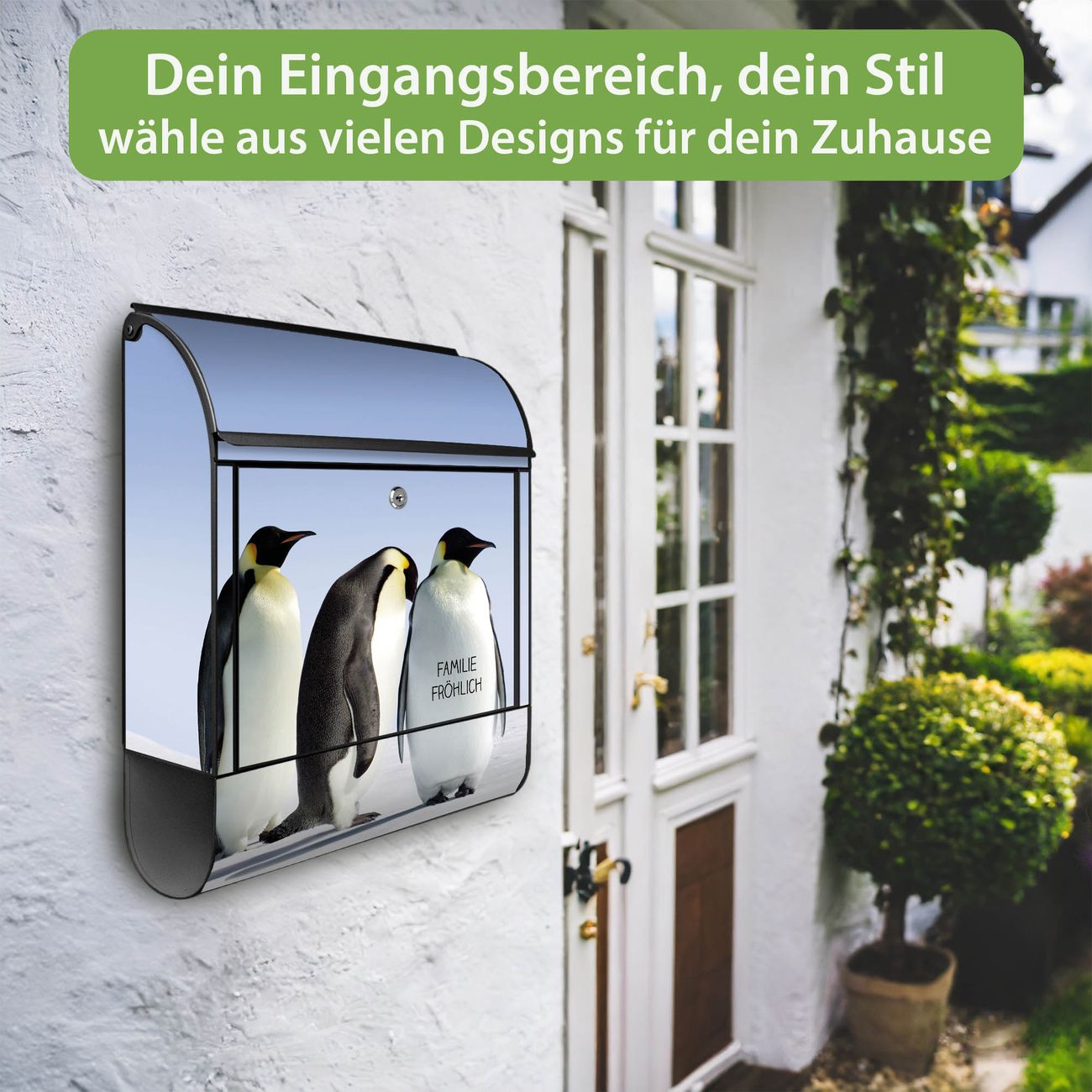 DESIGN: Der Postkasten mit Motiv Motiv Catch Up hat ein sehr ansprechendes und ausgefallenes Design, damit entlocken Sie Ihren Nachbarn und dem Postboten ein Lächeln. Heben Sie Sich von der tristen grauen Masse ab, ohne auf Funktionalität zu verzichten. DETAILS: Der Postkasten besteht aus pulverbeschichtetem Stahl. Er ist 38x46x12,5cm groß. Das Motiv besteht aus einer wetter- und UV-resistenten Folie, die mit einem Schutzlaminat überzogen ist, sodass der Briefkasten zusätzlich vor Kratzern geschützt ist. Der Briefkasten wird mit Montagematerial, zusätzlich zwei Schlüssel sowie einer Bohrschablone geliefert. NUTZEN: Sie können diesen Briefkasten sowohl als Wandbriefkasten montieren oder einen passenden Ständer kaufen und als Standbriefkasten einbetonieren. Die Größe bietet genügend Platz für Sendungen aller Art, der Einwurf fasst auch größere A4 Sendungen. BANJADO: Ihr Briefkasten wird in Sachsen in einer kleinen Manufaktur von Hand veredelt. Die Motivfolie ist lösungsmittelfrei und schutzlaminiert für einen langen Halt. Wir legen großen Wert auf die Verbindung von Funktionalität und Design. Sie erhalten Handarbeit aus Sachsen.