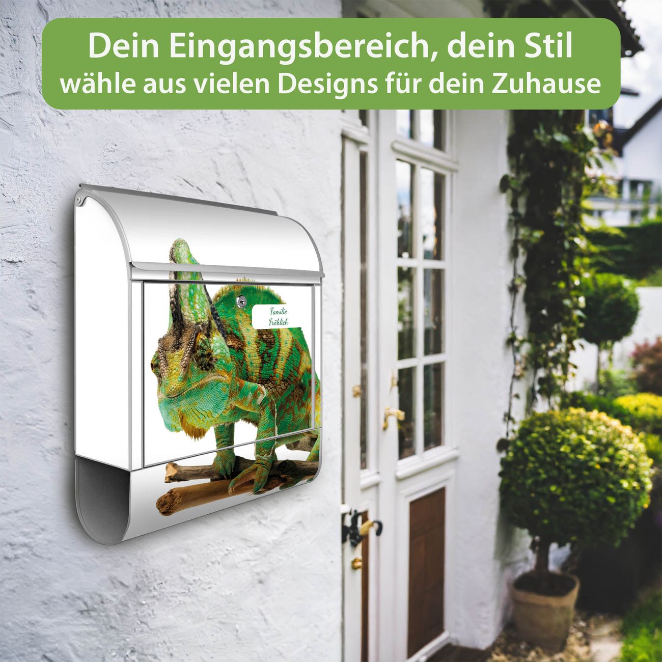 Großer Stahl Briefkasten Motiv Chamäleon