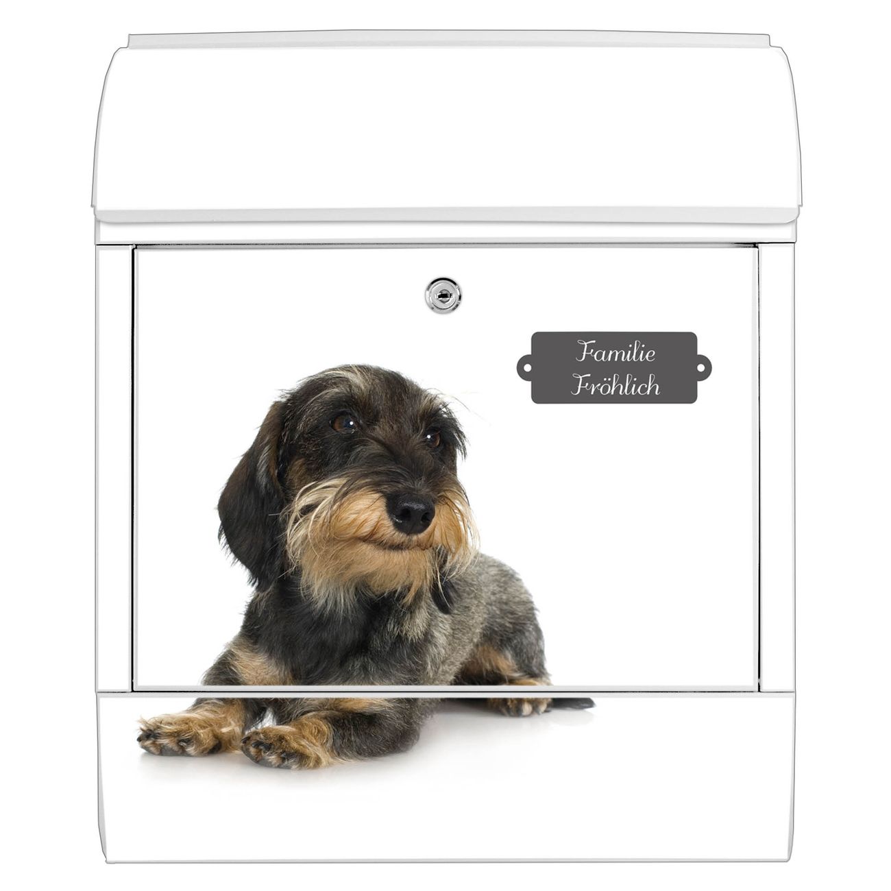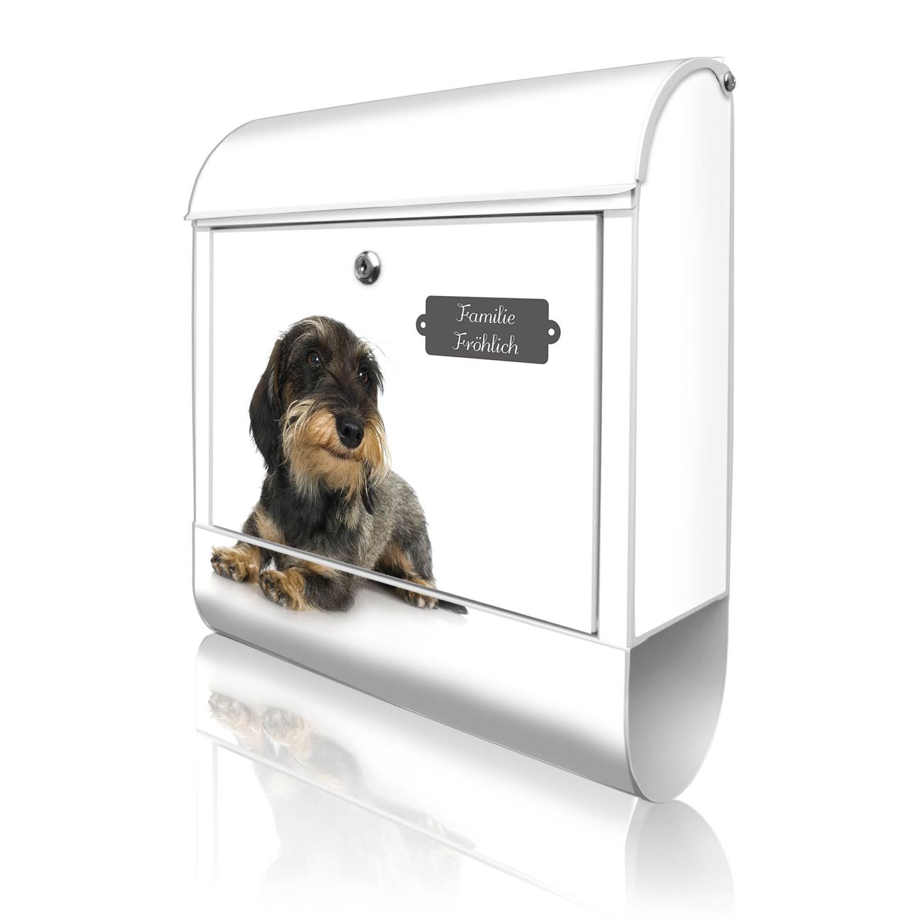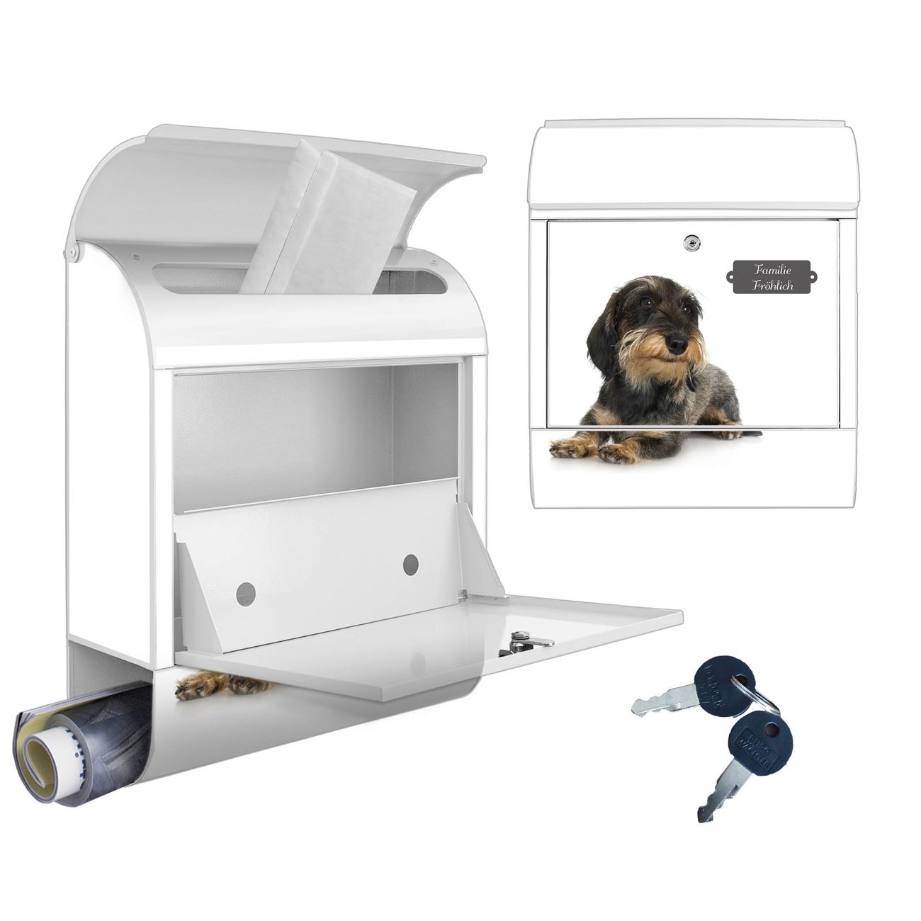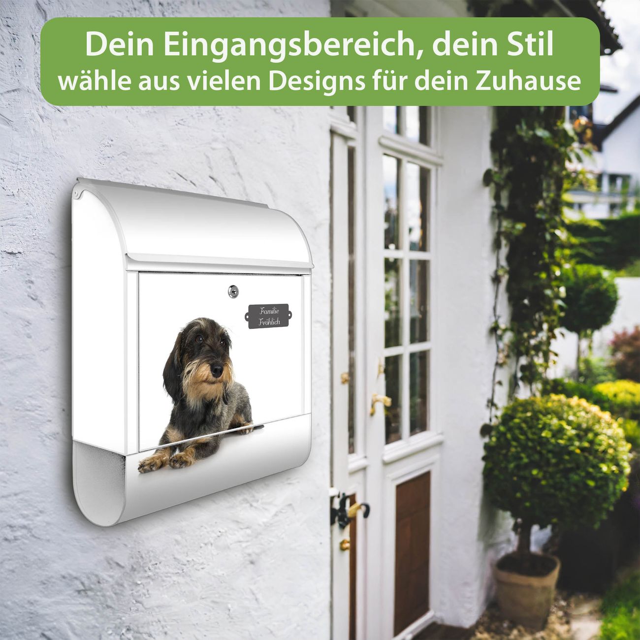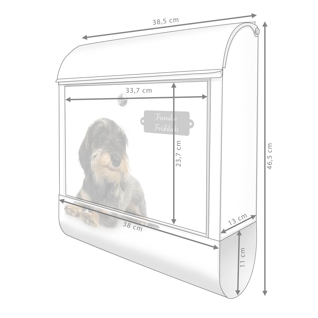 DESIGN: Der Postkasten mit Motiv Motiv Dackel hat ein sehr ansprechendes und ausgefallenes Design, damit entlocken Sie Ihren Nachbarn und dem Postboten ein Lächeln. Heben Sie Sich von der tristen grauen Masse ab, ohne auf Funktionalität zu verzichten. DETAILS: Der Postkasten besteht aus pulverbeschichtetem Stahl. Er ist 38x46x12,5cm groß. Das Motiv besteht aus einer wetter- und UV-resistenten Folie, die mit einem Schutzlaminat überzogen ist, sodass der Briefkasten zusätzlich vor Kratzern geschützt ist. Der Briefkasten wird mit Montagematerial, zusätzlich zwei Schlüssel sowie einer Bohrschablone geliefert. NUTZEN: Sie können diesen Briefkasten sowohl als Wandbriefkasten montieren oder einen passenden Ständer kaufen und als Standbriefkasten einbetonieren. Die Größe bietet genügend Platz für Sendungen aller Art, der Einwurf fasst auch größere A4 Sendungen. BANJADO: Ihr Briefkasten wird in Sachsen in einer kleinen Manufaktur von Hand veredelt. Die Motivfolie ist lösungsmittelfrei und schutzlaminiert für einen langen Halt. Wir legen großen Wert auf die Verbindung von Funktionalität und Design. Sie erhalten Handarbeit aus Sachsen.