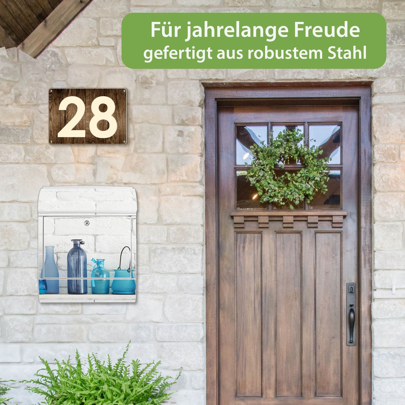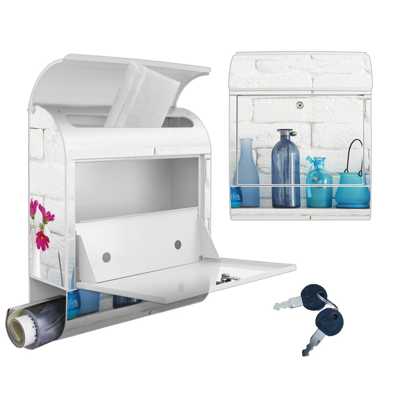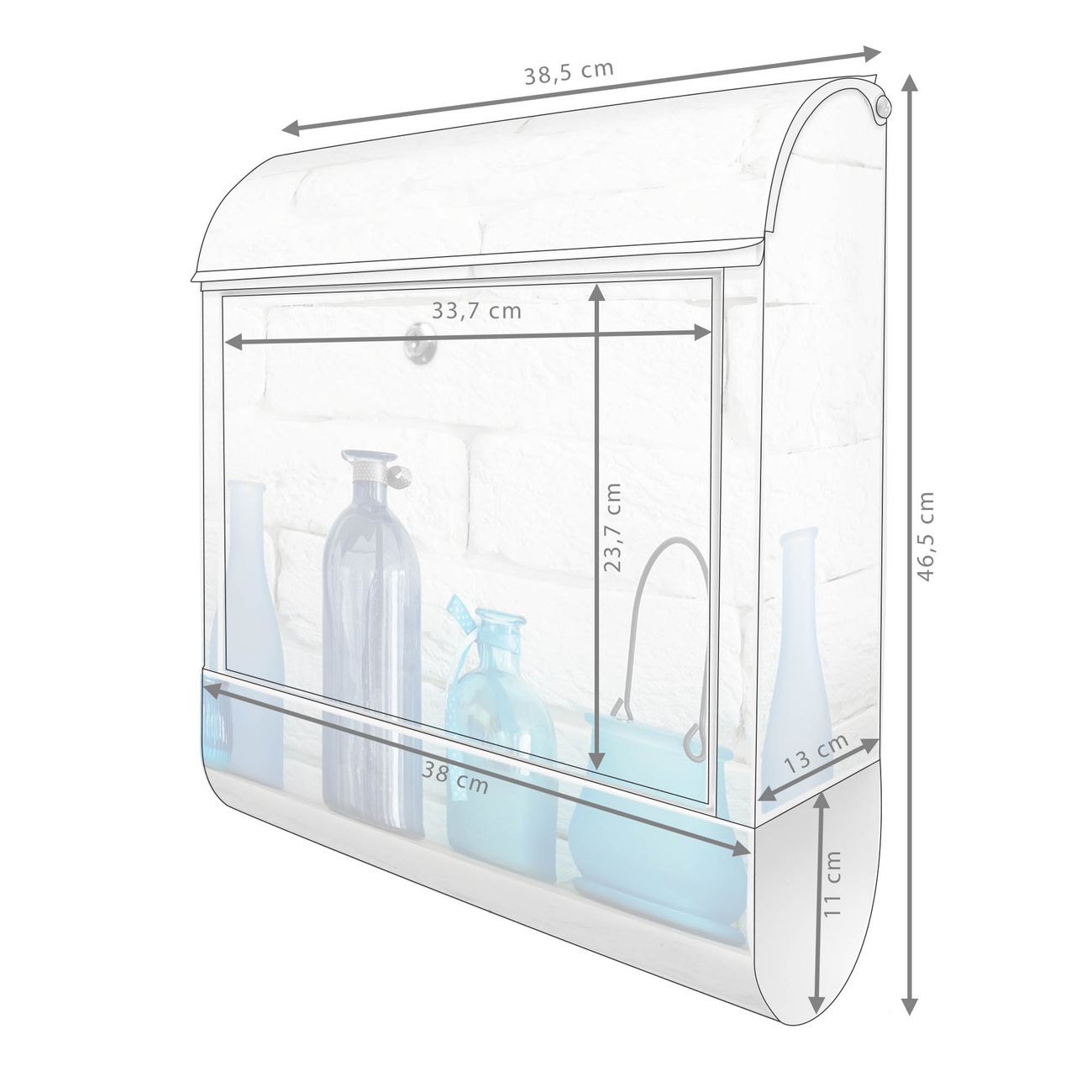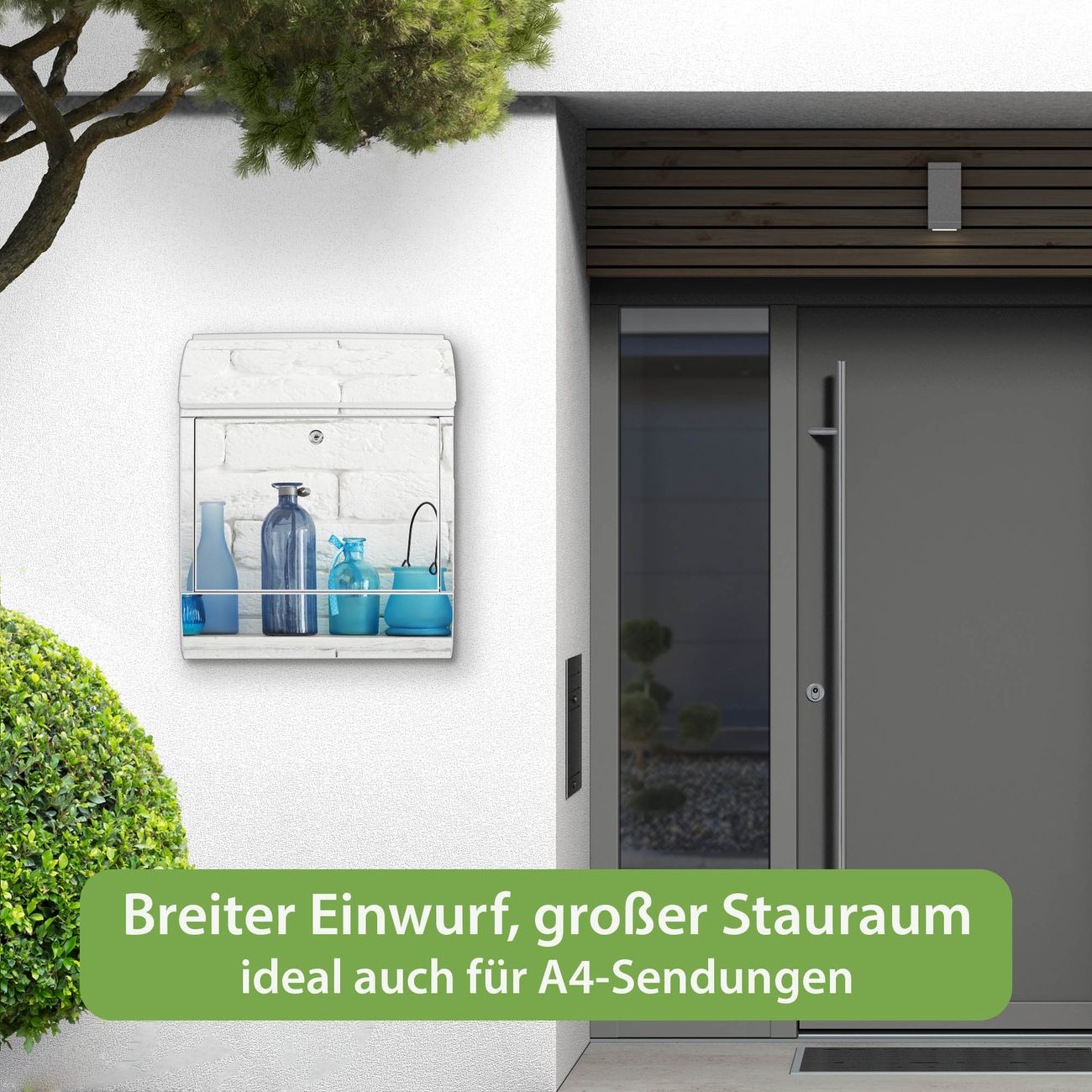 DESIGN: Der Postkasten mit Motiv Motiv Dekoartikel Blau hat ein sehr ansprechendes und ausgefallenes Design, damit entlocken Sie Ihren Nachbarn und dem Postboten ein Lächeln. Heben Sie Sich von der tristen grauen Masse ab, ohne auf Funktionalität zu verzichten. DETAILS: Der Postkasten besteht aus pulverbeschichtetem Stahl. Er ist 38x46x12,5cm groß. Das Motiv besteht aus einer wetter- und UV-resistenten Folie, die mit einem Schutzlaminat überzogen ist, sodass der Briefkasten zusätzlich vor Kratzern geschützt ist. Der Briefkasten wird mit Montagematerial, zusätzlich zwei Schlüssel sowie einer Bohrschablone geliefert. NUTZEN: Sie können diesen Briefkasten sowohl als Wandbriefkasten montieren oder einen passenden Ständer kaufen und als Standbriefkasten einbetonieren. Die Größe bietet genügend Platz für Sendungen aller Art, der Einwurf fasst auch größere A4 Sendungen. BANJADO: Ihr Briefkasten wird in Sachsen in einer kleinen Manufaktur von Hand veredelt. Die Motivfolie ist lösungsmittelfrei und schutzlaminiert für einen langen Halt. Wir legen großen Wert auf die Verbindung von Funktionalität und Design. Sie erhalten Handarbeit aus Sachsen.