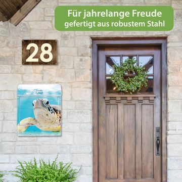 DESIGN: Der Postkasten mit Motiv Motiv Elvis hat ein sehr ansprechendes und ausgefallenes Design, damit entlocken Sie Ihren Nachbarn und dem Postboten ein Lächeln. Heben Sie Sich von der tristen grauen Masse ab, ohne auf Funktionalität zu verzichten. DETAILS: Der Postkasten besteht aus pulverbeschichtetem Stahl. Er ist 38x46x12,5cm groß. Das Motiv besteht aus einer wetter- und UV-resistenten Folie, die mit einem Schutzlaminat überzogen ist, sodass der Briefkasten zusätzlich vor Kratzern geschützt ist. Der Briefkasten wird mit Montagematerial, zusätzlich zwei Schlüssel sowie einer Bohrschablone geliefert. NUTZEN: Sie können diesen Briefkasten sowohl als Wandbriefkasten montieren oder einen passenden Ständer kaufen und als Standbriefkasten einbetonieren. Die Größe bietet genügend Platz für Sendungen aller Art, der Einwurf fasst auch größere A4 Sendungen. BANJADO: Ihr Briefkasten wird in Sachsen in einer kleinen Manufaktur von Hand veredelt. Die Motivfolie ist lösungsmittelfrei und schutzlaminiert für einen langen Halt. Wir legen großen Wert auf die Verbindung von Funktionalität und Design. Sie erhalten Handarbeit aus Sachsen.