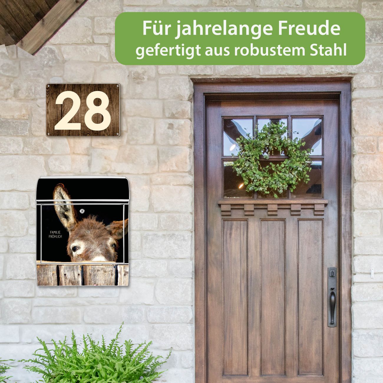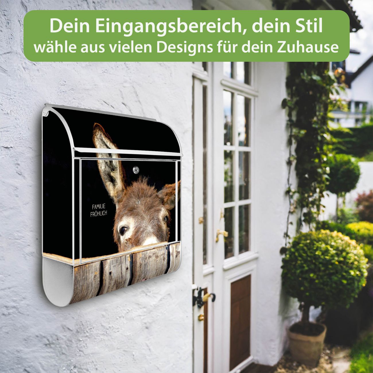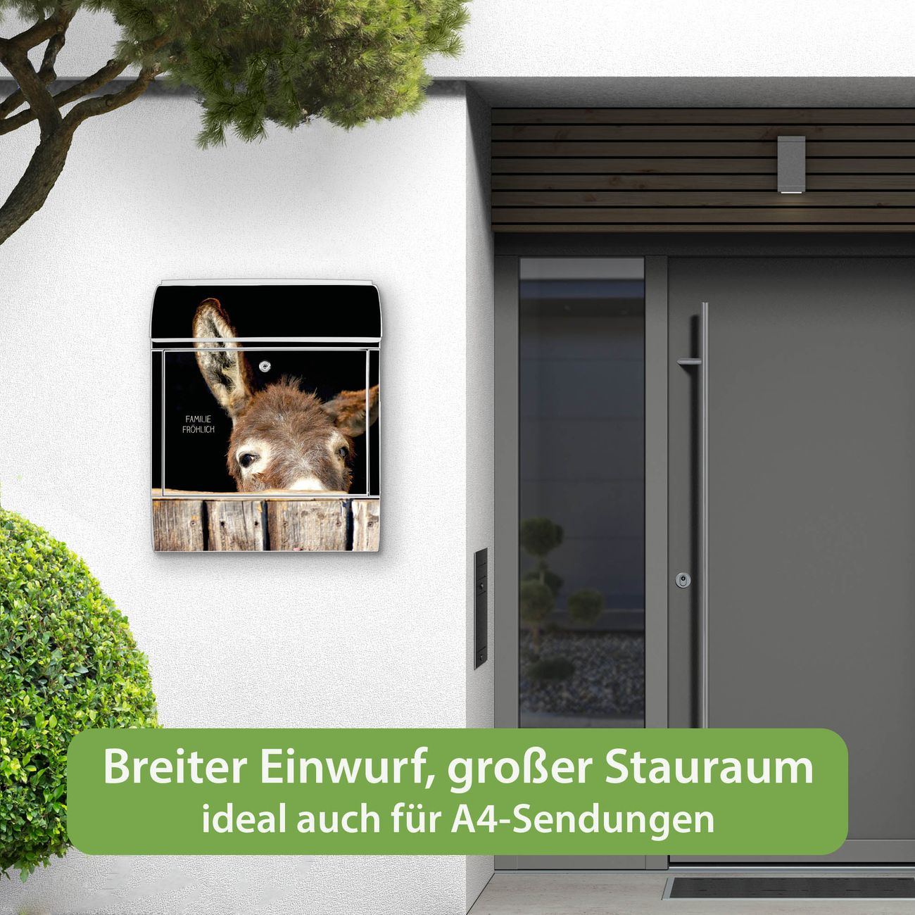 Großer Stahl Briefkasten Motiv Esel
