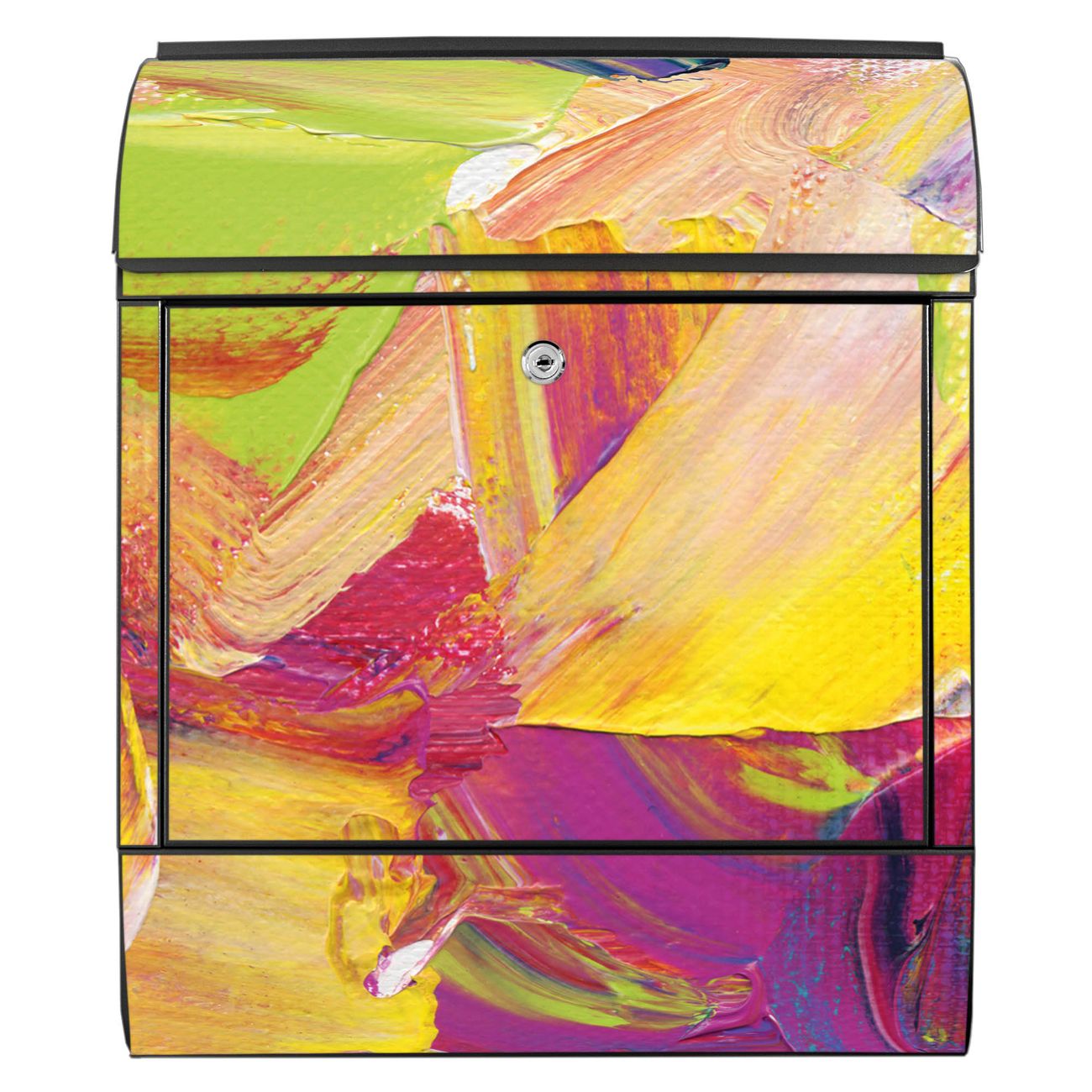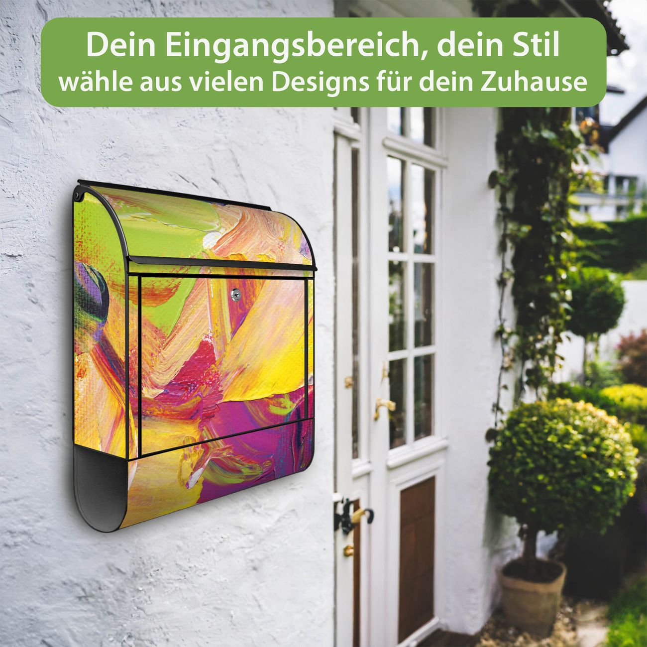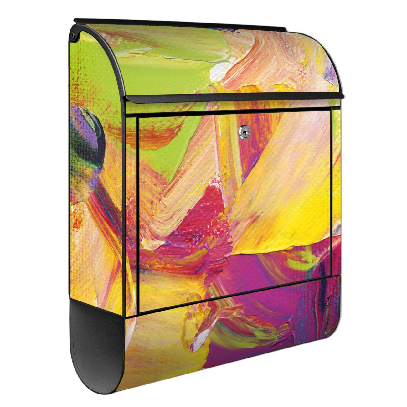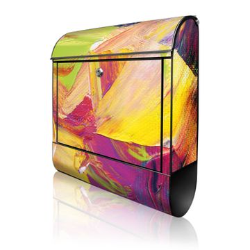 DESIGN: Der Postkasten mit Motiv Motiv Farbe auf Leinwand hat ein sehr ansprechendes und ausgefallenes Design, damit entlocken Sie Ihren Nachbarn und dem Postboten ein Lächeln. Heben Sie Sich von der tristen grauen Masse ab, ohne auf Funktionalität zu verzichten. DETAILS: Der Postkasten besteht aus pulverbeschichtetem Stahl. Er ist 38x46x12,5cm groß. Das Motiv besteht aus einer wetter- und UV-resistenten Folie, die mit einem Schutzlaminat überzogen ist, sodass der Briefkasten zusätzlich vor Kratzern geschützt ist. Der Briefkasten wird mit Montagematerial, zusätzlich zwei Schlüssel sowie einer Bohrschablone geliefert. NUTZEN: Sie können diesen Briefkasten sowohl als Wandbriefkasten montieren oder einen passenden Ständer kaufen und als Standbriefkasten einbetonieren. Die Größe bietet genügend Platz für Sendungen aller Art, der Einwurf fasst auch größere A4 Sendungen. BANJADO: Ihr Briefkasten wird in Sachsen in einer kleinen Manufaktur von Hand veredelt. Die Motivfolie ist lösungsmittelfrei und schutzlaminiert für einen langen Halt. Wir legen großen Wert auf die Verbindung von Funktionalität und Design. Sie erhalten Handarbeit aus Sachsen.