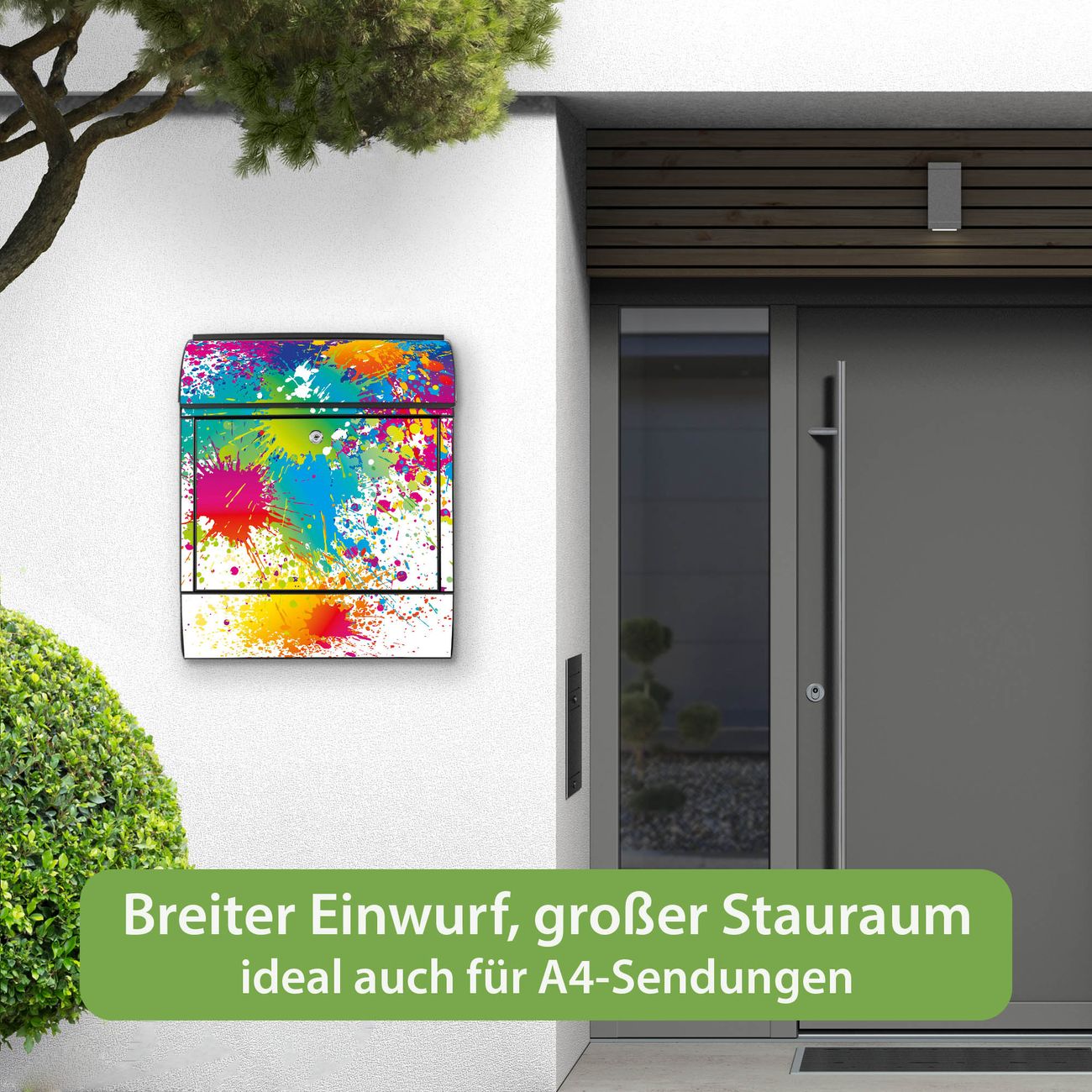 Großer Stahl Briefkasten Motiv Farbspritzer