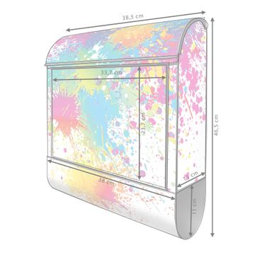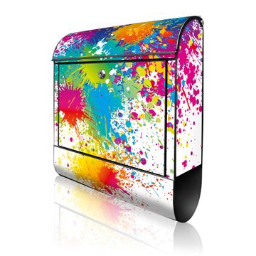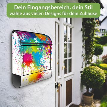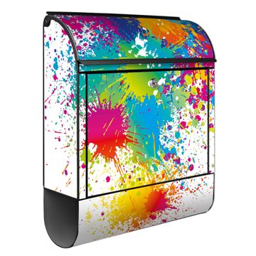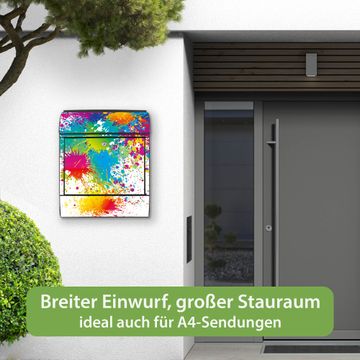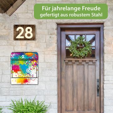 DESIGN: Der Postkasten mit Motiv Motiv Farbspritzer hat ein sehr ansprechendes und ausgefallenes Design, damit entlocken Sie Ihren Nachbarn und dem Postboten ein Lächeln. Heben Sie Sich von der tristen grauen Masse ab, ohne auf Funktionalität zu verzichten.