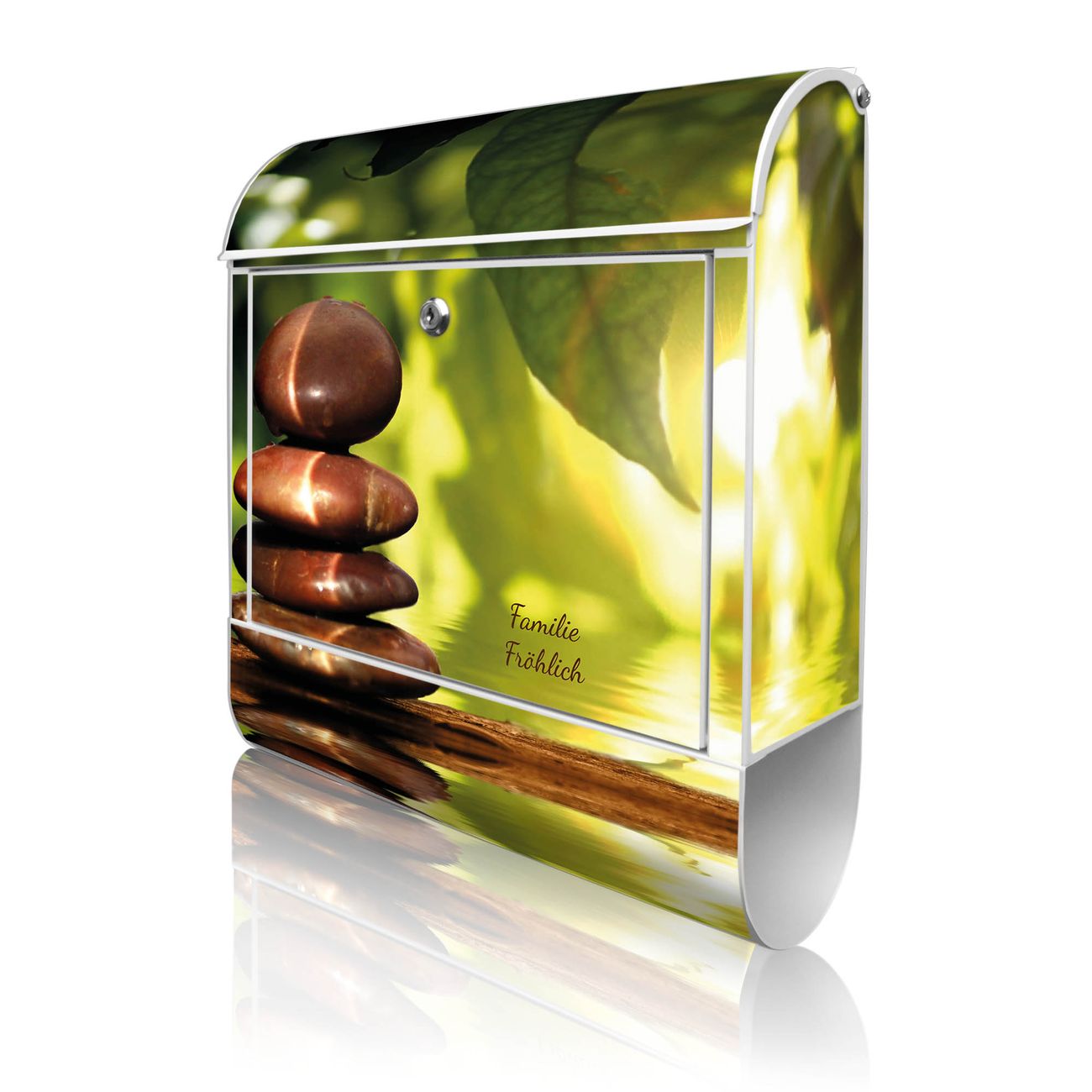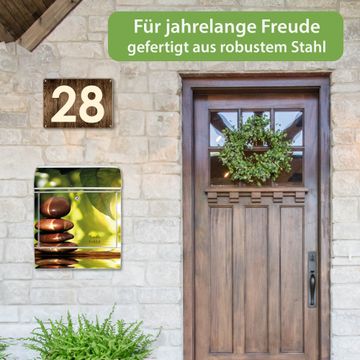 DESIGN: Der Postkasten mit Motiv Motiv Feng Shui hat ein sehr ansprechendes und ausgefallenes Design, damit entlocken Sie Ihren Nachbarn und dem Postboten ein Lächeln. Heben Sie Sich von der tristen grauen Masse ab, ohne auf Funktionalität zu verzichten.