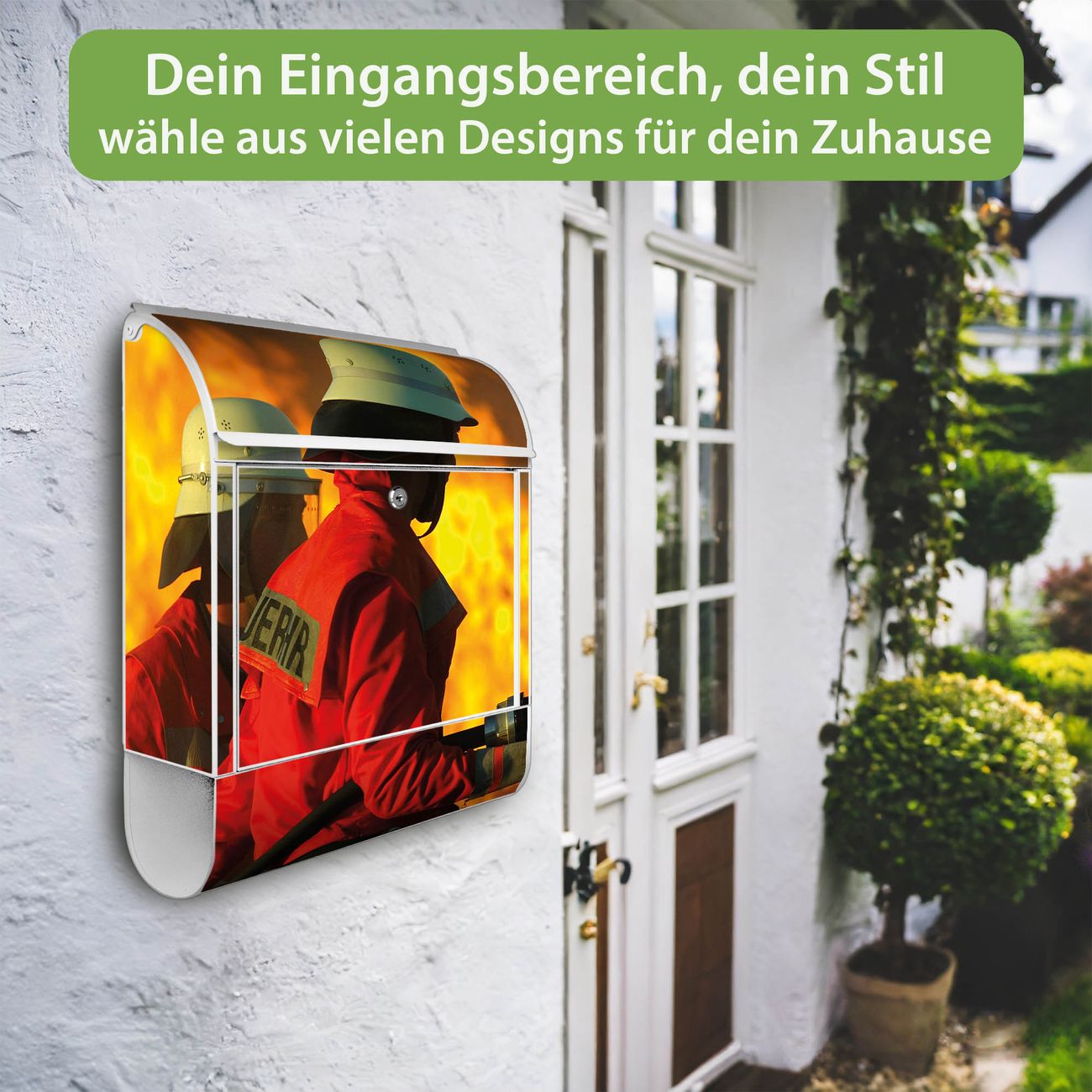 DESIGN: Der Postkasten mit Motiv Motiv Feuer hat ein sehr ansprechendes und ausgefallenes Design, damit entlocken Sie Ihren Nachbarn und dem Postboten ein Lächeln. Heben Sie Sich von der tristen grauen Masse ab, ohne auf Funktionalität zu verzichten. DETAILS: Der Postkasten besteht aus pulverbeschichtetem Stahl. Er ist 38x46x12,5cm groß. Das Motiv besteht aus einer wetter- und UV-resistenten Folie, die mit einem Schutzlaminat überzogen ist, sodass der Briefkasten zusätzlich vor Kratzern geschützt ist. Der Briefkasten wird mit Montagematerial, zusätzlich zwei Schlüssel sowie einer Bohrschablone geliefert. NUTZEN: Sie können diesen Briefkasten sowohl als Wandbriefkasten montieren oder einen passenden Ständer kaufen und als Standbriefkasten einbetonieren. Die Größe bietet genügend Platz für Sendungen aller Art, der Einwurf fasst auch größere A4 Sendungen. BANJADO: Ihr Briefkasten wird in Sachsen in einer kleinen Manufaktur von Hand veredelt. Die Motivfolie ist lösungsmittelfrei und schutzlaminiert für einen langen Halt. Wir legen großen Wert auf die Verbindung von Funktionalität und Design. Sie erhalten Handarbeit aus Sachsen.