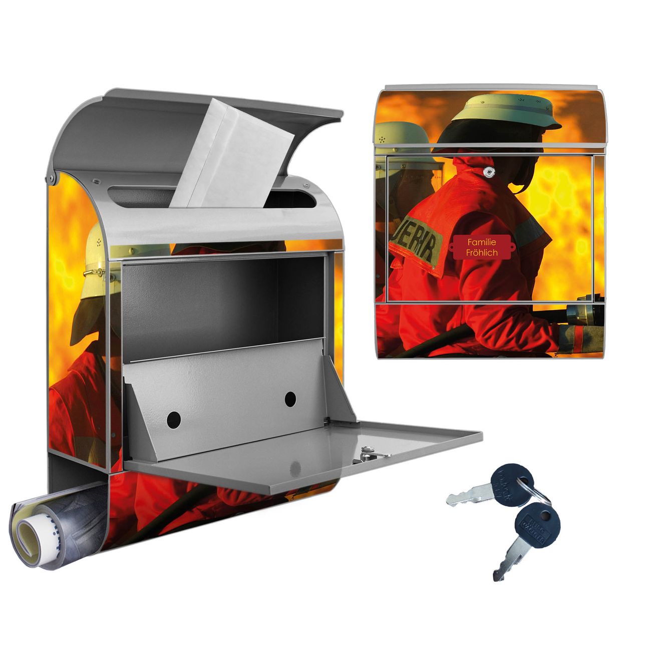 Großer Stahl Briefkasten Motiv Feuer