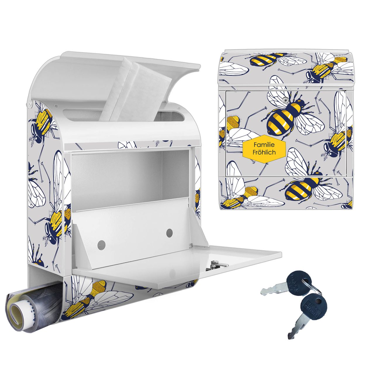 Großer Stahl Briefkasten Motiv Fliegen und Bienen