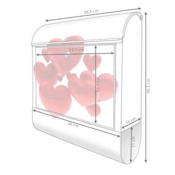 Großer Stahl Briefkasten Motiv Fliegende Herzen