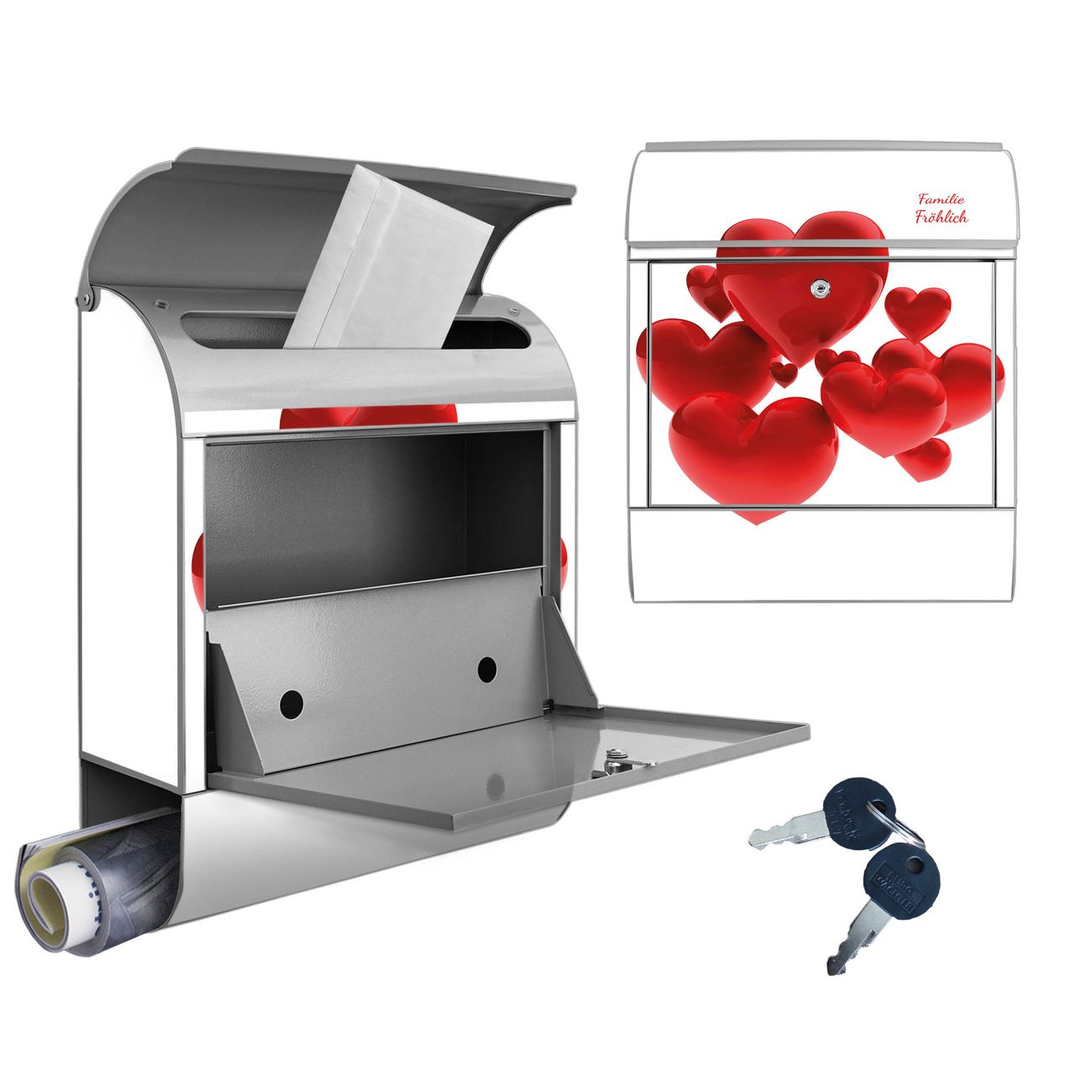 Großer Stahl Briefkasten Motiv Fliegende Herzen