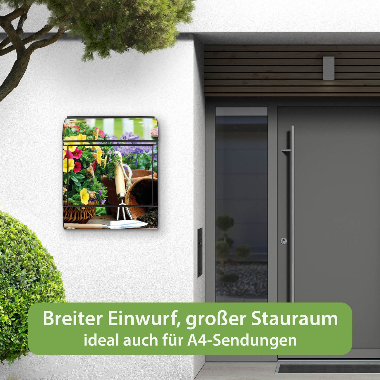 Großer Stahl Briefkasten Motiv Gartenfreude