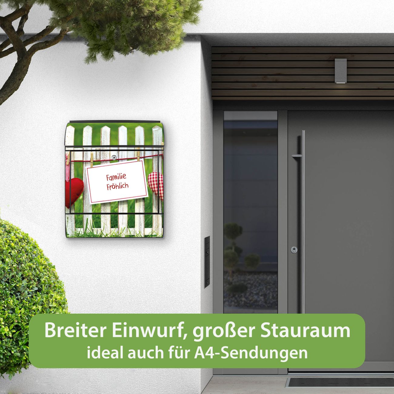 Großer Stahl Briefkasten Motiv Gartenzaun