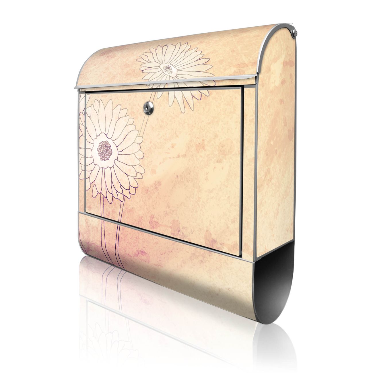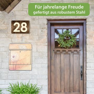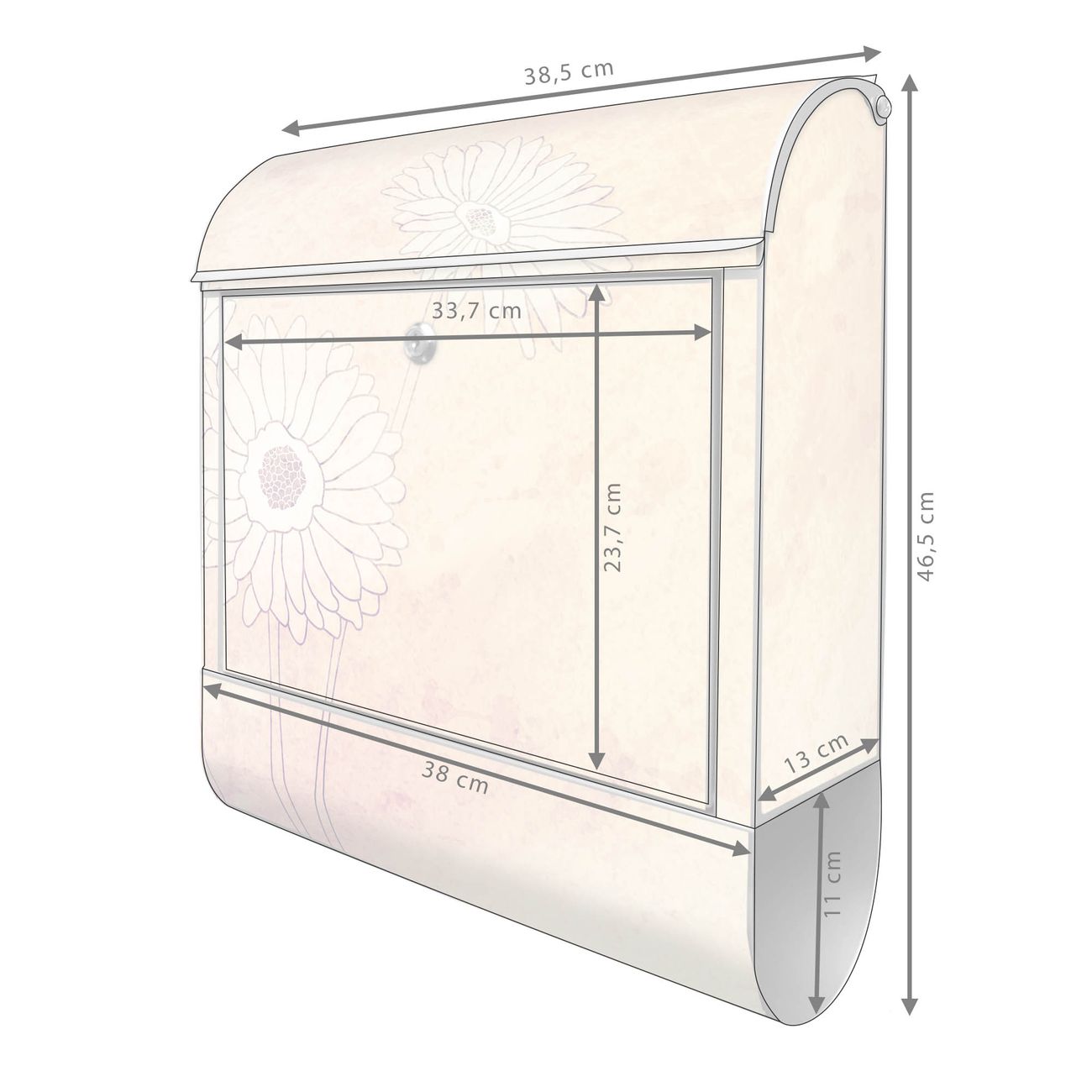 DESIGN: Der Postkasten mit Motiv Motiv Gerbera hat ein sehr ansprechendes und ausgefallenes Design, damit entlocken Sie Ihren Nachbarn und dem Postboten ein Lächeln. Heben Sie Sich von der tristen grauen Masse ab, ohne auf Funktionalität zu verzichten. DETAILS: Der Postkasten besteht aus pulverbeschichtetem Stahl. Er ist 38x46x12,5cm groß. Das Motiv besteht aus einer wetter- und UV-resistenten Folie, die mit einem Schutzlaminat überzogen ist, sodass der Briefkasten zusätzlich vor Kratzern geschützt ist. Der Briefkasten wird mit Montagematerial, zusätzlich zwei Schlüssel sowie einer Bohrschablone geliefert. NUTZEN: Sie können diesen Briefkasten sowohl als Wandbriefkasten montieren oder einen passenden Ständer kaufen und als Standbriefkasten einbetonieren. Die Größe bietet genügend Platz für Sendungen aller Art, der Einwurf fasst auch größere A4 Sendungen. BANJADO: Ihr Briefkasten wird in Sachsen in einer kleinen Manufaktur von Hand veredelt. Die Motivfolie ist lösungsmittelfrei und schutzlaminiert für einen langen Halt. Wir legen großen Wert auf die Verbindung von Funktionalität und Design. Sie erhalten Handarbeit aus Sachsen.