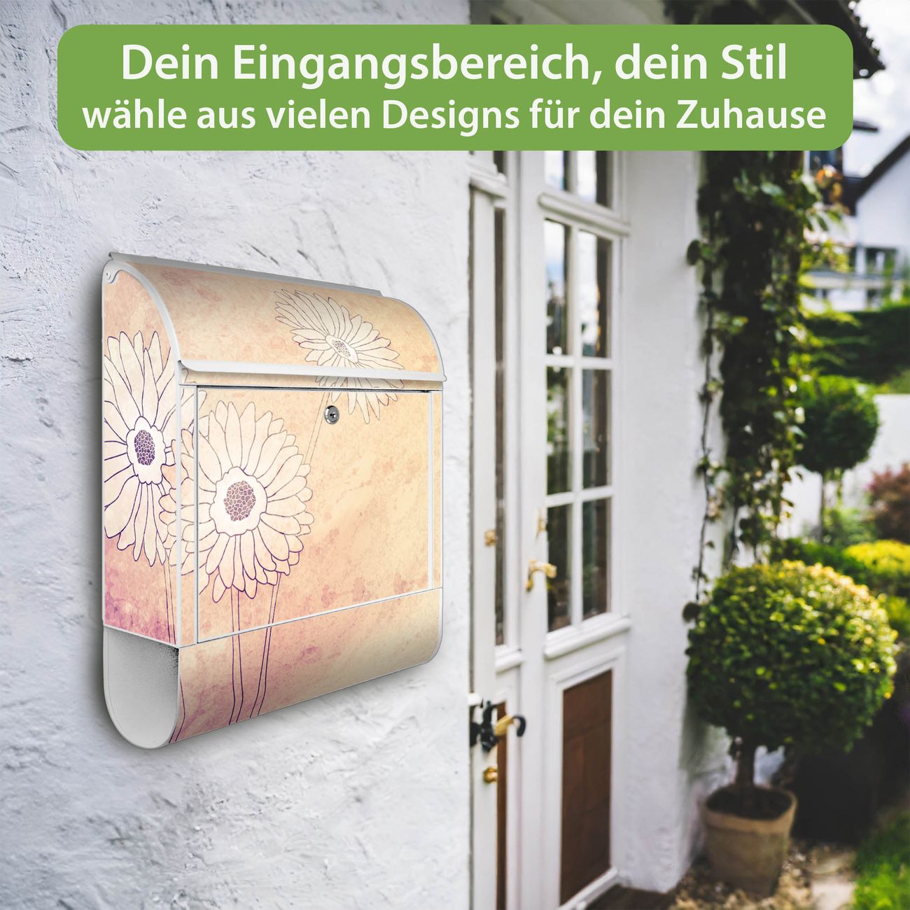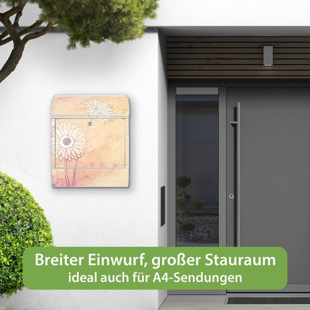 Großer Stahl Briefkasten Motiv Gerbera