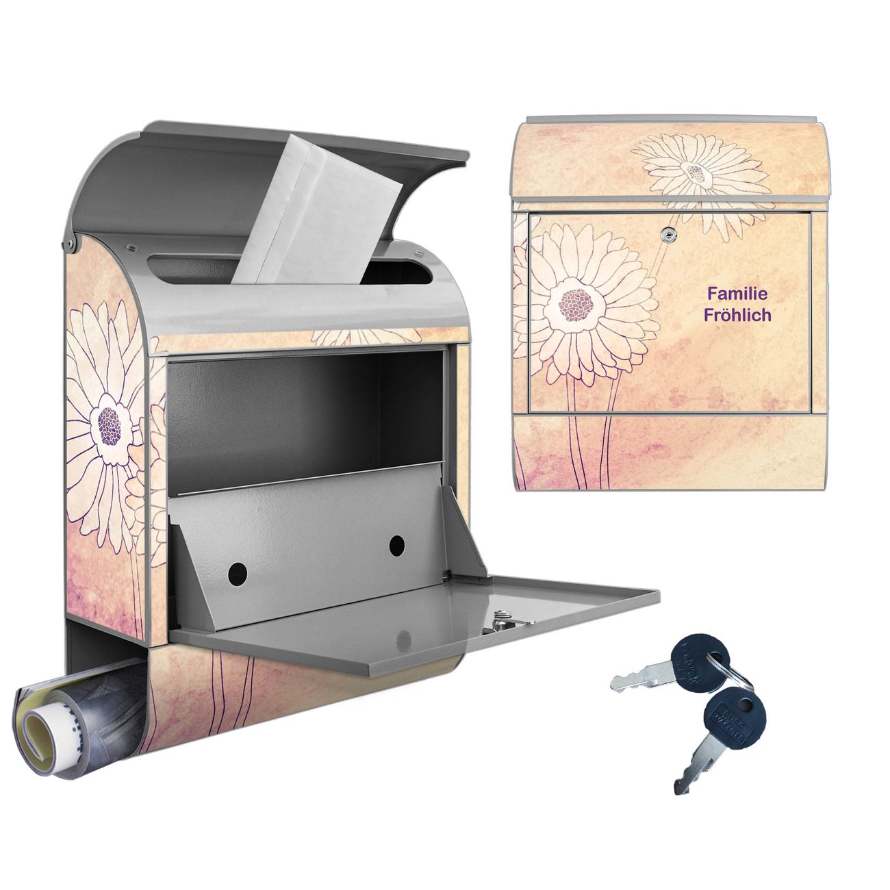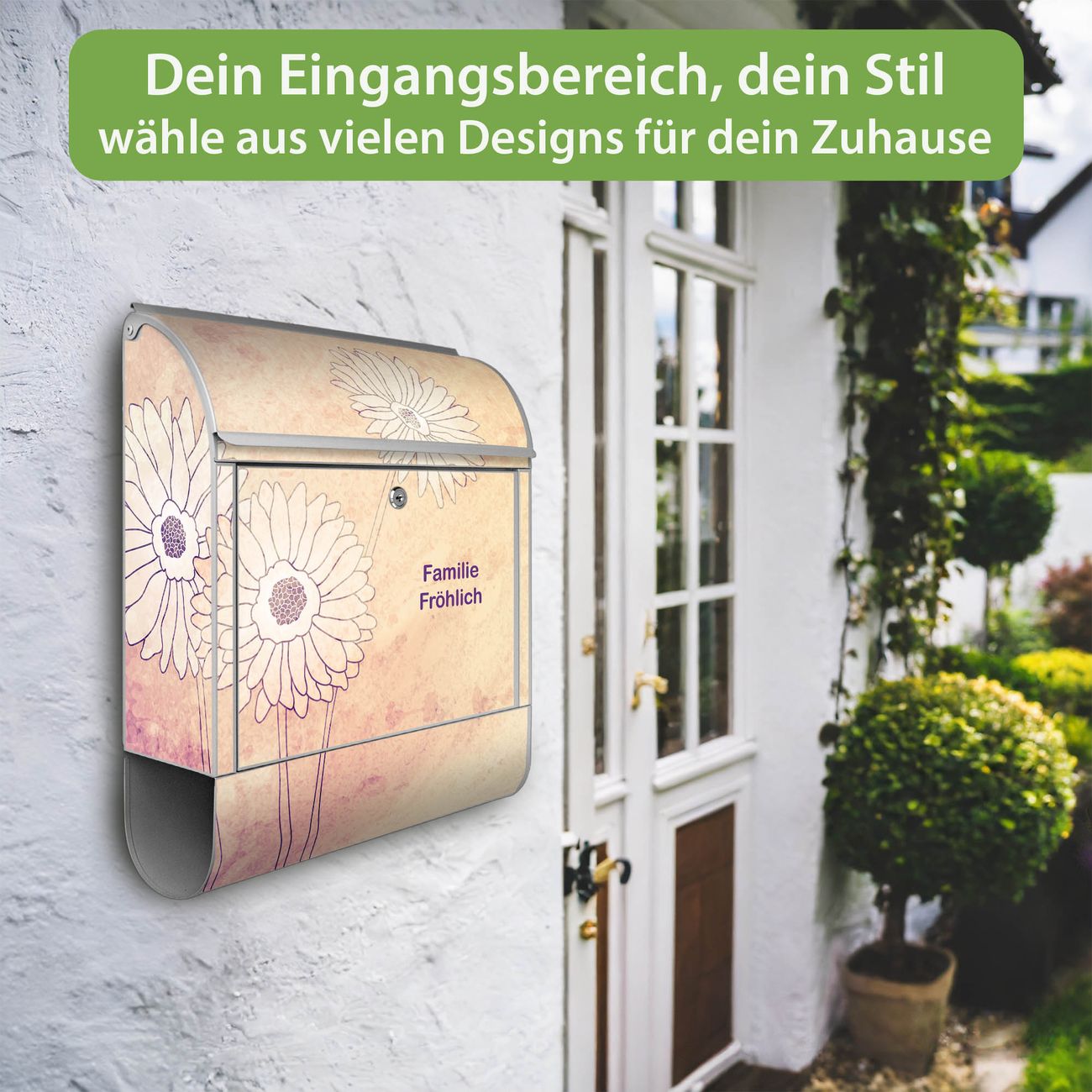Großer Stahl Briefkasten Motiv Gerbera