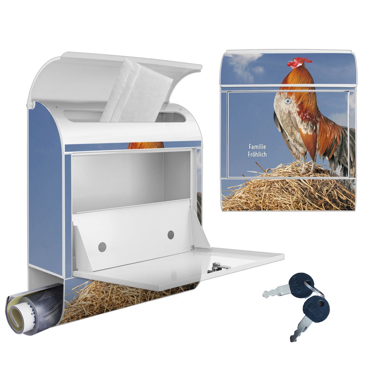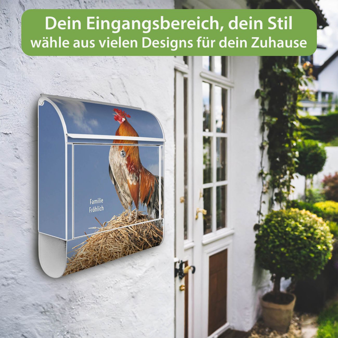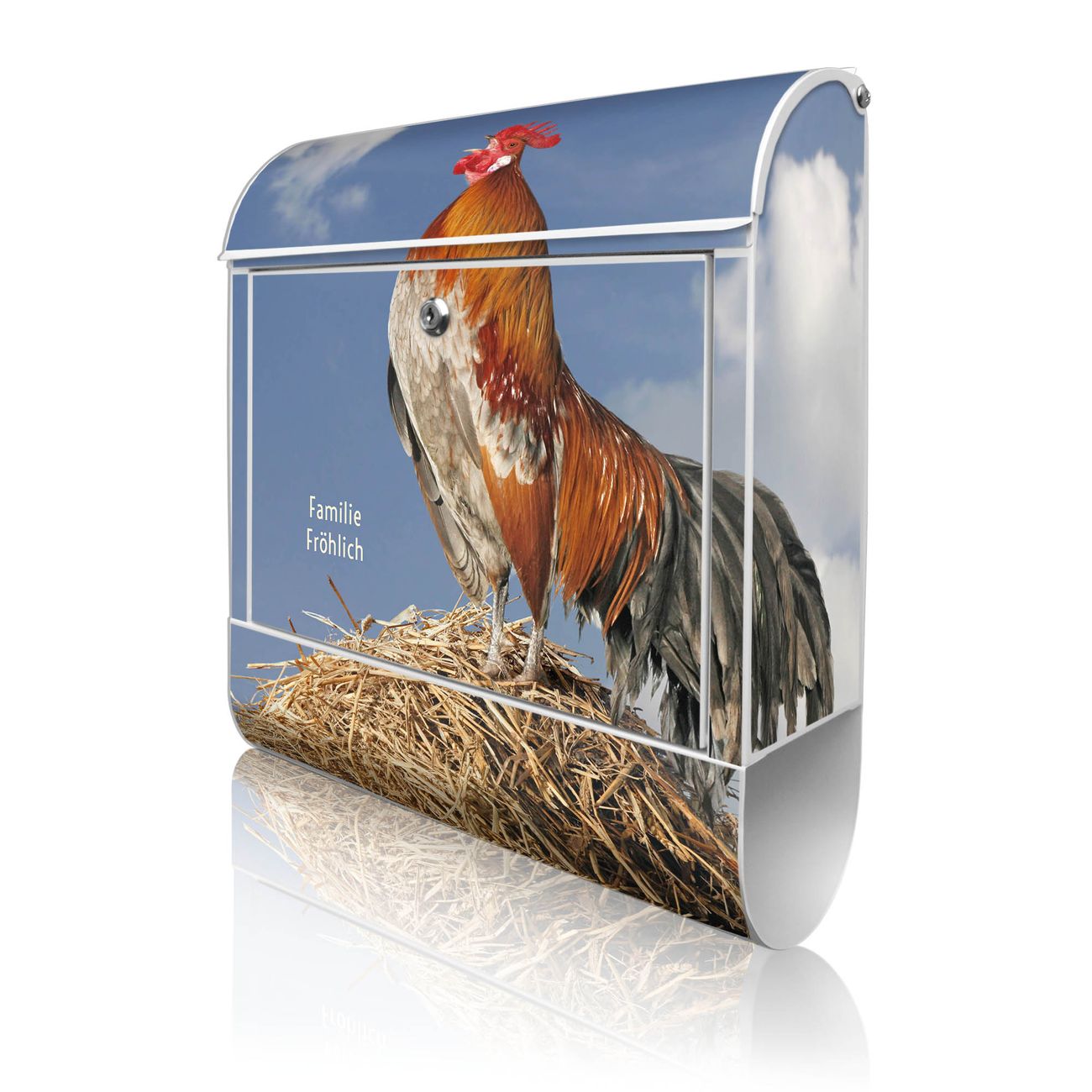 Großer Stahl Briefkasten Motiv Hahn