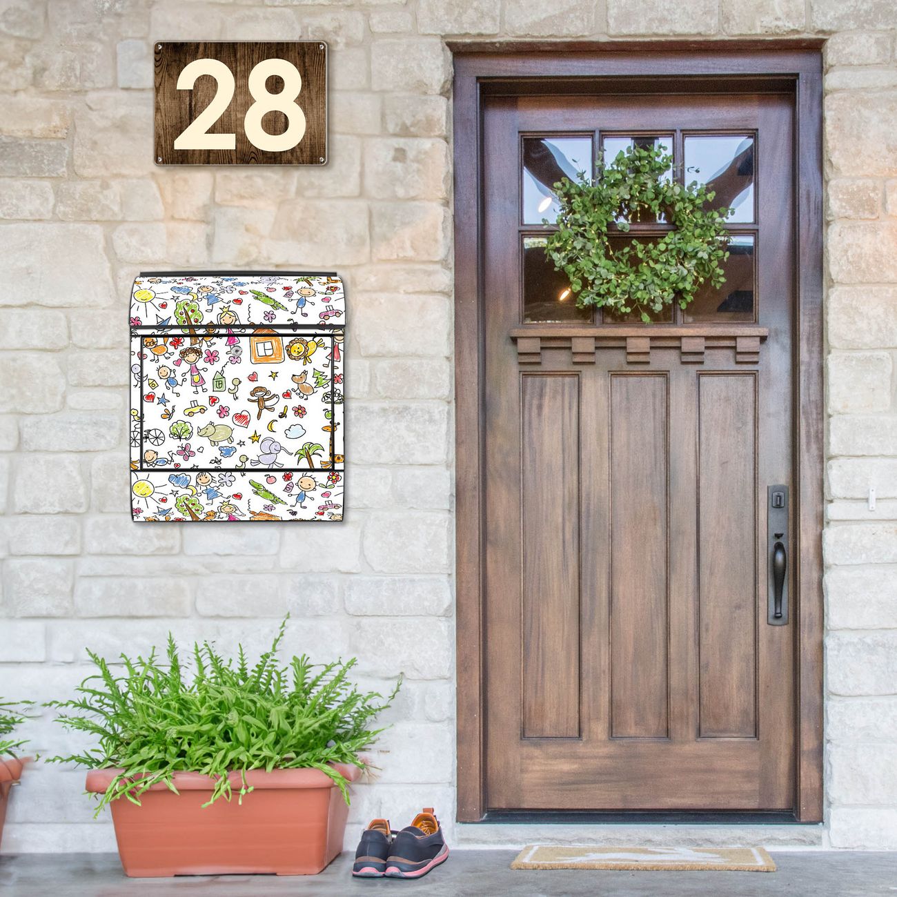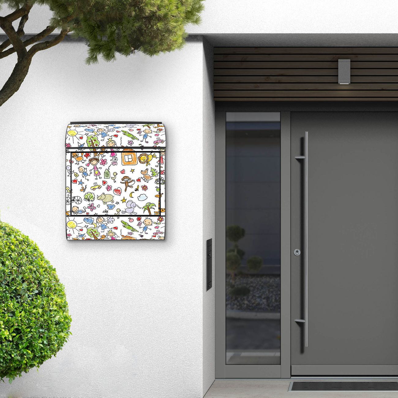 FUNKTION: Der banjado Briefkasten mit Motiv Herrliche Welt bietet Ihnen mit seinem Fassungsvermögen genügend Platz auch für große A4 Sendungen. Die integrierte Zeitungsrolle eignet sich hervorragend, um unkompliziert die Tageszeitung zu fassen. Sie finden bei banjado auch den passenden Ständer zum Briefkasten. DESIGN: Der Postkasten mit Motiv Herrliche Welt hat ein sehr ansprechendes und ausgefallenes Design, damit entlocken Sie Ihren Nachbarn und dem Postboten ein Lächeln. Heben Sie Sich von der tristen grauen Masse ab, ohne auf Funktionalität zu verzichten. DETAILS: Der Postkasten besteht aus pulverbeschichtetem Stahl. Er ist 38x47x13cm groß. Das Motiv besteht aus einer wetter- und UV-resistenten Folie, die mit einem Schutzlaminat überzogen ist, sodass der Briefkasten zusätzlich vor Kratzern geschützt ist. Der Briefkasten wird mit Montagematerial, zusätzlich zwei Schlüssel sowie einer Bohrschablone geliefert. NUTZEN: Sie können diesen Briefkasten sowohl als Wandbriefkasten montieren oder einen passenden Ständer kaufen und als Standbriefkasten einbetonieren. Die Größe bietet genügend Platz für Sendungen aller Art, der Einwurf fasst auch größere A4 Sendungen. BANJADO: Ihr Briefkasten wird in Sachsen in einer kleinen Manufaktur von Hand veredelt. Die Motivfolie ist lösungsmittelfrei und schutzlaminiert für einen langen Halt. Wir legen großen Wert auf die Verbindung von Funktionalität und Design. Sie erhalten Handarbeit aus Sachsen.