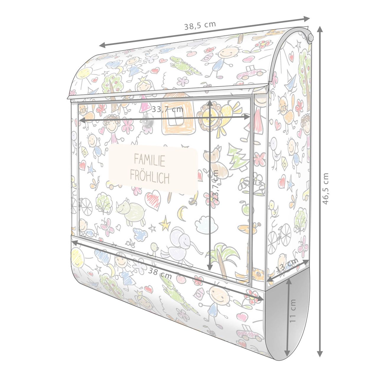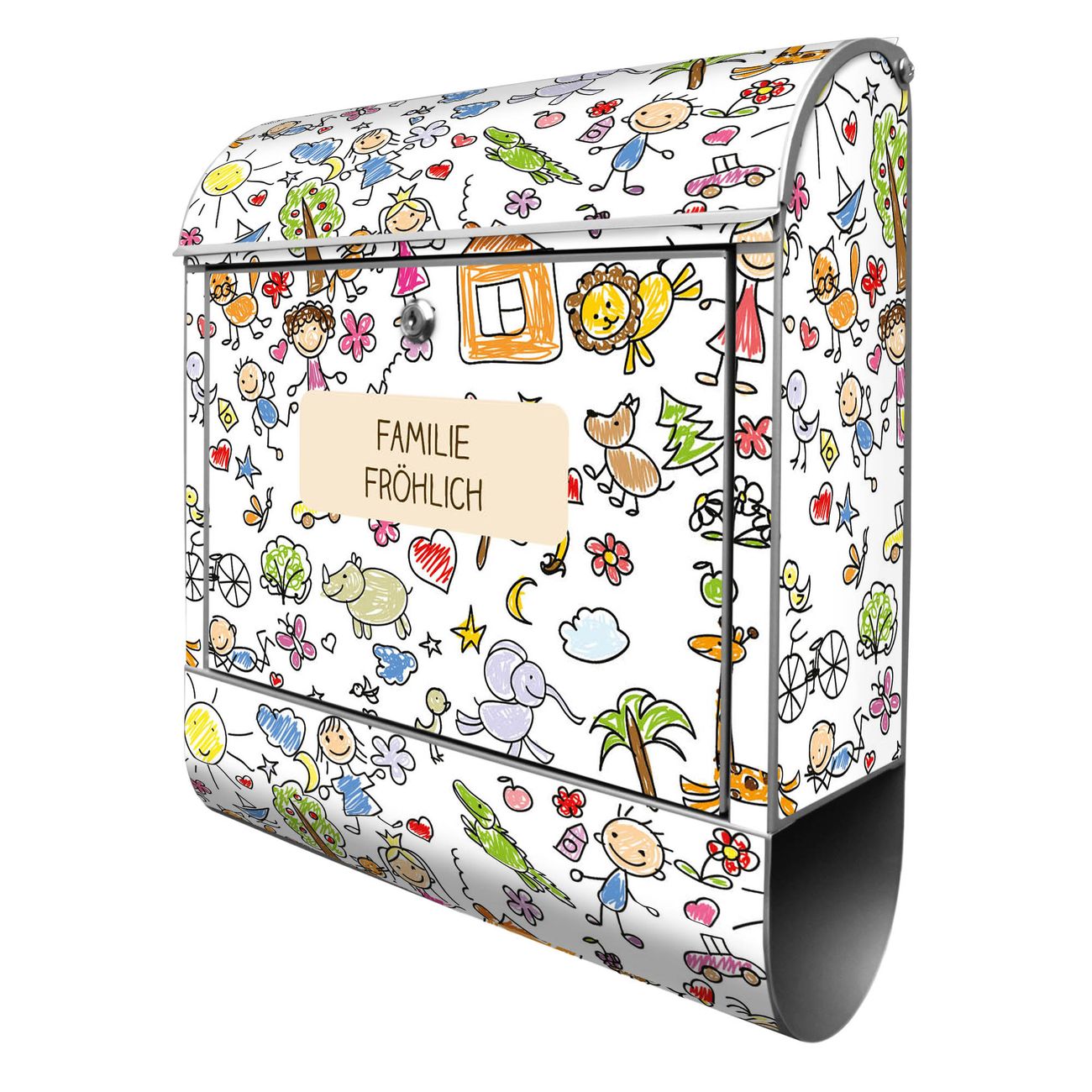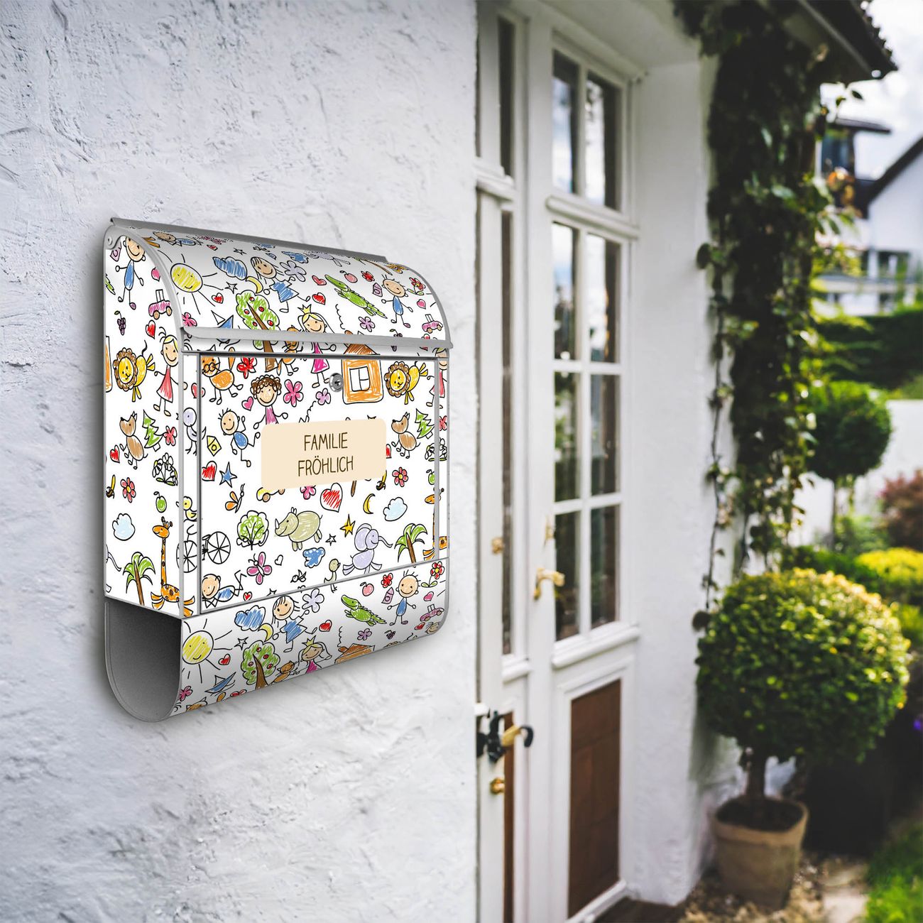 FUNKTION: Der banjado Briefkasten mit Motiv Herrliche Welt bietet Ihnen mit seinem Fassungsvermögen genügend Platz auch für große A4 Sendungen. Die integrierte Zeitungsrolle eignet sich hervorragend, um unkompliziert die Tageszeitung zu fassen. Sie finden bei banjado auch den passenden Ständer zum Briefkasten. DESIGN: Der Postkasten mit Motiv Herrliche Welt hat ein sehr ansprechendes und ausgefallenes Design, damit entlocken Sie Ihren Nachbarn und dem Postboten ein Lächeln. Heben Sie Sich von der tristen grauen Masse ab, ohne auf Funktionalität zu verzichten. DETAILS: Der Postkasten besteht aus pulverbeschichtetem Stahl. Er ist 38x47x13cm groß. Das Motiv besteht aus einer wetter- und UV-resistenten Folie, die mit einem Schutzlaminat überzogen ist, sodass der Briefkasten zusätzlich vor Kratzern geschützt ist. Der Briefkasten wird mit Montagematerial, zusätzlich zwei Schlüssel sowie einer Bohrschablone geliefert. NUTZEN: Sie können diesen Briefkasten sowohl als Wandbriefkasten montieren oder einen passenden Ständer kaufen und als Standbriefkasten einbetonieren. Die Größe bietet genügend Platz für Sendungen aller Art, der Einwurf fasst auch größere A4 Sendungen. BANJADO: Ihr Briefkasten wird in Sachsen in einer kleinen Manufaktur von Hand veredelt. Die Motivfolie ist lösungsmittelfrei und schutzlaminiert für einen langen Halt. Wir legen großen Wert auf die Verbindung von Funktionalität und Design. Sie erhalten Handarbeit aus Sachsen.