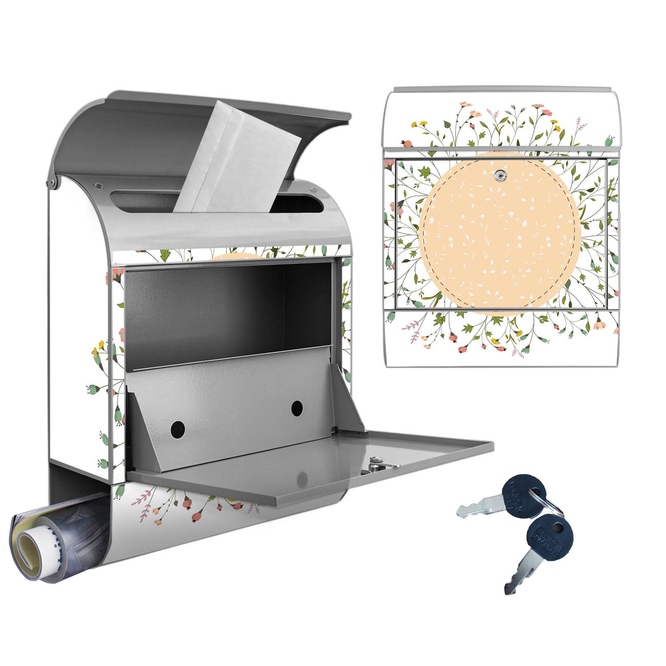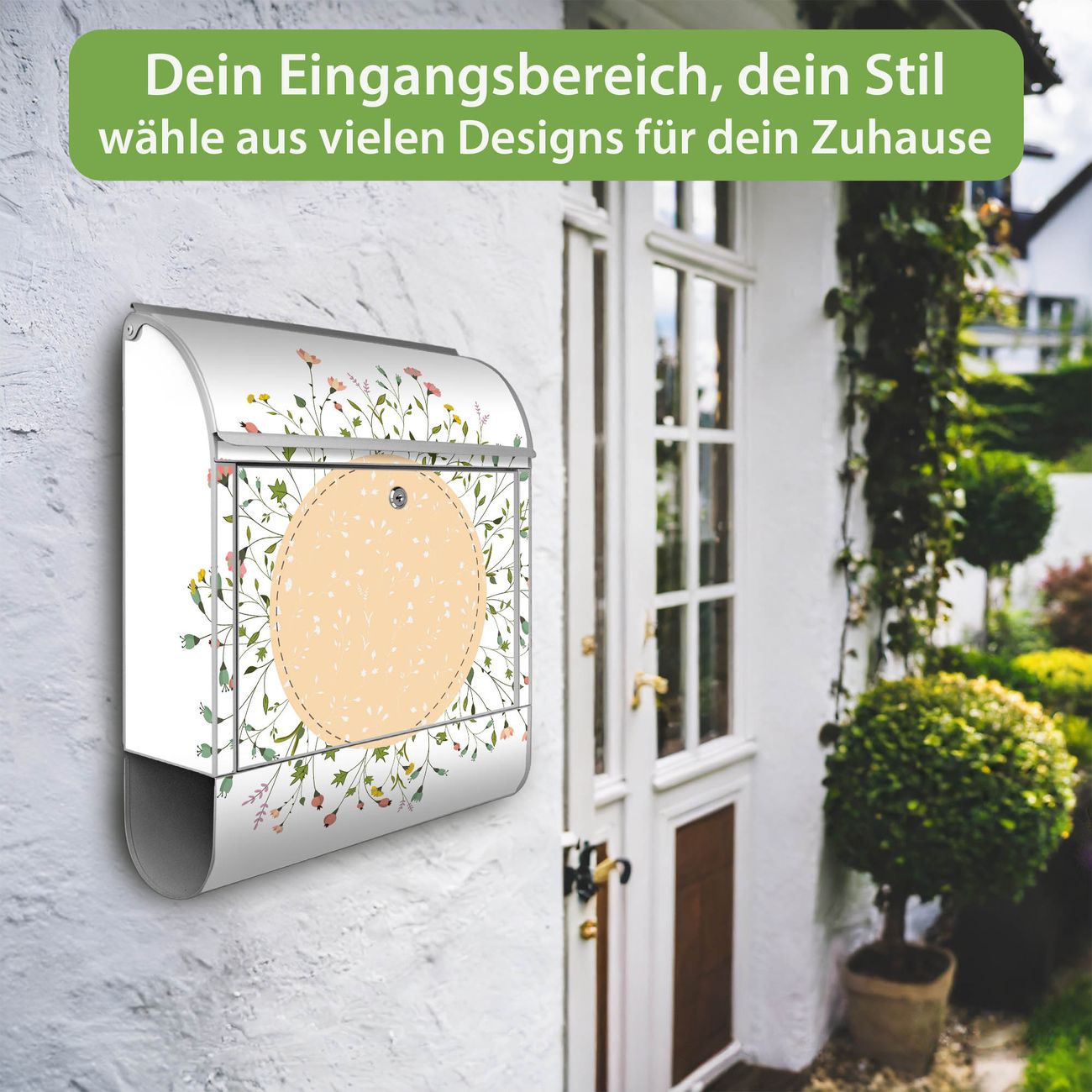Großer Stahl Briefkasten Motiv Hibiskus Kreis