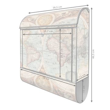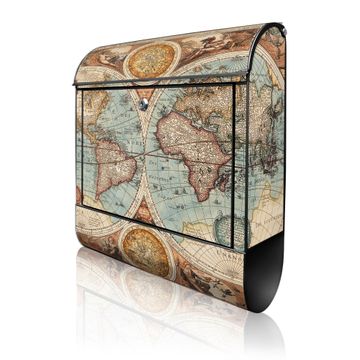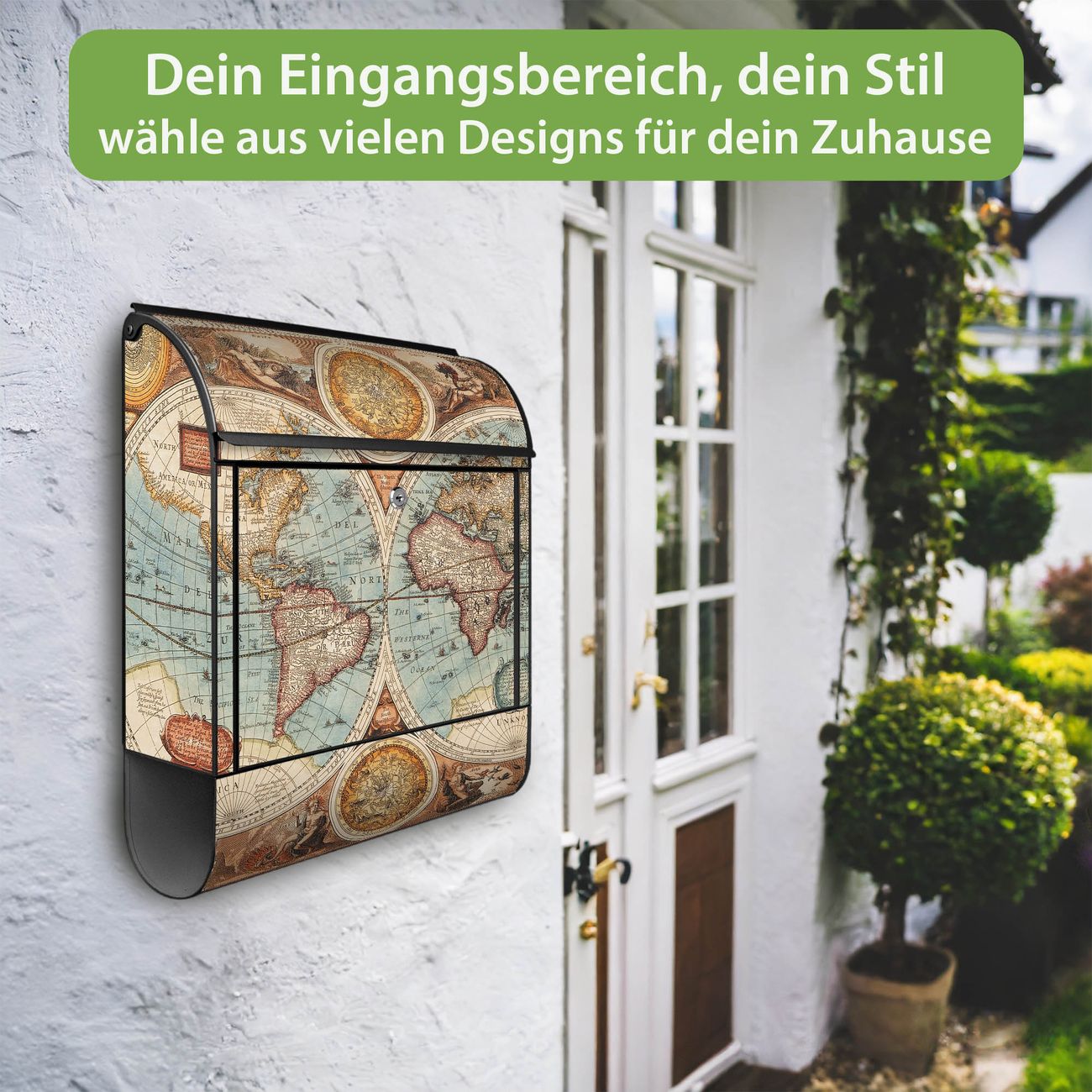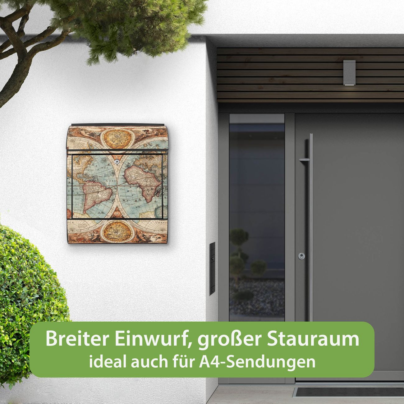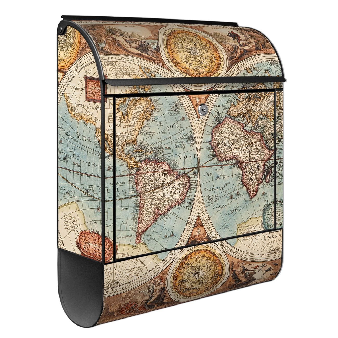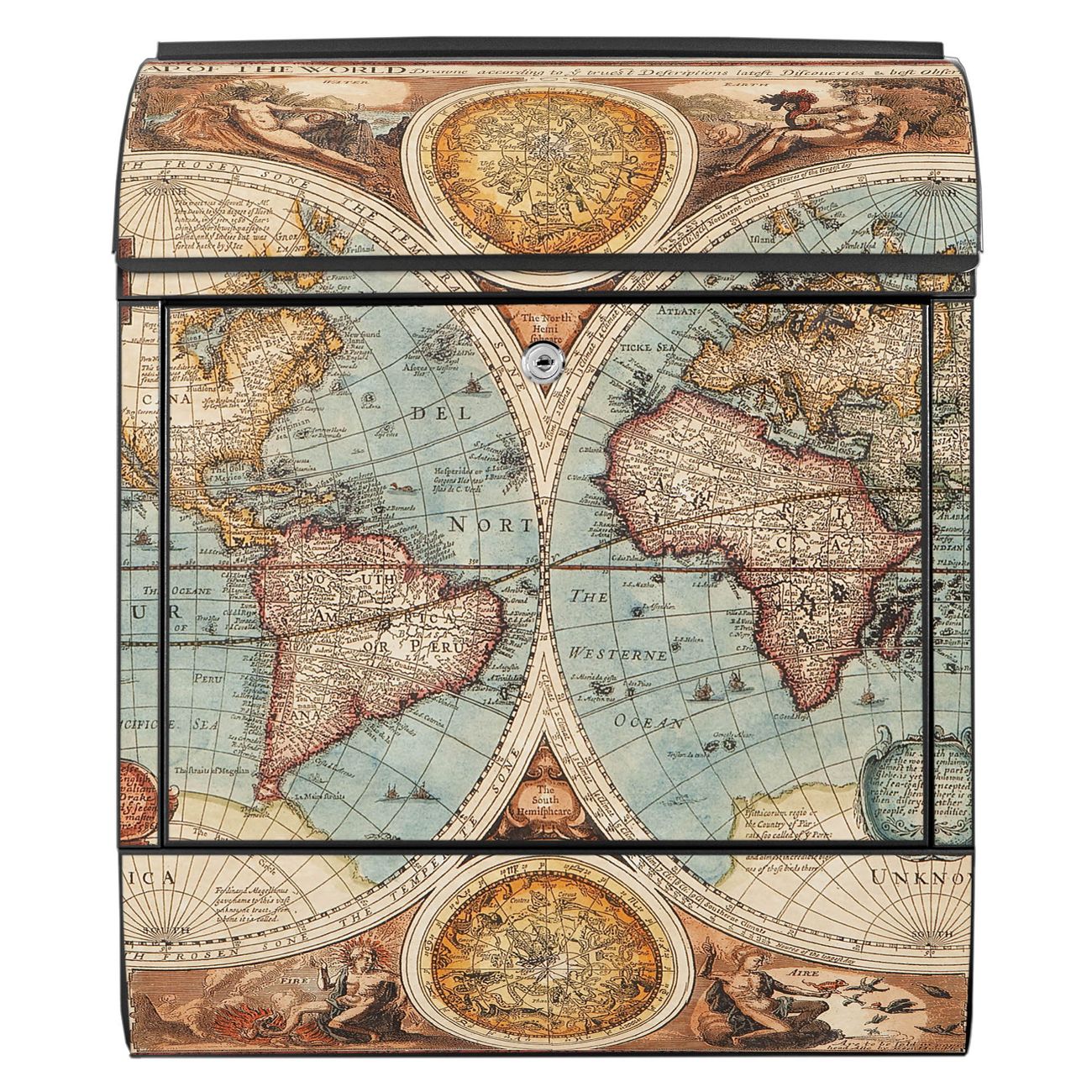 Großer Stahl Briefkasten Motiv Historische Weltkarte