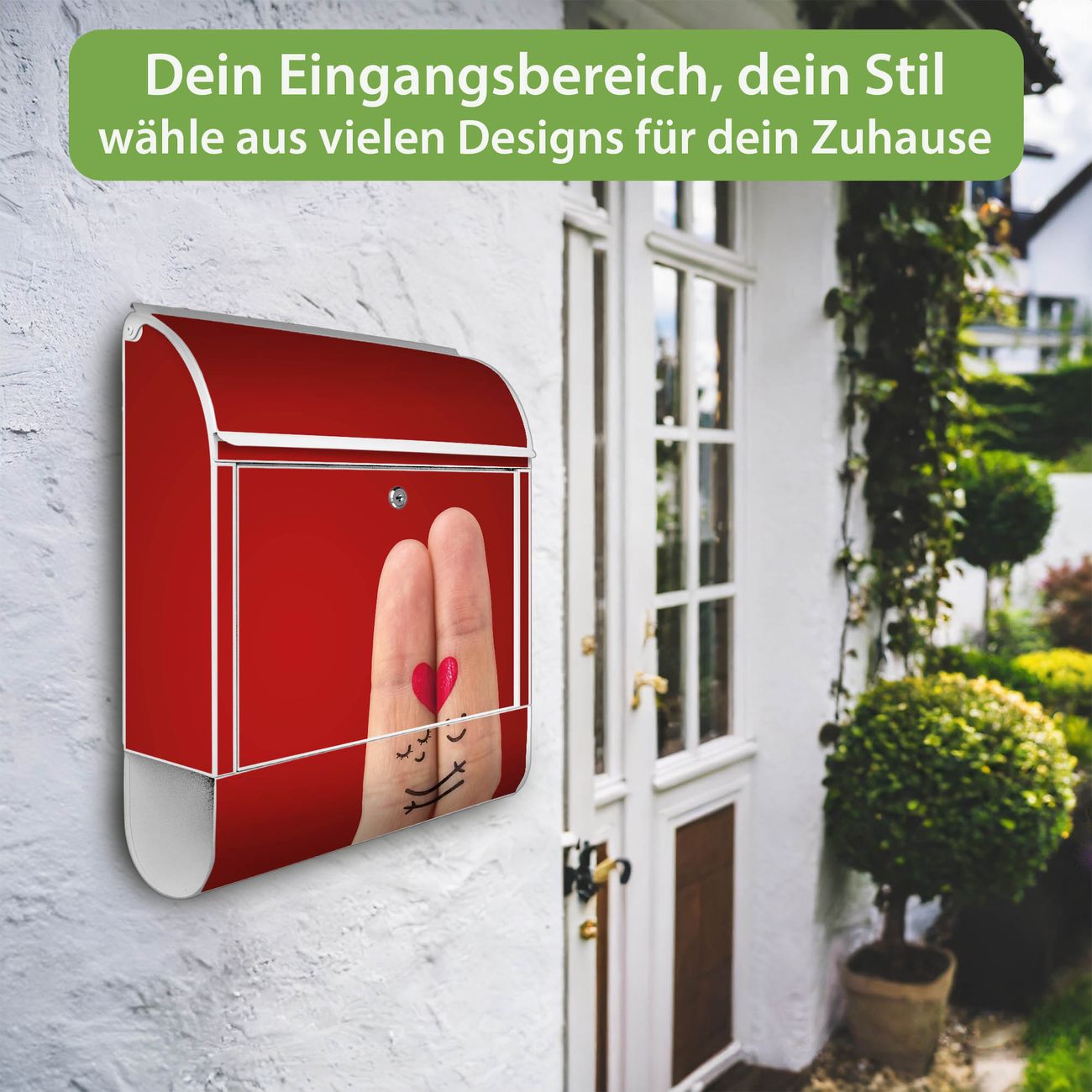DESIGN: Der Postkasten mit Motiv Motiv Hold Me Tight hat ein sehr ansprechendes und ausgefallenes Design, damit entlocken Sie Ihren Nachbarn und dem Postboten ein Lächeln. Heben Sie Sich von der tristen grauen Masse ab, ohne auf Funktionalität zu verzichten. DETAILS: Der Postkasten besteht aus pulverbeschichtetem Stahl. Er ist 38x46x12,5cm groß. Das Motiv besteht aus einer wetter- und UV-resistenten Folie, die mit einem Schutzlaminat überzogen ist, sodass der Briefkasten zusätzlich vor Kratzern geschützt ist. Der Briefkasten wird mit Montagematerial, zusätzlich zwei Schlüssel sowie einer Bohrschablone geliefert. NUTZEN: Sie können diesen Briefkasten sowohl als Wandbriefkasten montieren oder einen passenden Ständer kaufen und als Standbriefkasten einbetonieren. Die Größe bietet genügend Platz für Sendungen aller Art, der Einwurf fasst auch größere A4 Sendungen. BANJADO: Ihr Briefkasten wird in Sachsen in einer kleinen Manufaktur von Hand veredelt. Die Motivfolie ist lösungsmittelfrei und schutzlaminiert für einen langen Halt. Wir legen großen Wert auf die Verbindung von Funktionalität und Design. Sie erhalten Handarbeit aus Sachsen.