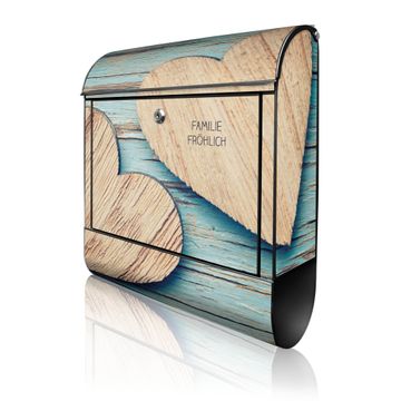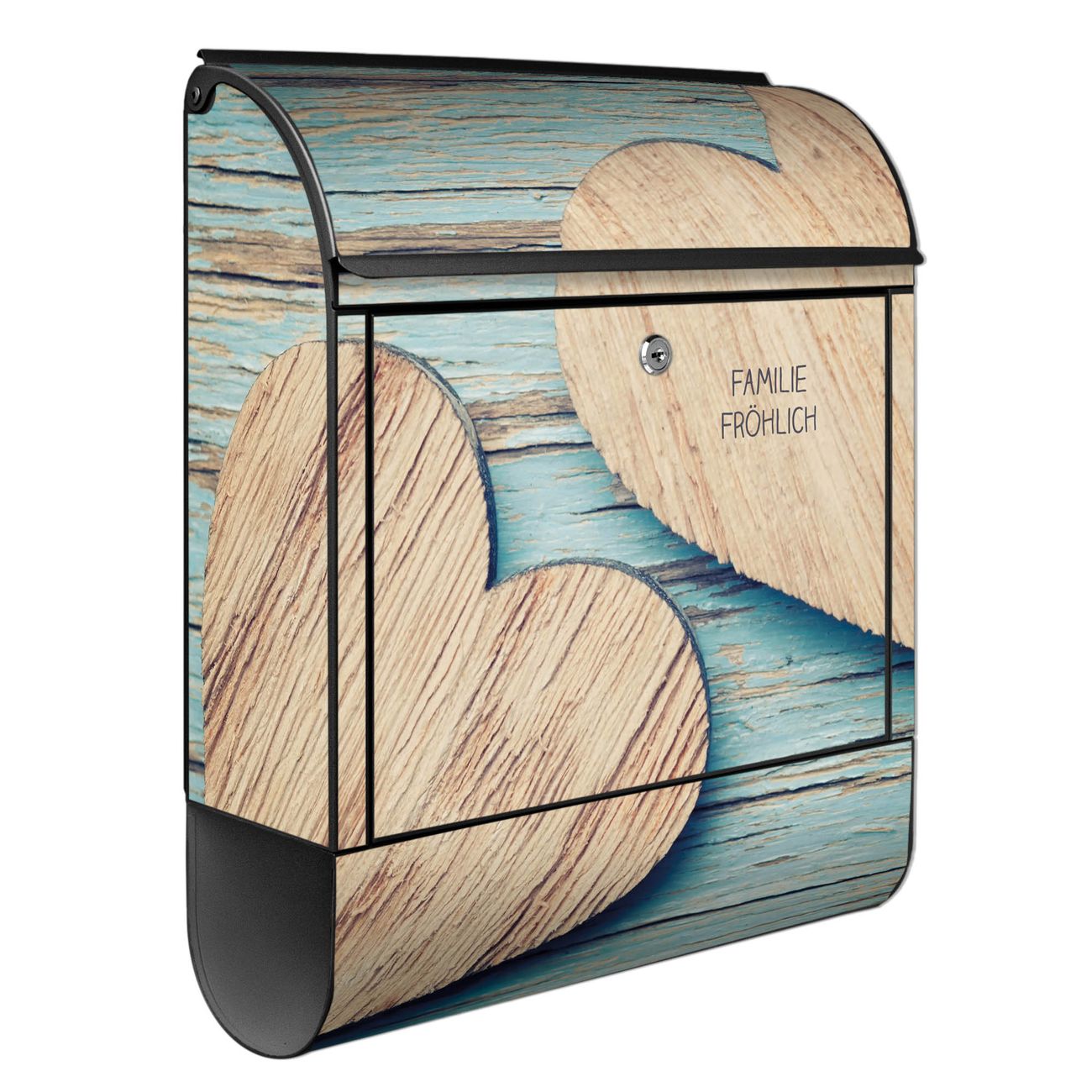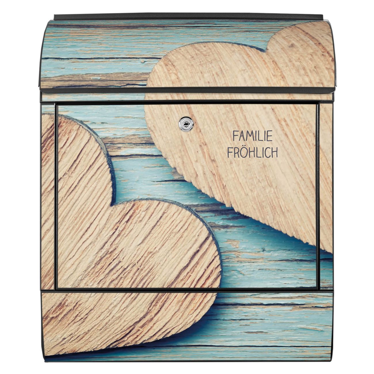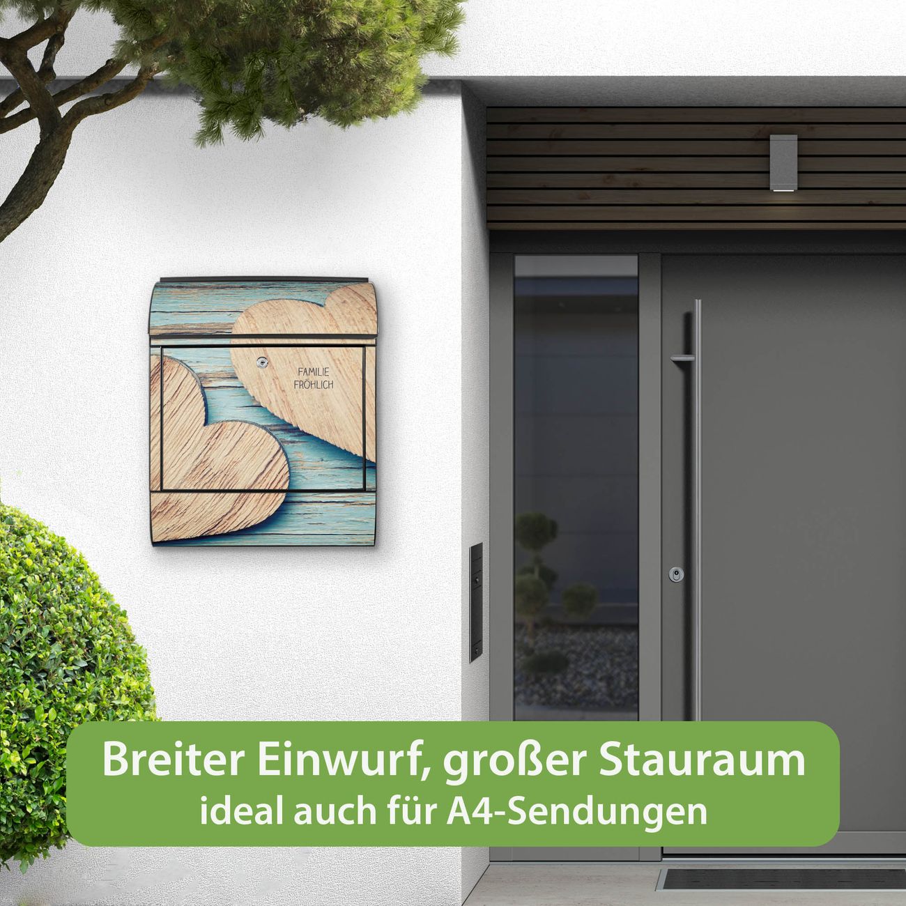 Großer Stahl Briefkasten Motiv Holz Herzen