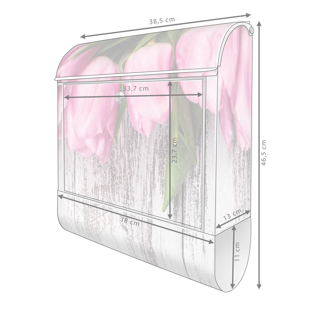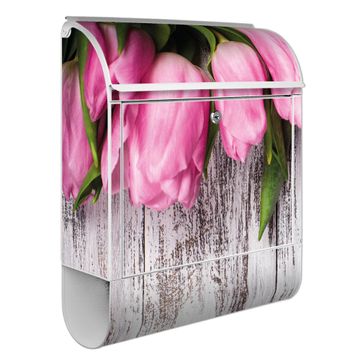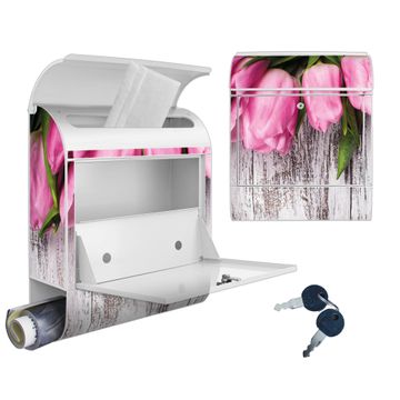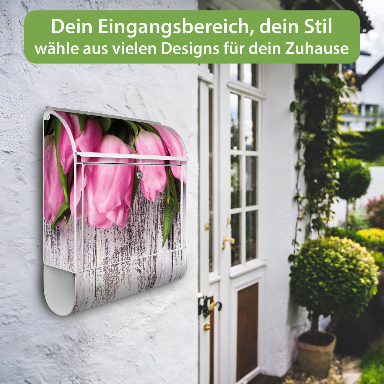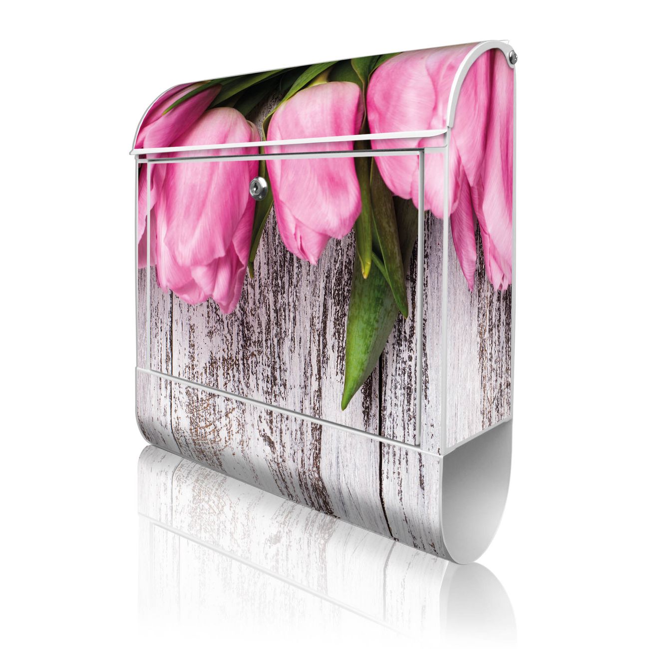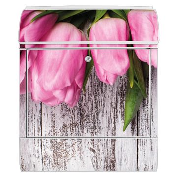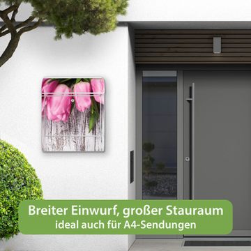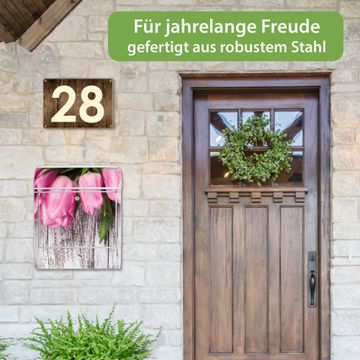 Großer Stahl Briefkasten Motiv Holz und Tulpen