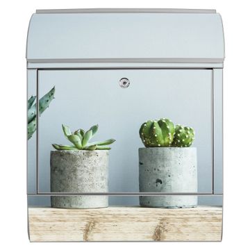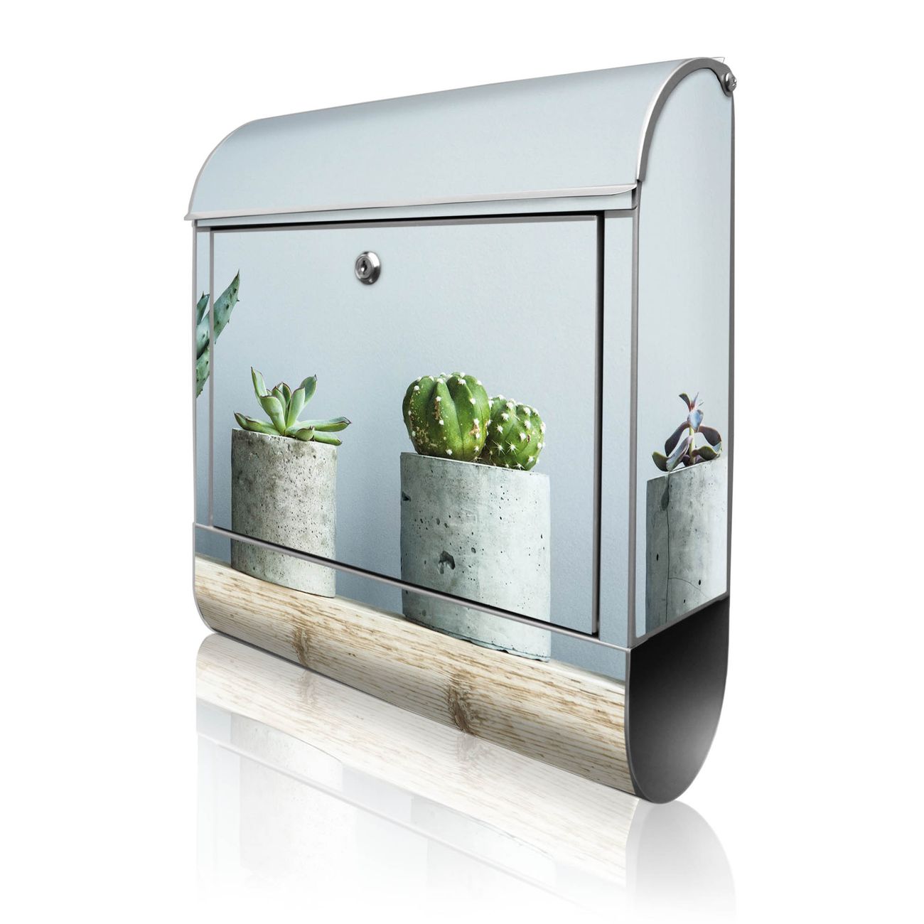 Großer Stahl Briefkasten Motiv Kakteen in Beton