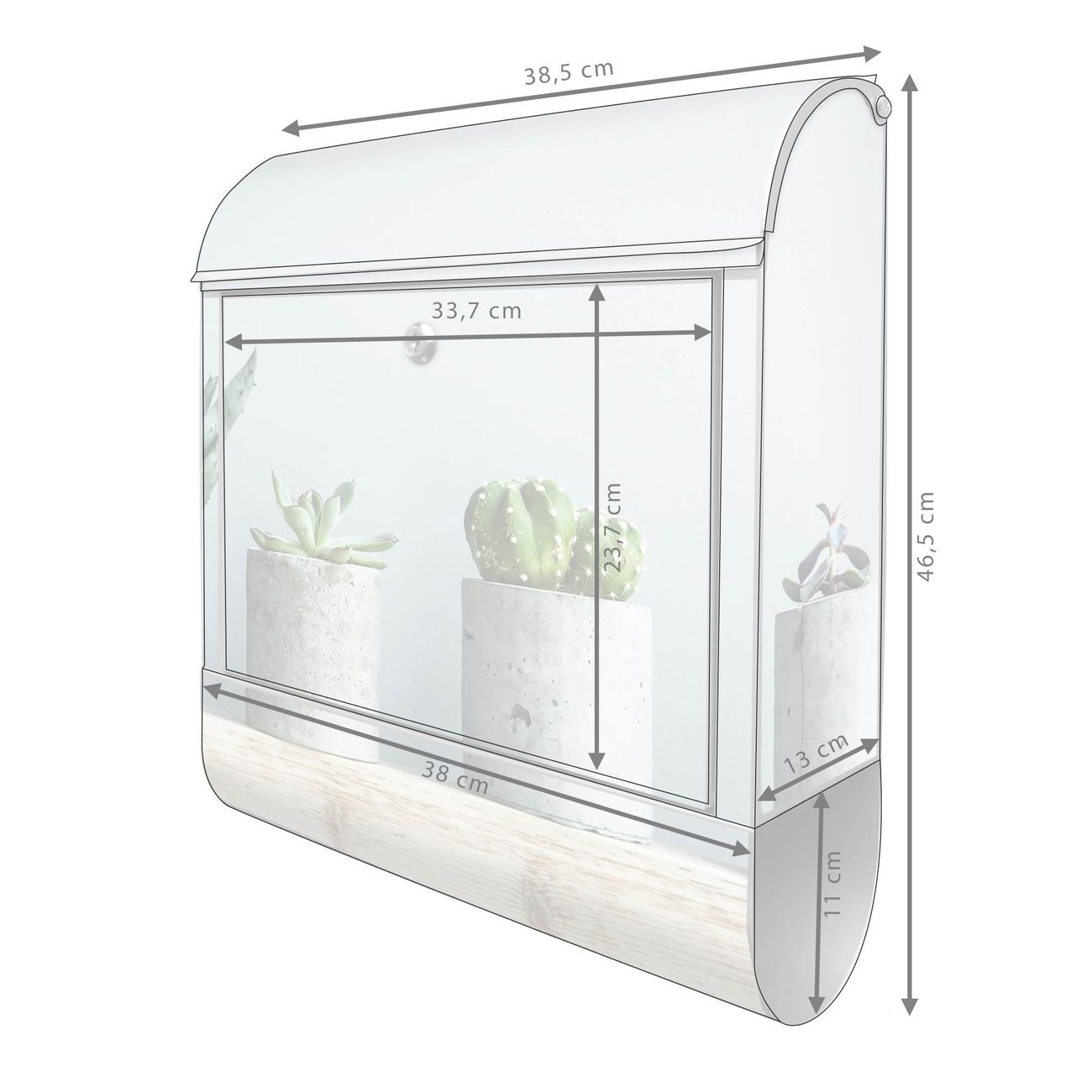 DESIGN: Der Postkasten mit Motiv Motiv Kakteen in Beton hat ein sehr ansprechendes und ausgefallenes Design, damit entlocken Sie Ihren Nachbarn und dem Postboten ein Lächeln. Heben Sie Sich von der tristen grauen Masse ab, ohne auf Funktionalität zu verzichten. DETAILS: Der Postkasten besteht aus pulverbeschichtetem Stahl. Er ist 38x46x12,5cm groß. Das Motiv besteht aus einer wetter- und UV-resistenten Folie, die mit einem Schutzlaminat überzogen ist, sodass der Briefkasten zusätzlich vor Kratzern geschützt ist. Der Briefkasten wird mit Montagematerial, zusätzlich zwei Schlüssel sowie einer Bohrschablone geliefert. NUTZEN: Sie können diesen Briefkasten sowohl als Wandbriefkasten montieren oder einen passenden Ständer kaufen und als Standbriefkasten einbetonieren. Die Größe bietet genügend Platz für Sendungen aller Art, der Einwurf fasst auch größere A4 Sendungen. BANJADO: Ihr Briefkasten wird in Sachsen in einer kleinen Manufaktur von Hand veredelt. Die Motivfolie ist lösungsmittelfrei und schutzlaminiert für einen langen Halt. Wir legen großen Wert auf die Verbindung von Funktionalität und Design. Sie erhalten Handarbeit aus Sachsen.