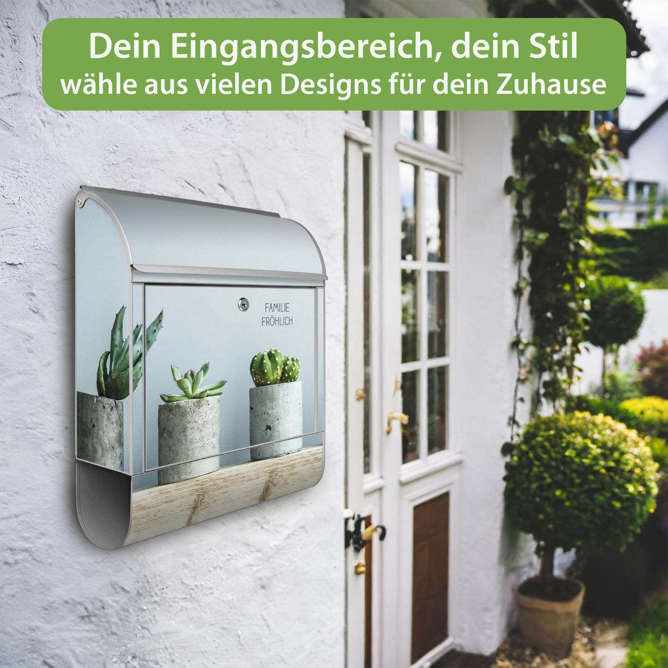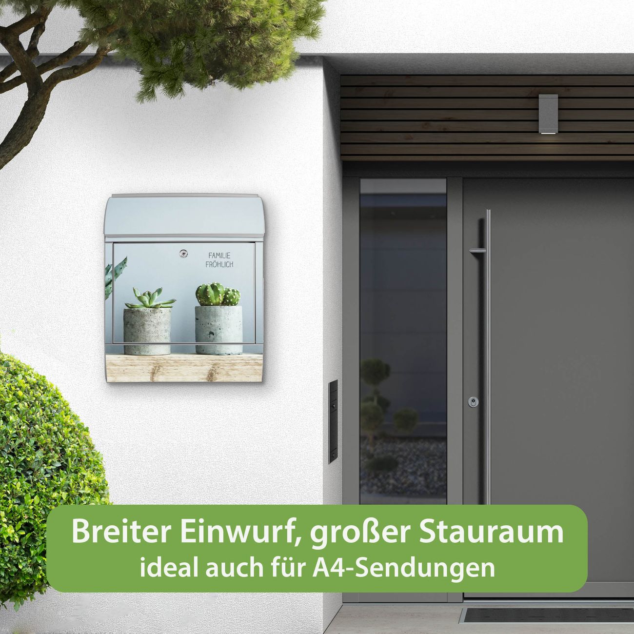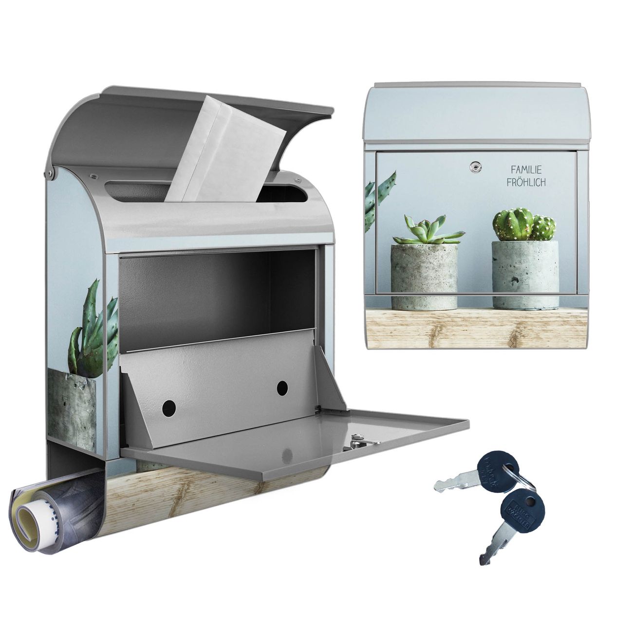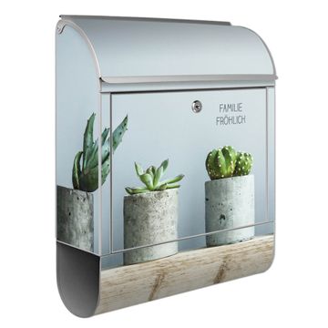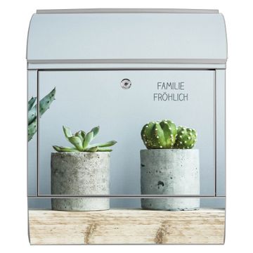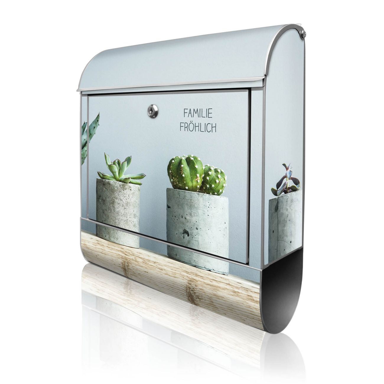 Großer Stahl Briefkasten Motiv Kakteen in Beton