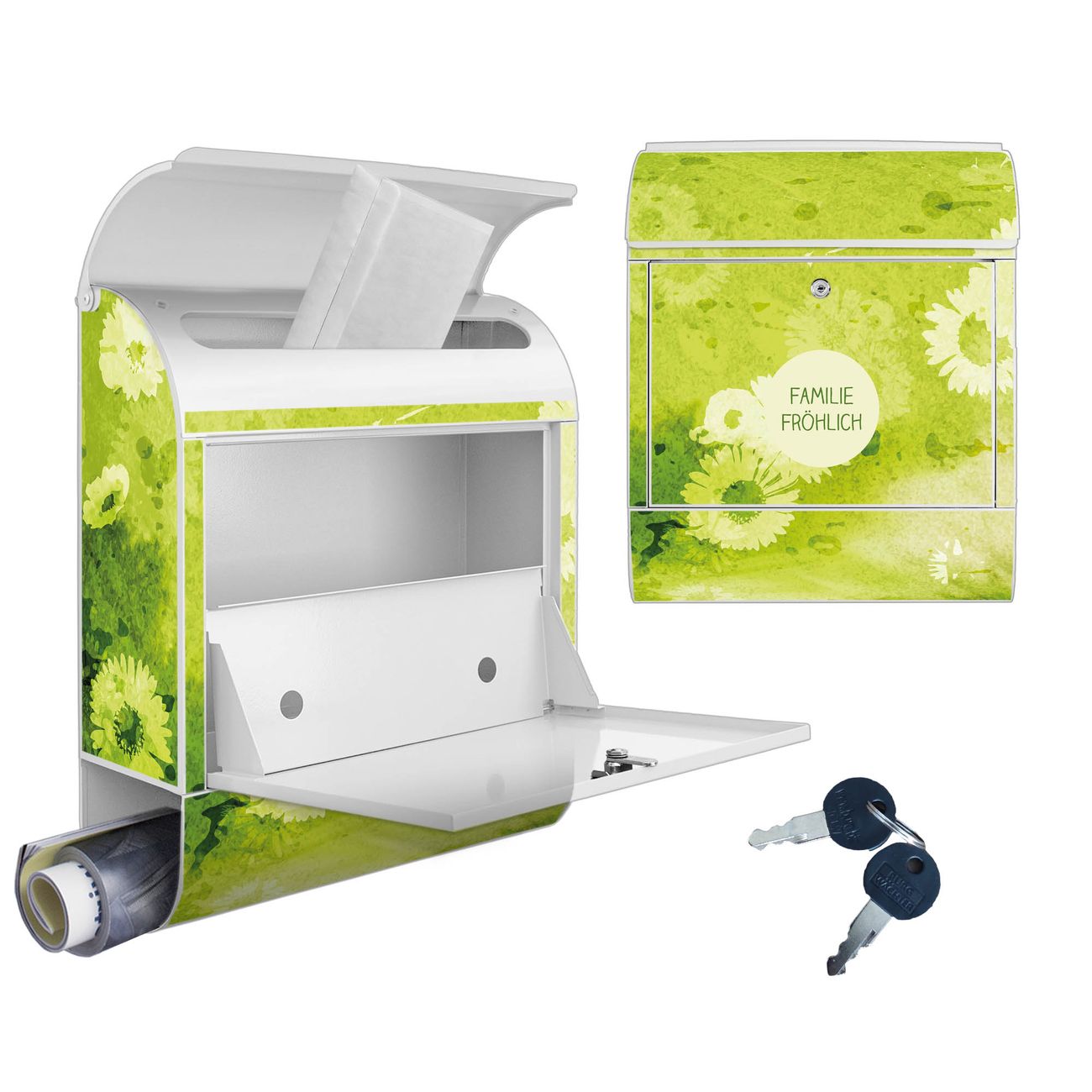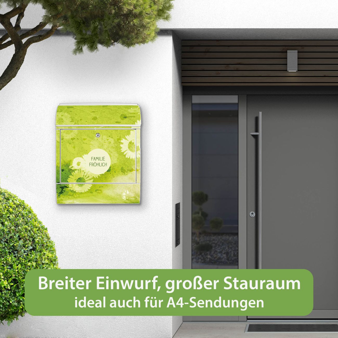 Großer Stahl Briefkasten Motiv Kamille Grün