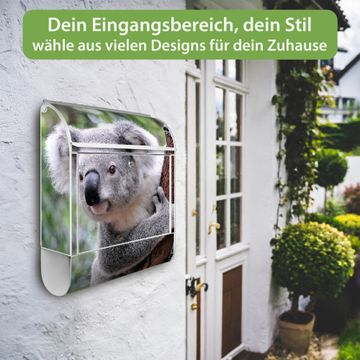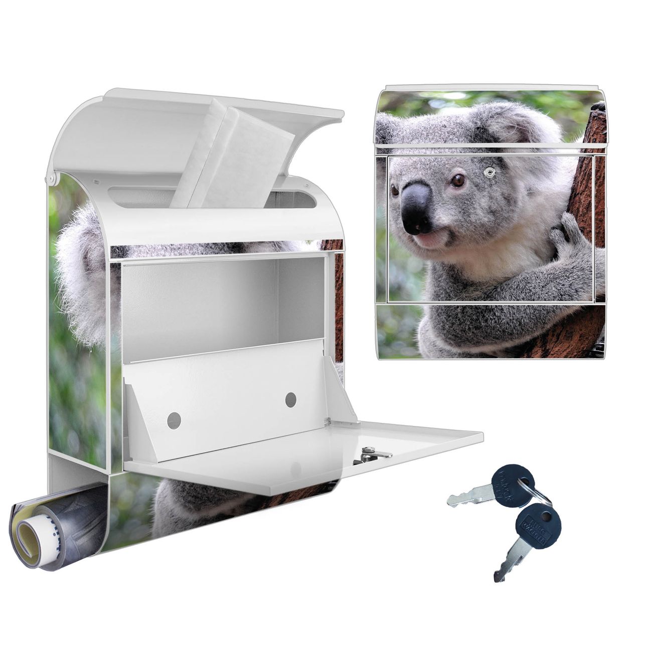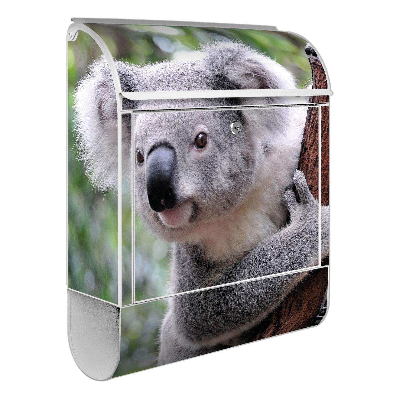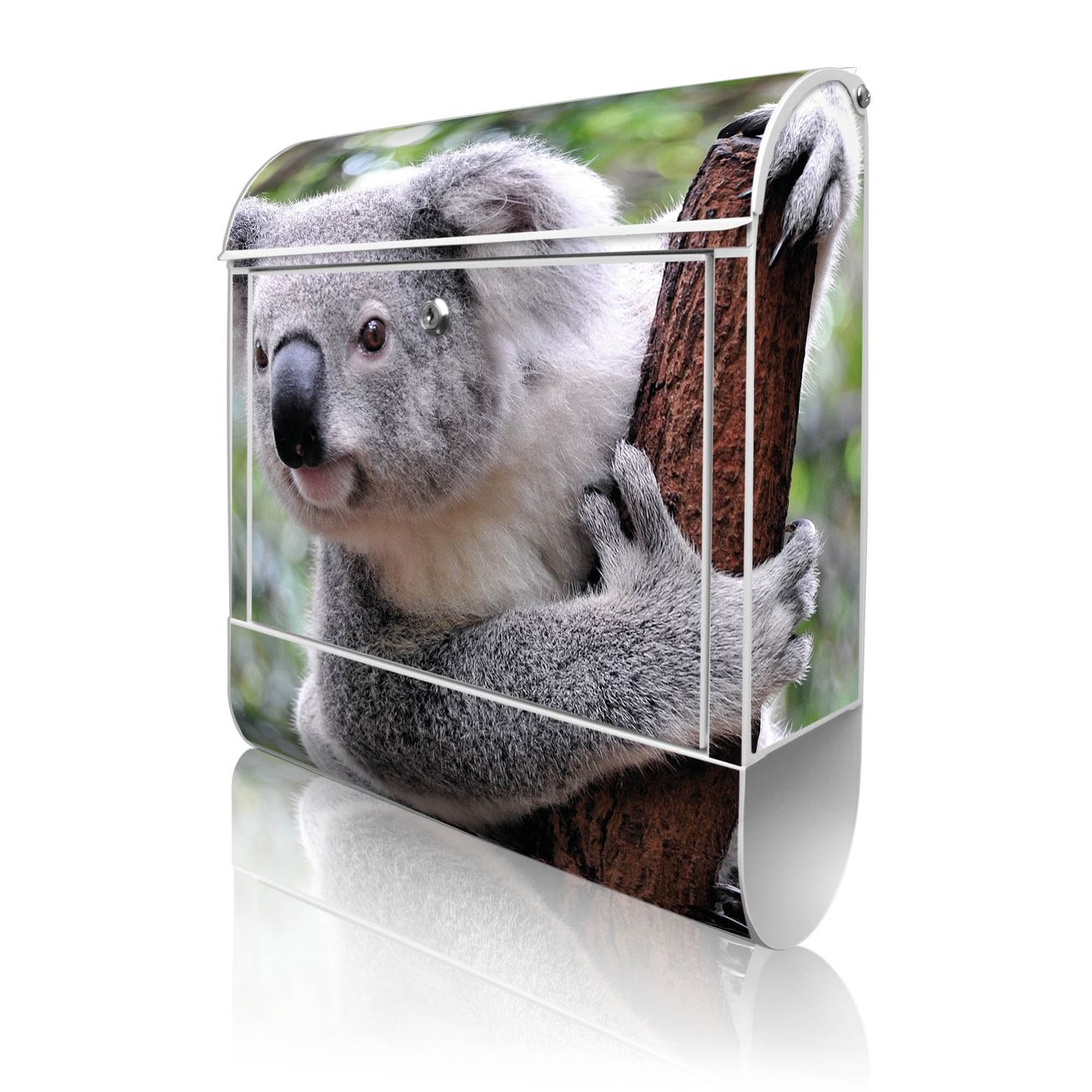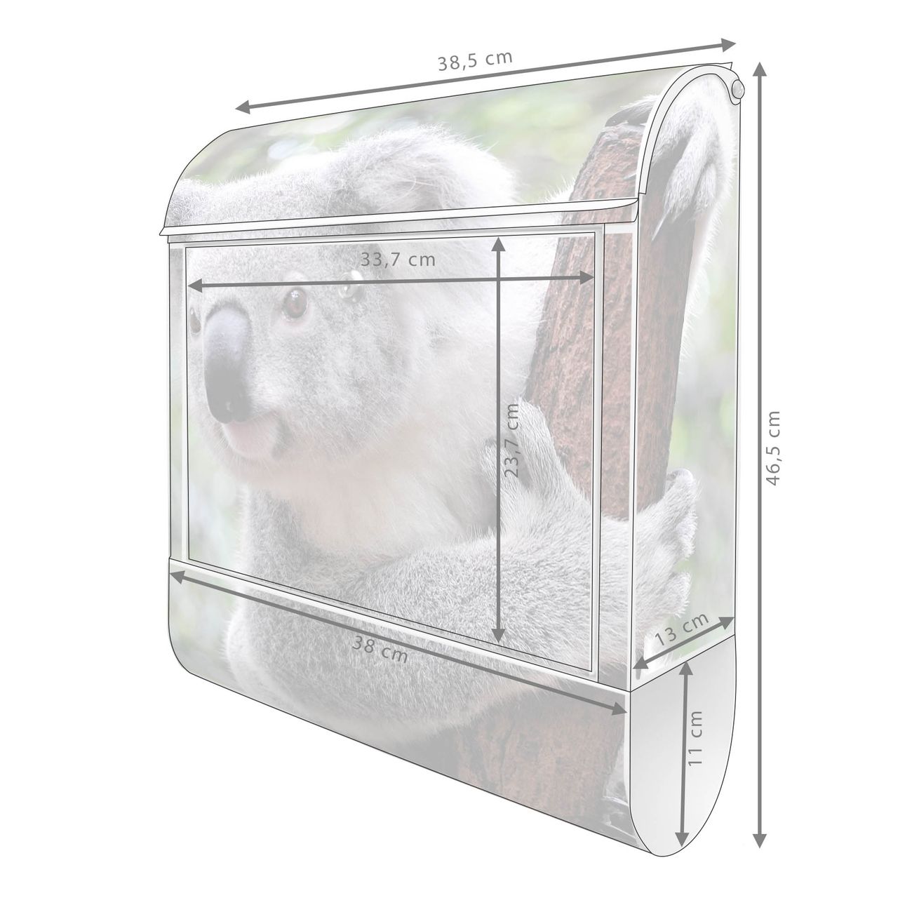 DESIGN: Der Postkasten mit Motiv Motiv Koala hat ein sehr ansprechendes und ausgefallenes Design, damit entlocken Sie Ihren Nachbarn und dem Postboten ein Lächeln. Heben Sie Sich von der tristen grauen Masse ab, ohne auf Funktionalität zu verzichten. DETAILS: Der Postkasten besteht aus pulverbeschichtetem Stahl. Er ist 38x46x12,5cm groß. Das Motiv besteht aus einer wetter- und UV-resistenten Folie, die mit einem Schutzlaminat überzogen ist, sodass der Briefkasten zusätzlich vor Kratzern geschützt ist. Der Briefkasten wird mit Montagematerial, zusätzlich zwei Schlüssel sowie einer Bohrschablone geliefert. NUTZEN: Sie können diesen Briefkasten sowohl als Wandbriefkasten montieren oder einen passenden Ständer kaufen und als Standbriefkasten einbetonieren. Die Größe bietet genügend Platz für Sendungen aller Art, der Einwurf fasst auch größere A4 Sendungen. BANJADO: Ihr Briefkasten wird in Sachsen in einer kleinen Manufaktur von Hand veredelt. Die Motivfolie ist lösungsmittelfrei und schutzlaminiert für einen langen Halt. Wir legen großen Wert auf die Verbindung von Funktionalität und Design. Sie erhalten Handarbeit aus Sachsen.