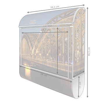 DESIGN: Der Postkasten mit Motiv Motiv Köln hat ein sehr ansprechendes und ausgefallenes Design, damit entlocken Sie Ihren Nachbarn und dem Postboten ein Lächeln. Heben Sie Sich von der tristen grauen Masse ab, ohne auf Funktionalität zu verzichten. DETAILS: Der Postkasten besteht aus pulverbeschichtetem Stahl. Er ist 38x46x12,5cm groß. Das Motiv besteht aus einer wetter- und UV-resistenten Folie, die mit einem Schutzlaminat überzogen ist, sodass der Briefkasten zusätzlich vor Kratzern geschützt ist. Der Briefkasten wird mit Montagematerial, zusätzlich zwei Schlüssel sowie einer Bohrschablone geliefert. NUTZEN: Sie können diesen Briefkasten sowohl als Wandbriefkasten montieren oder einen passenden Ständer kaufen und als Standbriefkasten einbetonieren. Die Größe bietet genügend Platz für Sendungen aller Art, der Einwurf fasst auch größere A4 Sendungen. BANJADO: Ihr Briefkasten wird in Sachsen in einer kleinen Manufaktur von Hand veredelt. Die Motivfolie ist lösungsmittelfrei und schutzlaminiert für einen langen Halt. Wir legen großen Wert auf die Verbindung von Funktionalität und Design. Sie erhalten Handarbeit aus Sachsen.