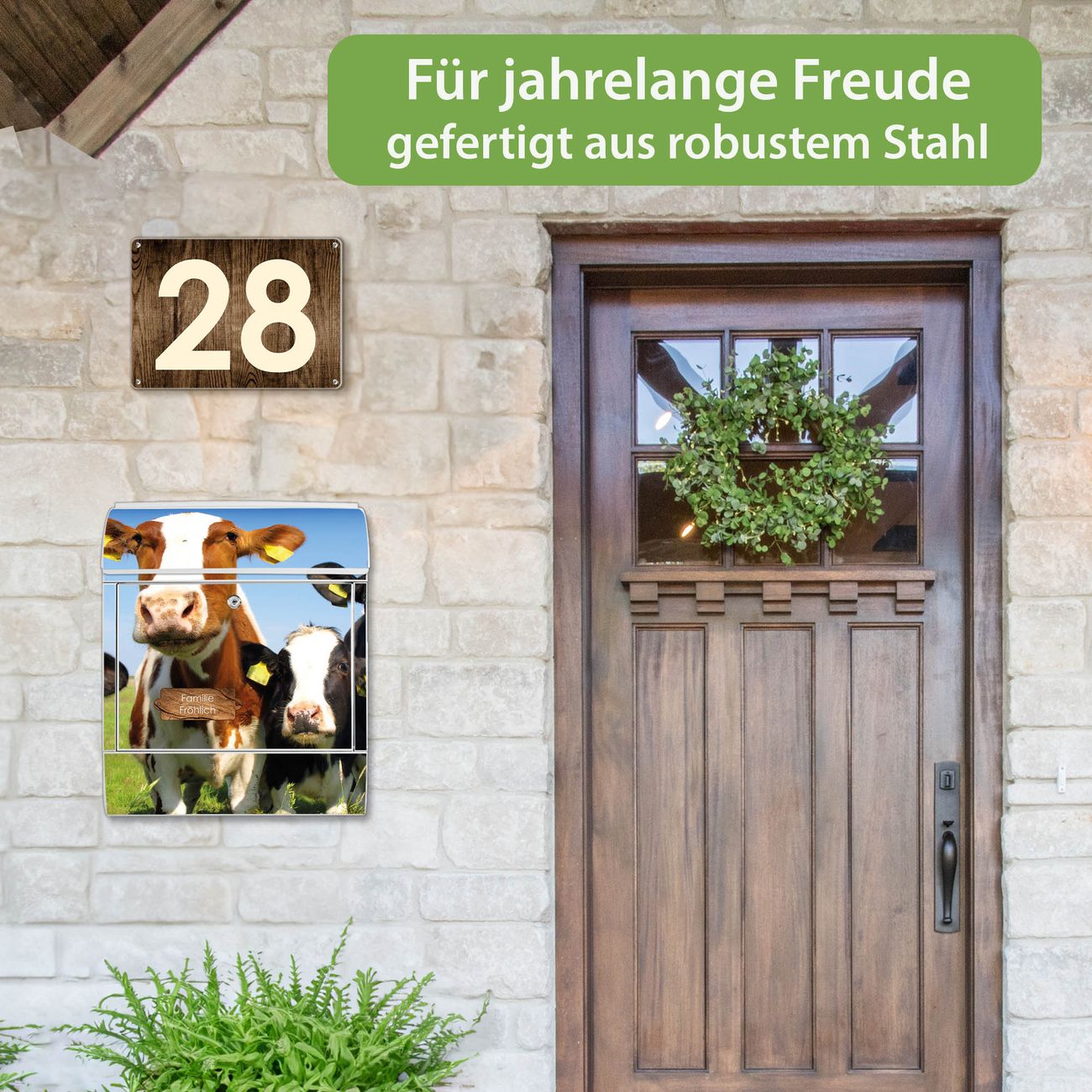 Großer Stahl Briefkasten Motiv Kühe