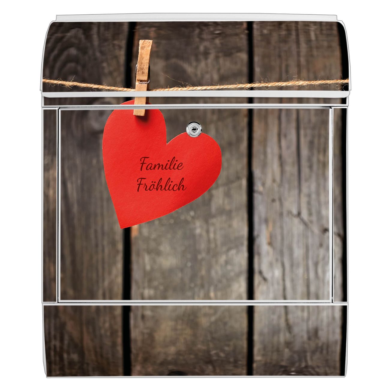 Der Vorschau-Text Familie Fröhlich wird durch Ihren persönlichen Wunschtext ersetzt. Die Schriftart und Farbe bleiben gleich wie in der Vorschau.
