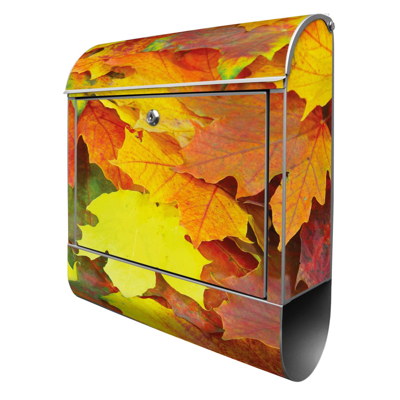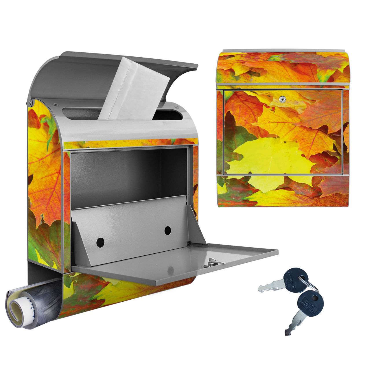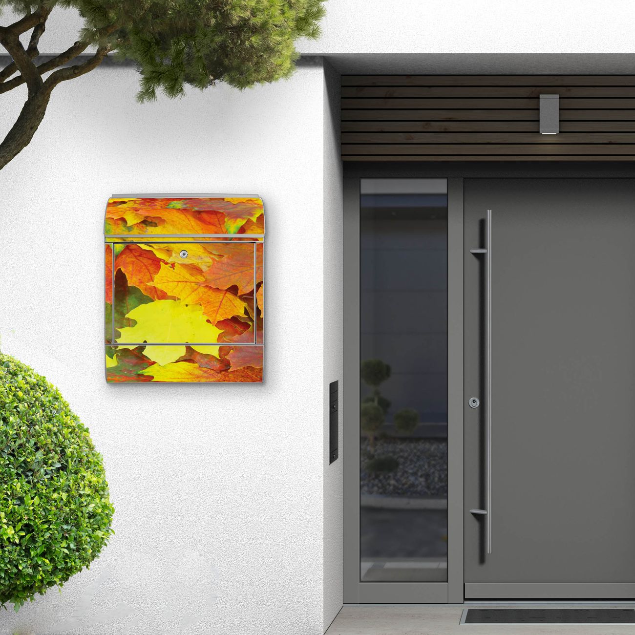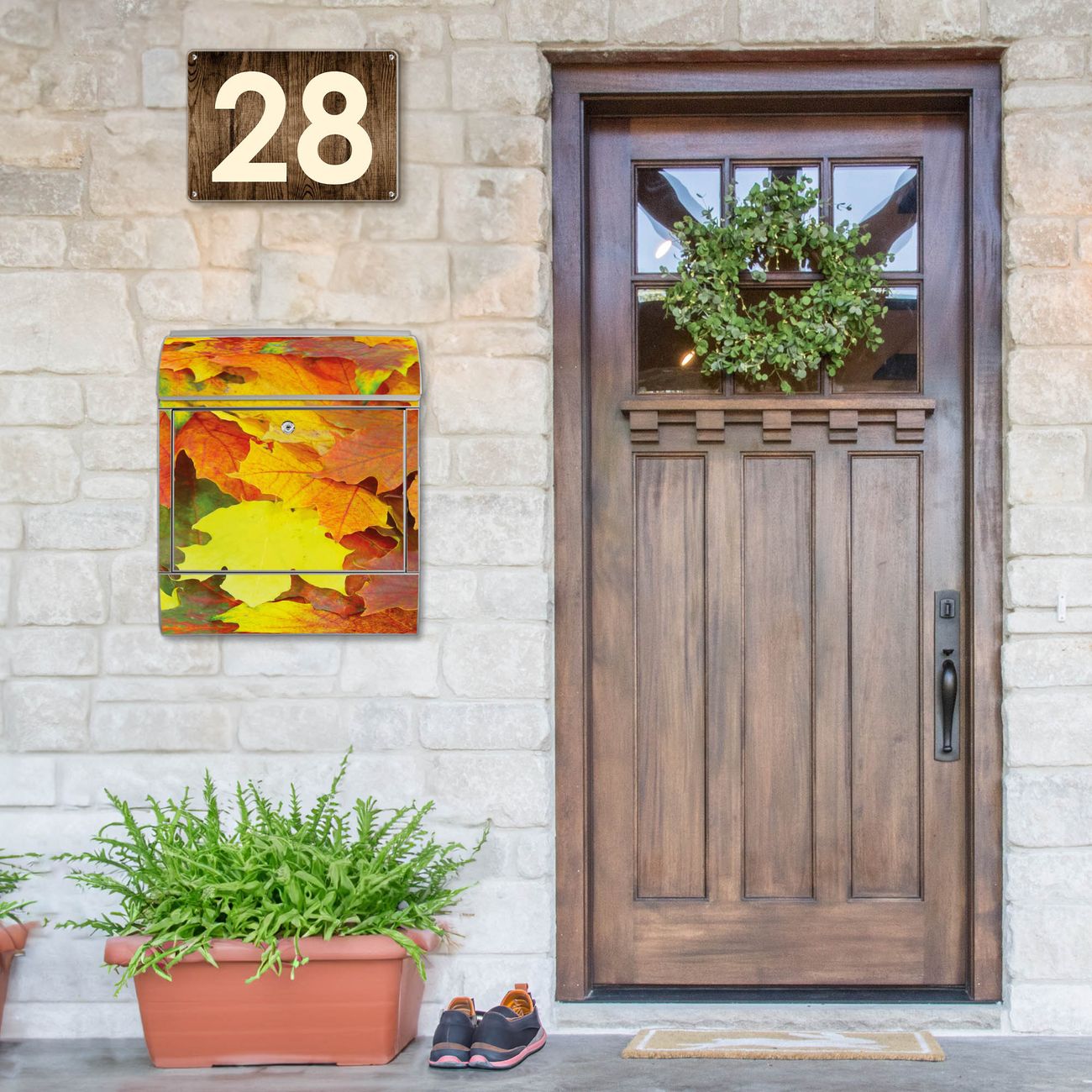 FUNKTION: Der banjado Briefkasten mit Motiv Laub bietet Ihnen mit seinem Fassungsvermögen genügend Platz auch für große A4 Sendungen. Die integrierte Zeitungsrolle eignet sich hervorragend, um unkompliziert die Tageszeitung zu fassen. Sie finden bei banjado auch den passenden Ständer zum Briefkasten. DESIGN: Der Postkasten mit Motiv Laub hat ein sehr ansprechendes und ausgefallenes Design, damit entlocken Sie Ihren Nachbarn und dem Postboten ein Lächeln. Heben Sie Sich von der tristen grauen Masse ab, ohne auf Funktionalität zu verzichten. DETAILS: Der Postkasten besteht aus pulverbeschichtetem Stahl. Er ist 38x47x13cm groß. Das Motiv besteht aus einer wetter- und UV-resistenten Folie, die mit einem Schutzlaminat überzogen ist, sodass der Briefkasten zusätzlich vor Kratzern geschützt ist. Der Briefkasten wird mit Montagematerial, zusätzlich zwei Schlüssel sowie einer Bohrschablone geliefert. NUTZEN: Sie können diesen Briefkasten sowohl als Wandbriefkasten montieren oder einen passenden Ständer kaufen und als Standbriefkasten einbetonieren. Die Größe bietet genügend Platz für Sendungen aller Art, der Einwurf fasst auch größere A4 Sendungen. BANJADO: Ihr Briefkasten wird in Sachsen in einer kleinen Manufaktur von Hand veredelt. Die Motivfolie ist lösungsmittelfrei und schutzlaminiert für einen langen Halt. Wir legen großen Wert auf die Verbindung von Funktionalität und Design. Sie erhalten Handarbeit aus Sachsen.