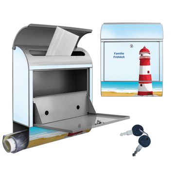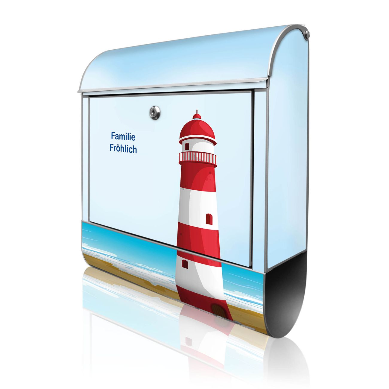 Großer Stahl Briefkasten Motiv Leuchtturm Illustration