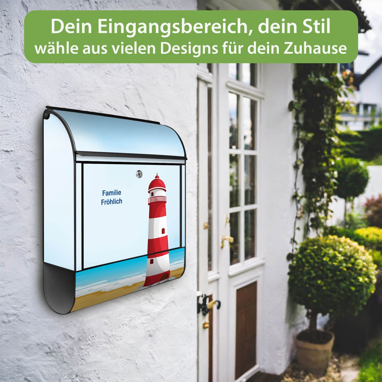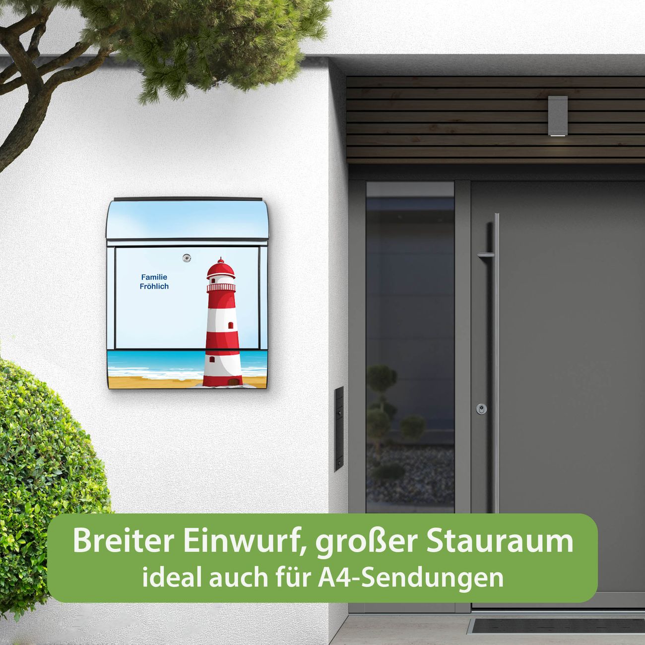 Großer Stahl Briefkasten Motiv Leuchtturm Illustration